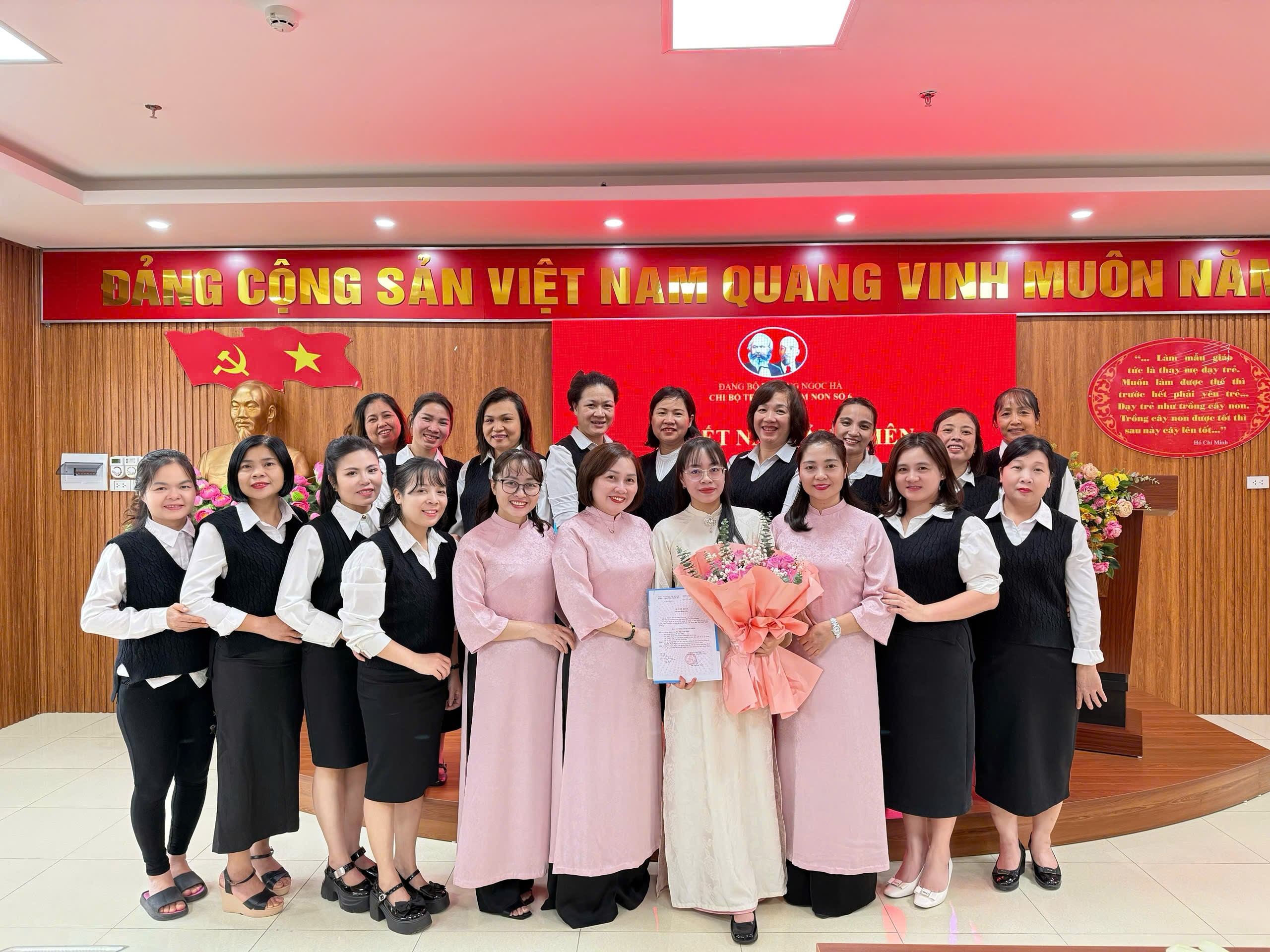 Cấp ủy cùng các Đảng viên Chi bộ Trường Mầm non Số 6 chúc mừng đồng chí Bùi Thị Tuyết Ngân