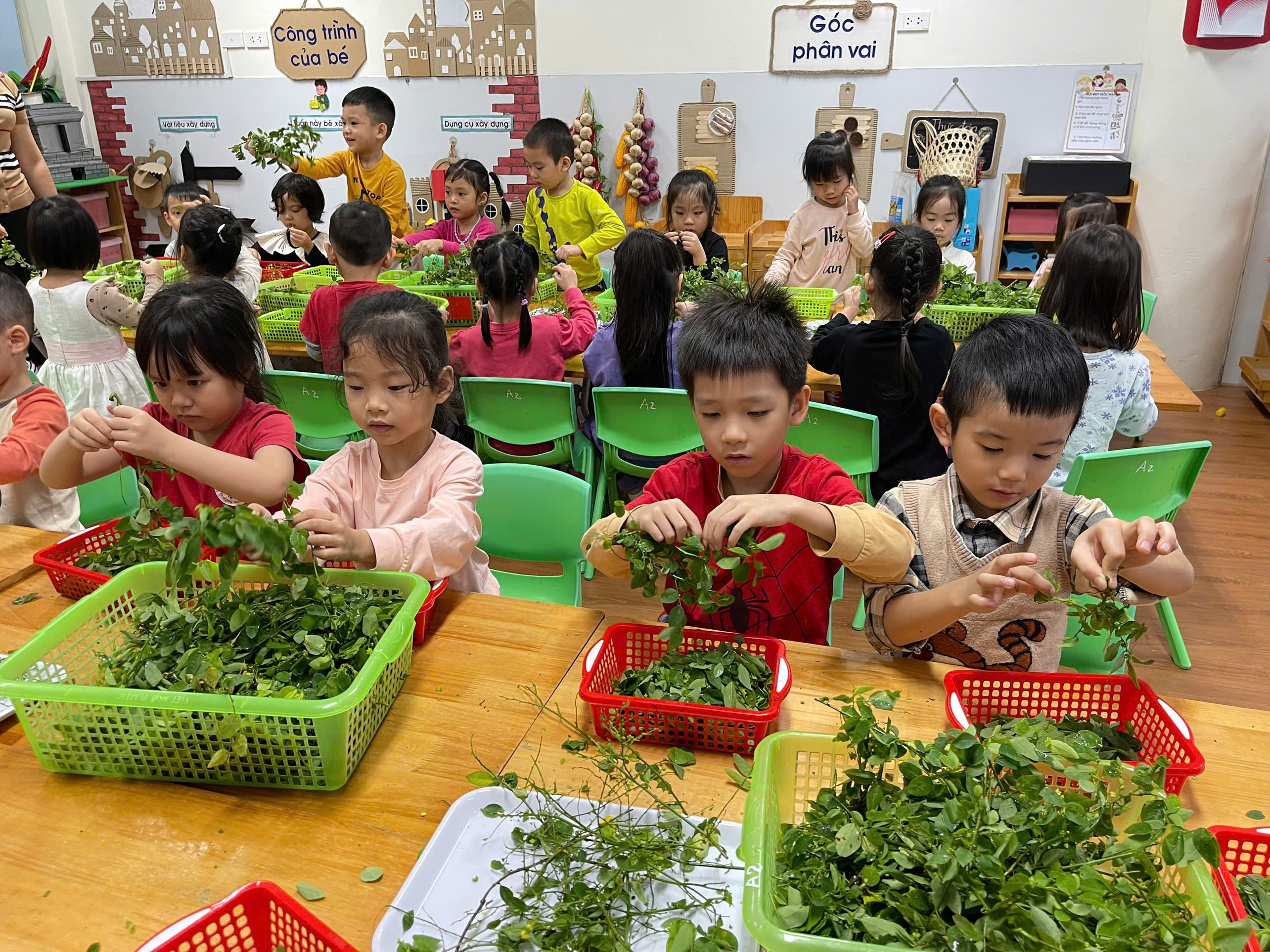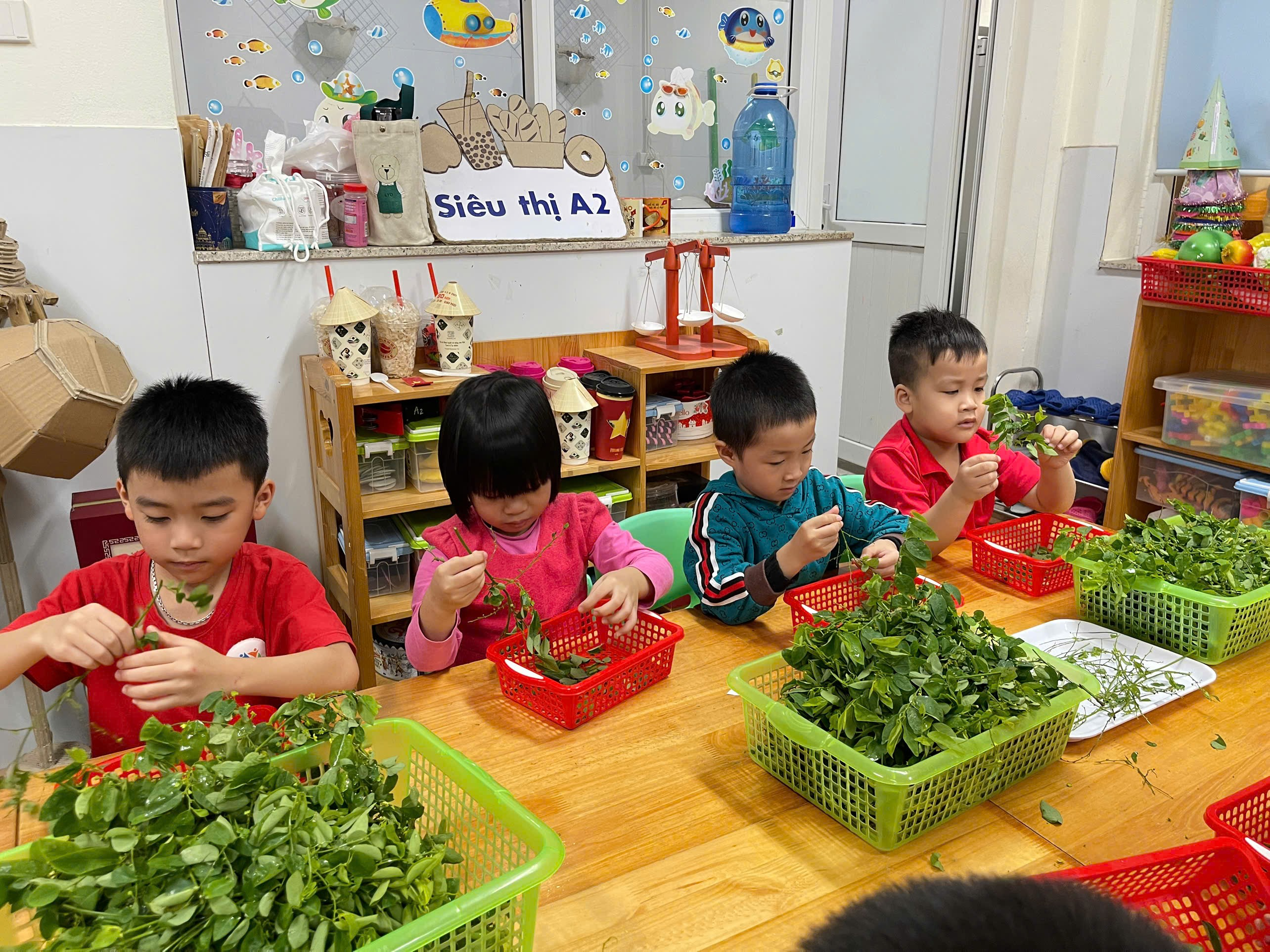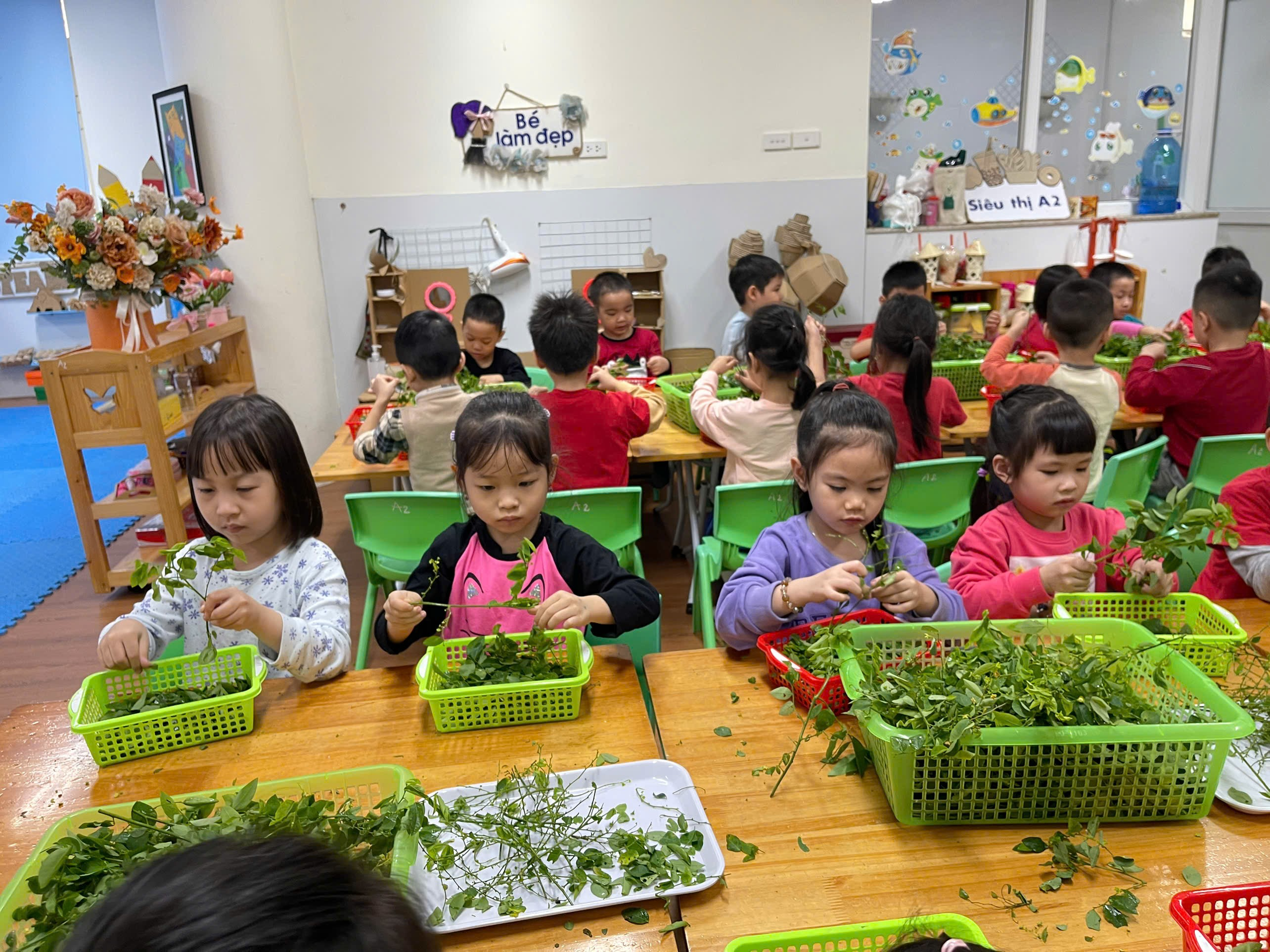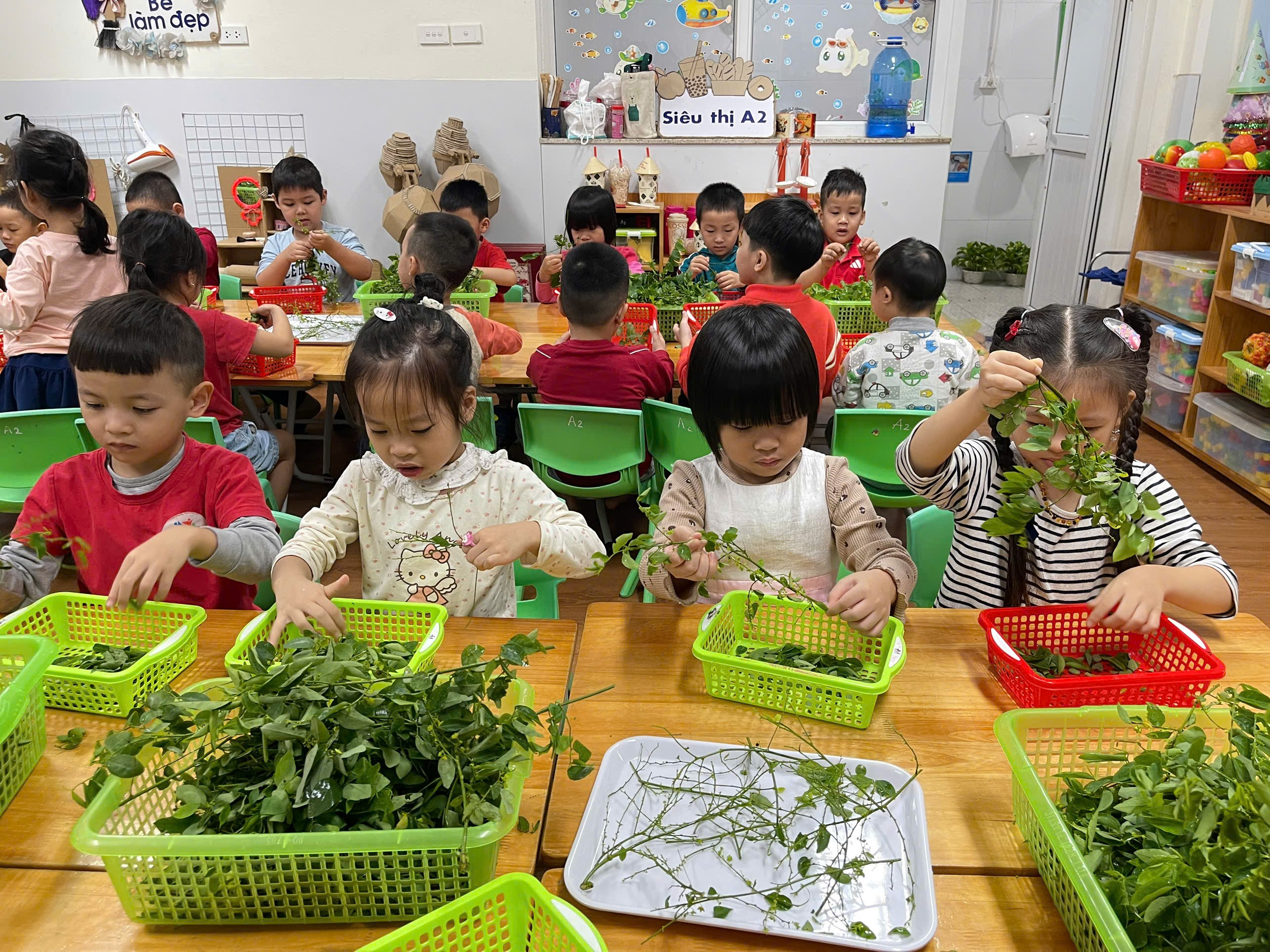 “Bé tập làm nội trợ” là 1 hoạt động rất vui và bổ ích trong trường mầm non. Đôi bàn tay nhỏ xinh ngoài việc cầm bút, vẽ tranh, xúc cơm… , hôm nay các bạn nhỏ lớp A2 còn sử dụng đôi bàn tay của mình tuốt rau ngót. Tuổi nhỏ làm việc nhỏ, các bạn ấy biết thêm về tên gọi, đặc điểm của rau ngót… Để nấu được loại rau này, cần phải tuốt rau thật sạch khỏi cuống rau rồi rửa sạch. Với người lớn thì không có gì là khó khăn nhưng với các bạn nhỏ thì đây quả là một trải nghiệm thú vị😊 .Qua bài học này, các con đã biết cách cầm, tuốt những chiếc lá sau đó bỏ gọn gàng vào trong rổ và các món ăn được nấu từ rau ngót. Vì vậy, giờ đây bố mẹ có thể nhờ các con nhặt rau cùng chuẩn bị bữa cơm gia đình.