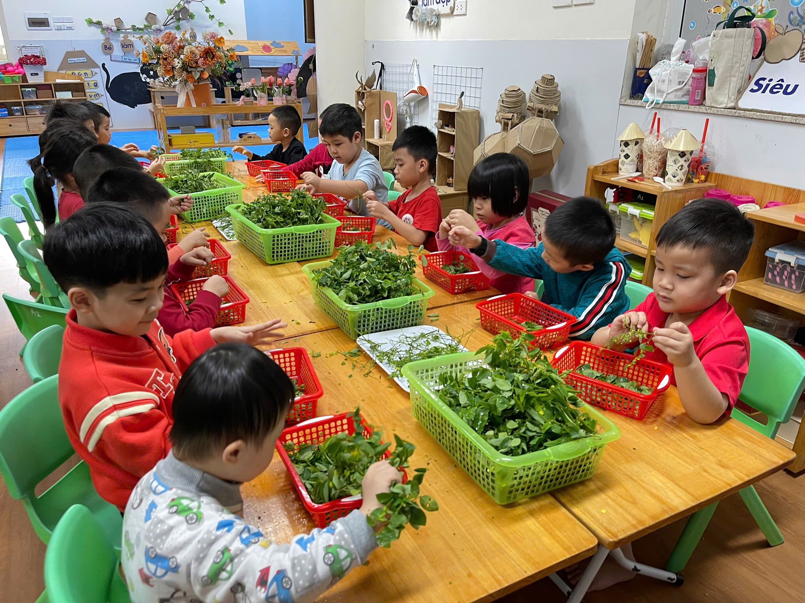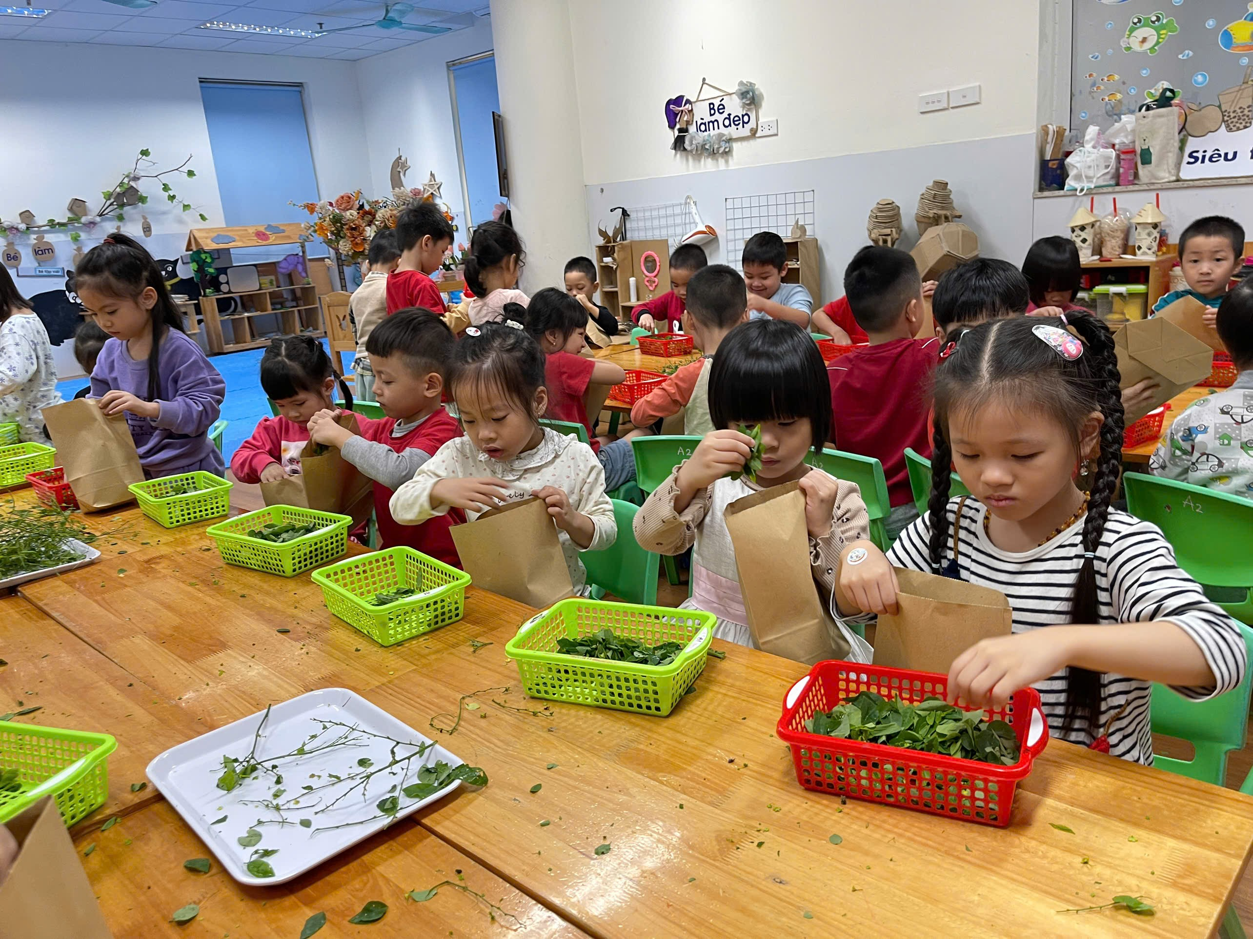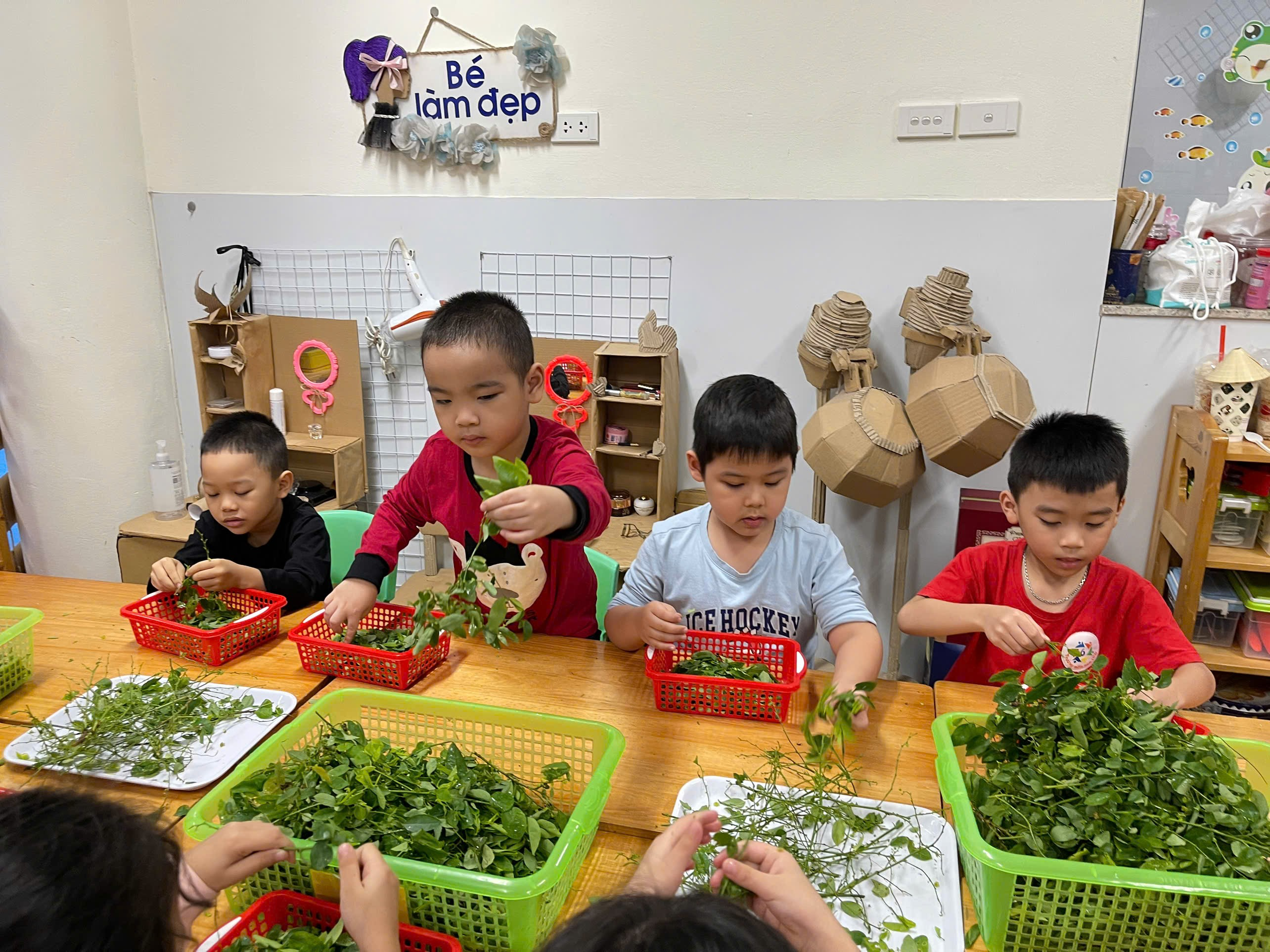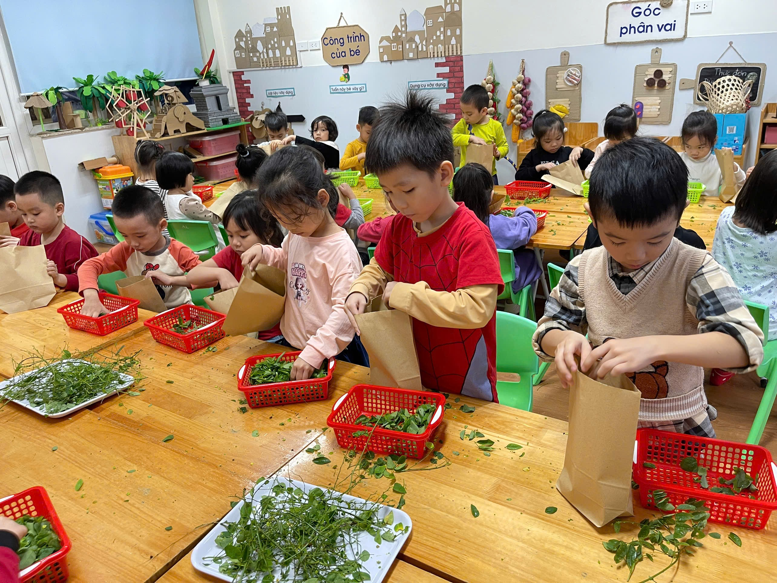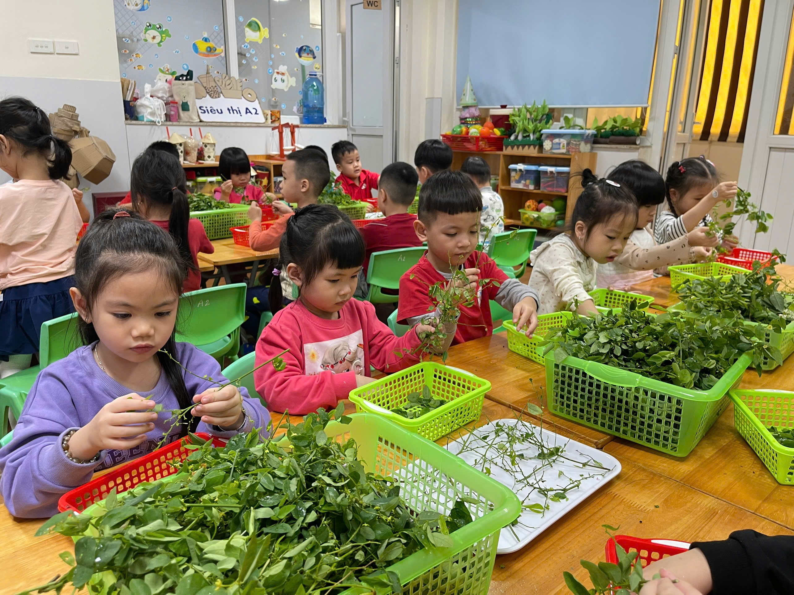“Bé tập làm nội trợ” là 1 hoạt động rất vui và bổ ích trong trường mầm non. Đôi bàn tay nhỏ xinh ngoài việc cầm bút, vẽ tranh, xúc cơm… , hôm nay các bạn nhỏ lớp A2 còn sử dụng đôi bàn tay của mình tuốt rau ngót. Tuổi nhỏ làm việc nhỏ, các bạn ấy biết thêm về tên gọi, đặc điểm của rau ngót… Để nấu được loại rau này, cần phải tuốt rau thật sạch khỏi cuống rau rồi rửa sạch. Với người lớn thì không có gì là khó khăn nhưng với các bạn nhỏ thì đây quả là một trải nghiệm thú vị😊 .Qua bài học này, các con đã biết cách cầm, tuốt những chiếc lá sau đó bỏ gọn gàng vào trong rổ và các món ăn được nấu từ rau ngót. Vì vậy, giờ đây bố mẹ có thể nhờ các con nhặt rau cùng chuẩn bị bữa cơm gia đình.