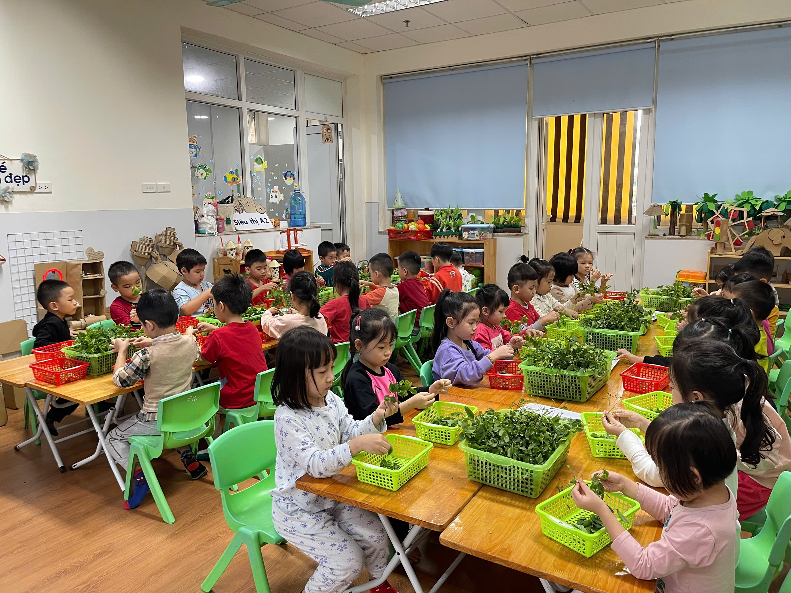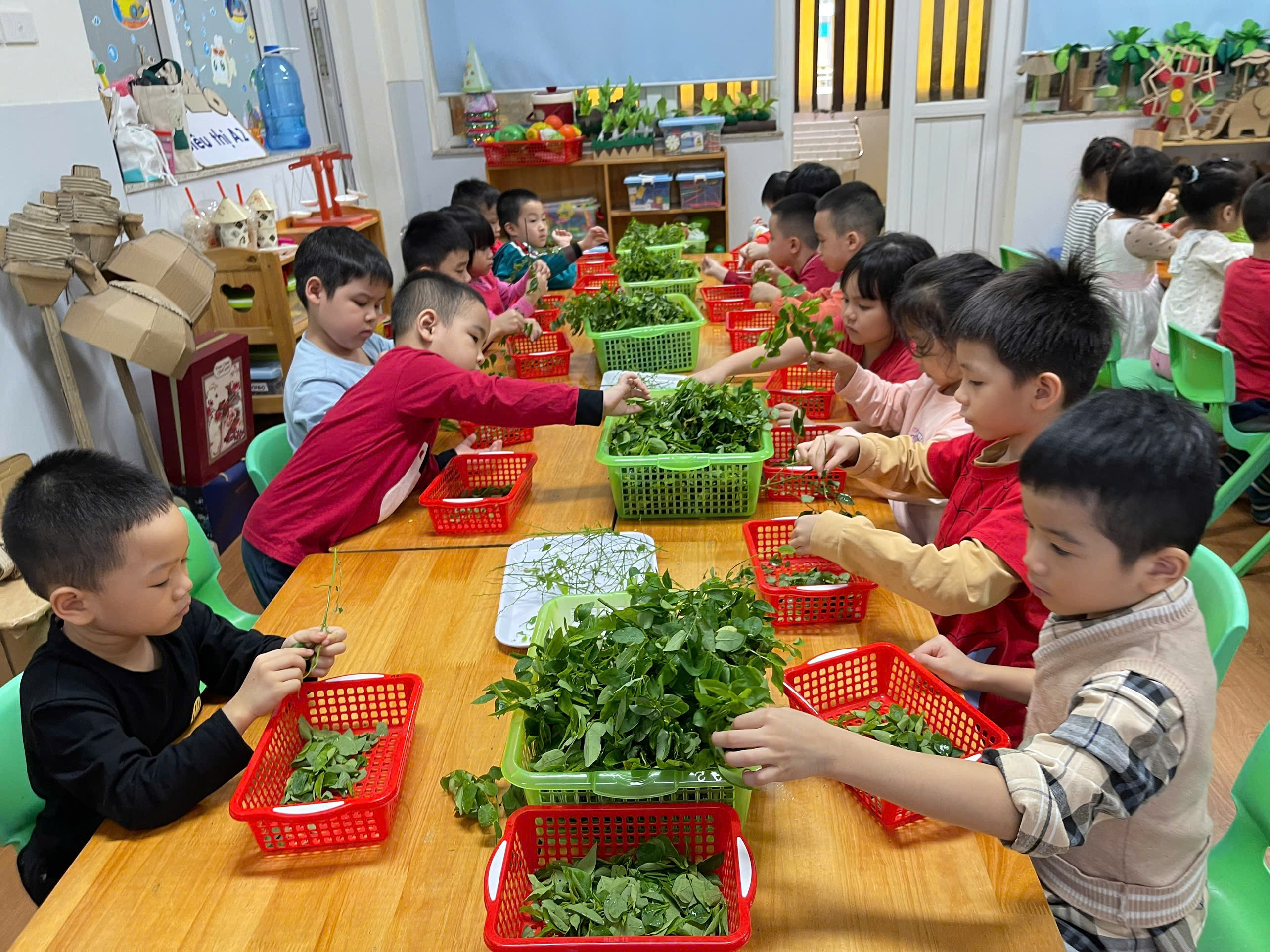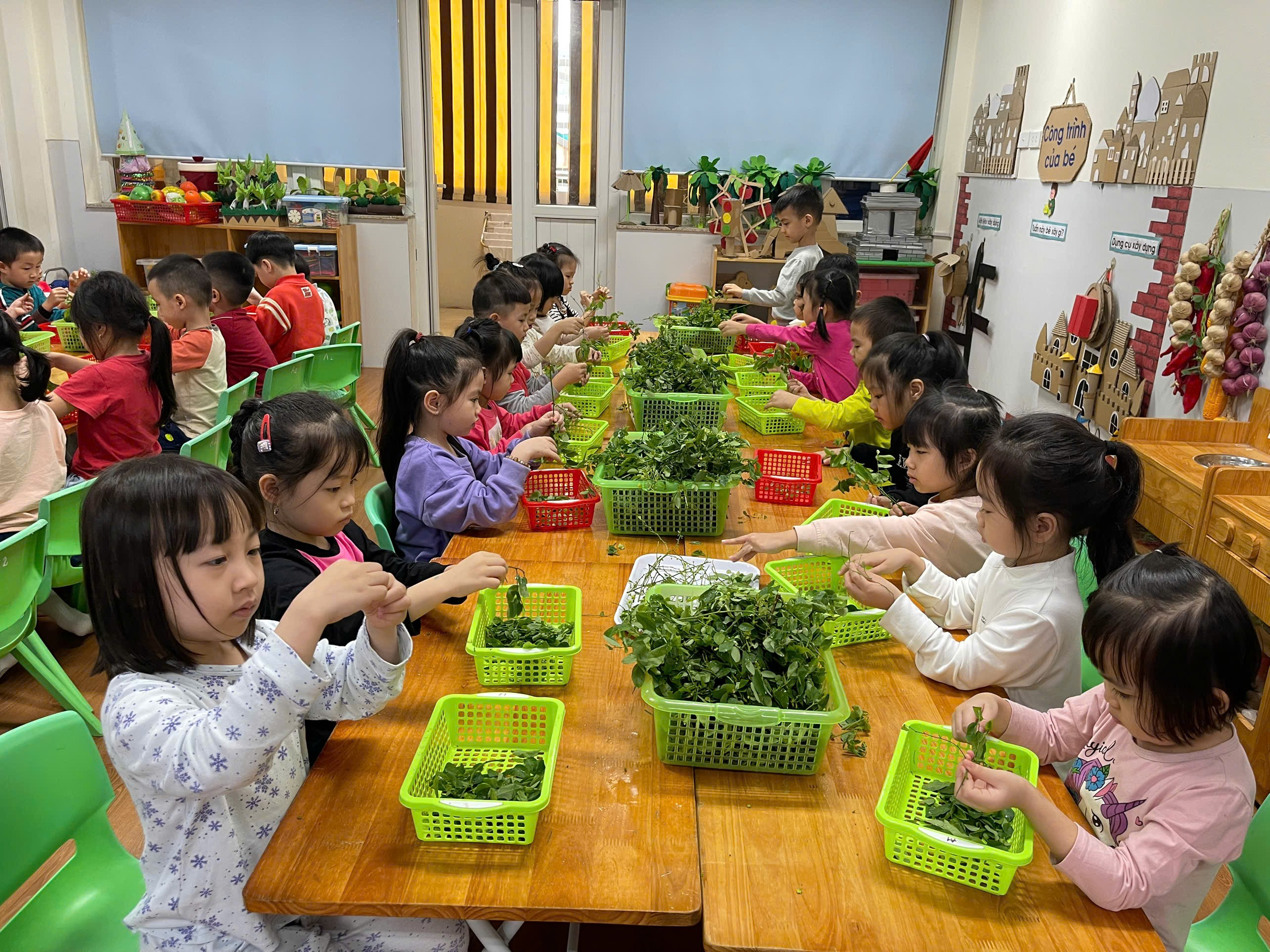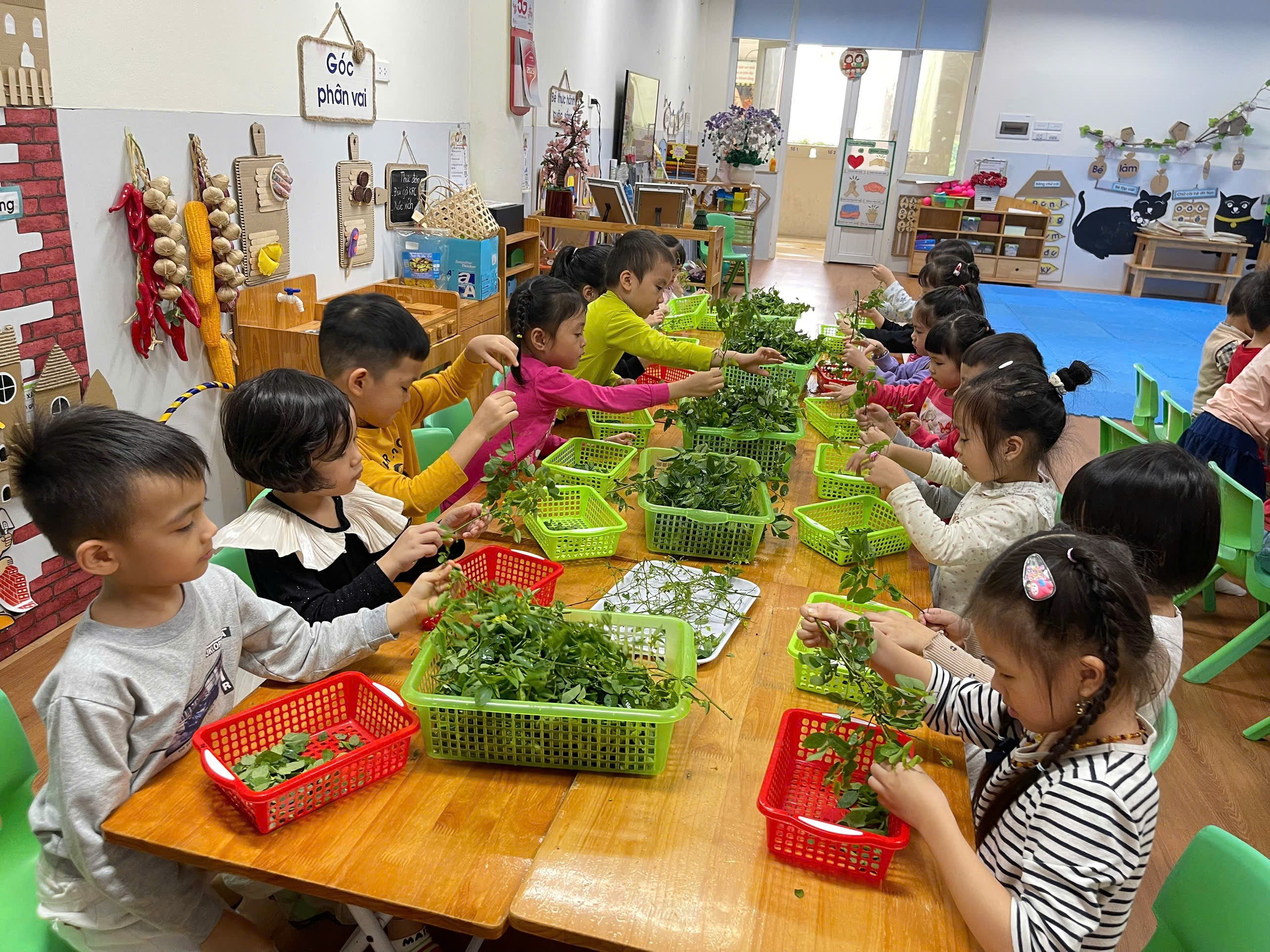 “Bé tập làm nội trợ” là 1 hoạt động rất vui và bổ ích trong trường mầm non. Đôi bàn tay nhỏ xinh ngoài việc cầm bút, vẽ tranh, xúc cơm… , hôm nay các bạn nhỏ lớp A2 còn sử dụng đôi bàn tay của mình tuốt rau ngót. Tuổi nhỏ làm việc nhỏ, các bạn ấy biết thêm về tên gọi, đặc điểm của rau ngót… Để nấu được loại rau này, cần phải tuốt rau thật sạch khỏi cuống rau rồi rửa sạch. Với người lớn thì không có gì là khó khăn nhưng với các bạn nhỏ thì đây quả là một trải nghiệm thú vị😊 .Qua bài học này, các con đã biết cách cầm, tuốt những chiếc lá sau đó bỏ gọn gàng vào trong rổ và các món ăn được nấu từ rau ngót. Vì vậy, giờ đây bố mẹ có thể nhờ các con nhặt rau cùng chuẩn bị bữa cơm gia đình.