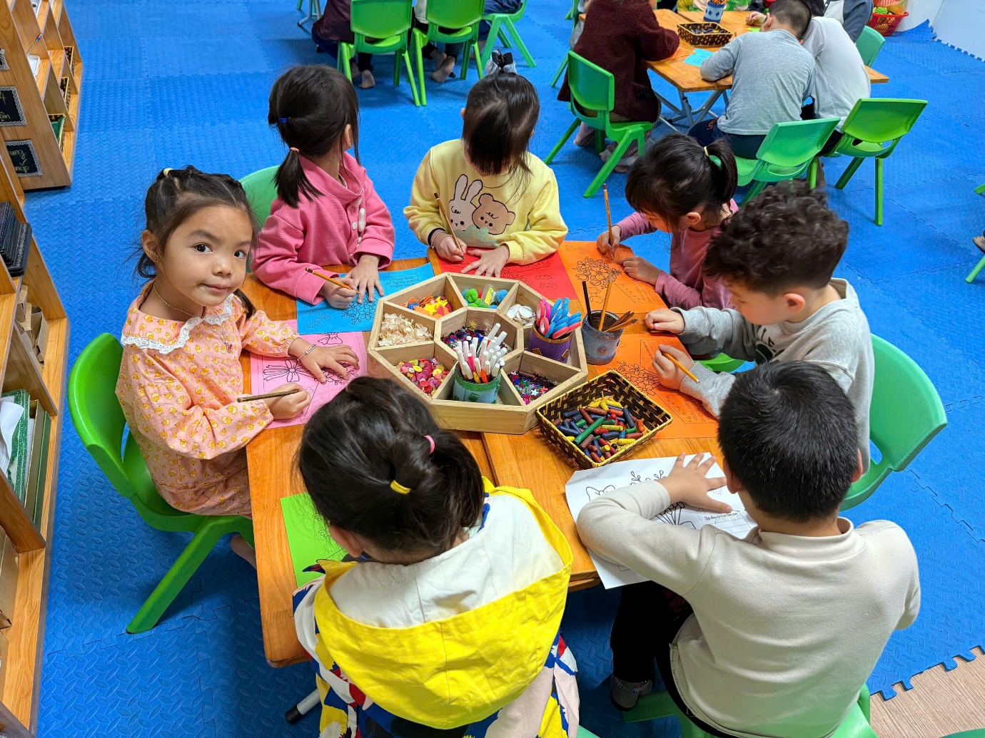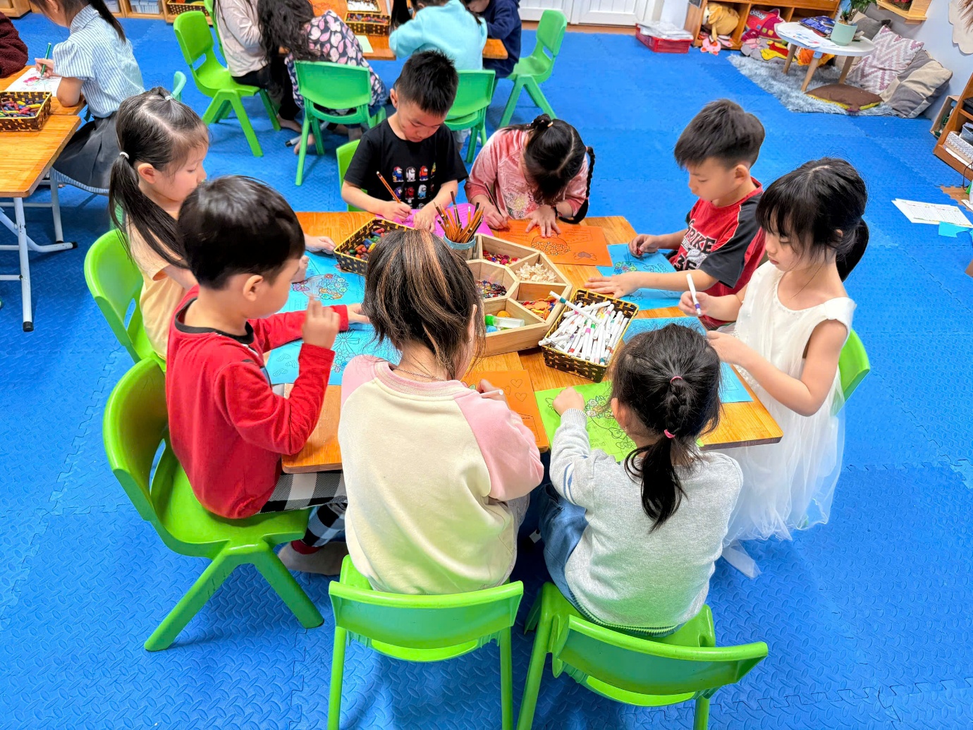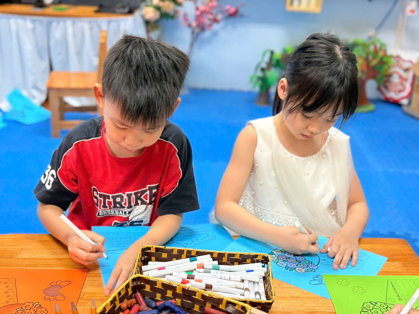 Cô giáo hướng dẫn các con làm thiệp.