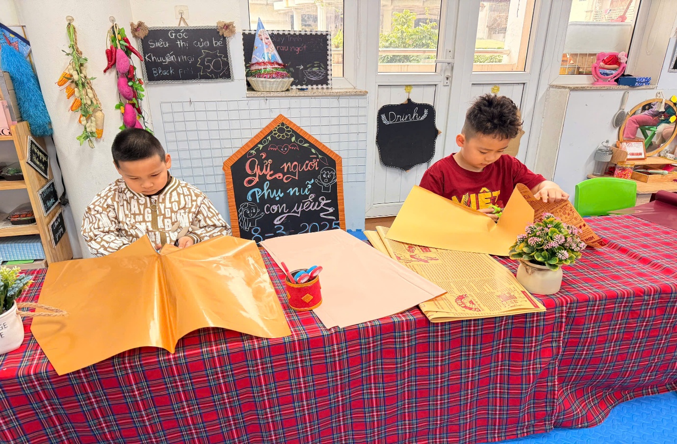 Cùng nhau nhặt lá, cắt giấy.. giúp cô chuẩn bị nhé!