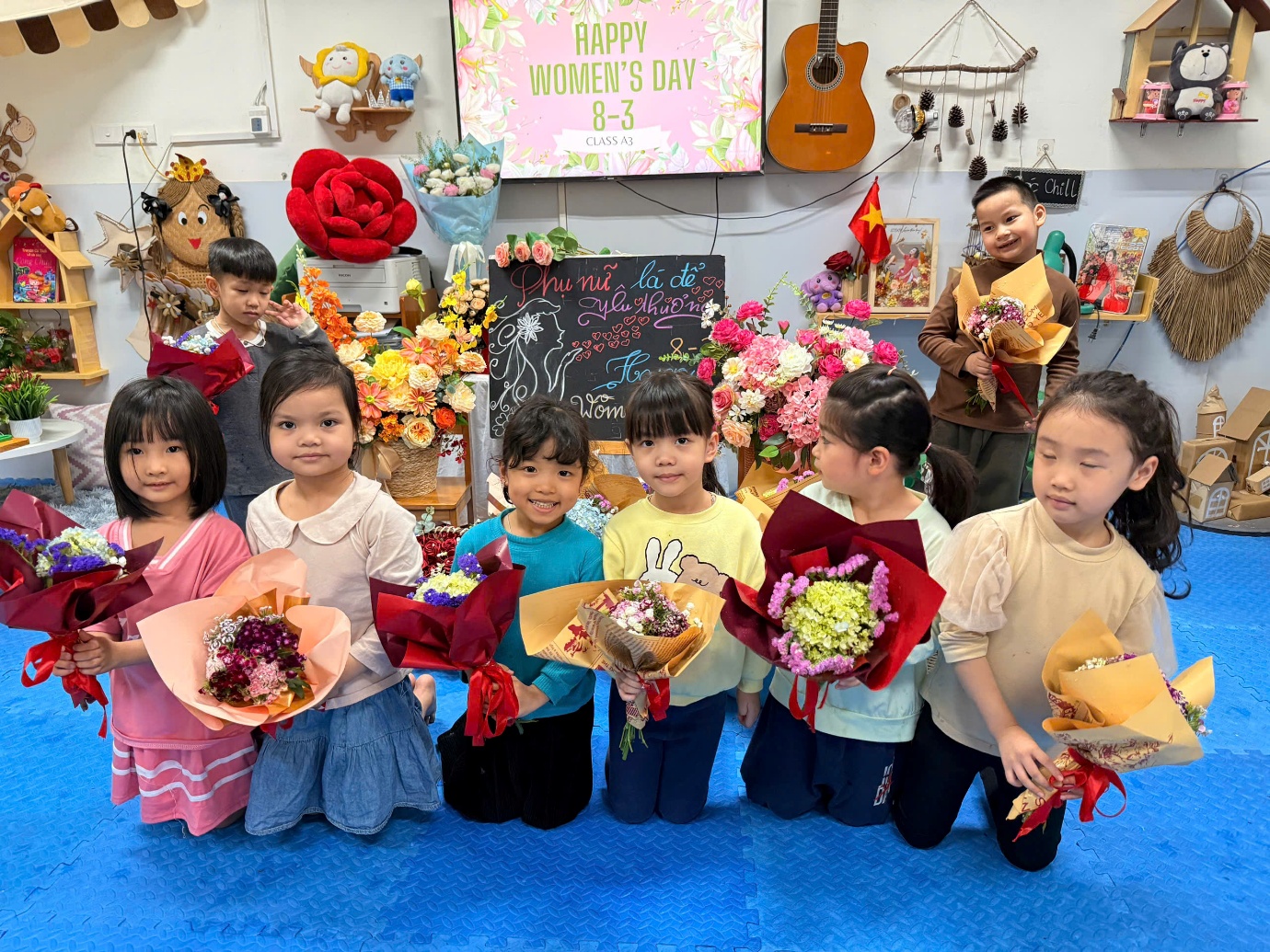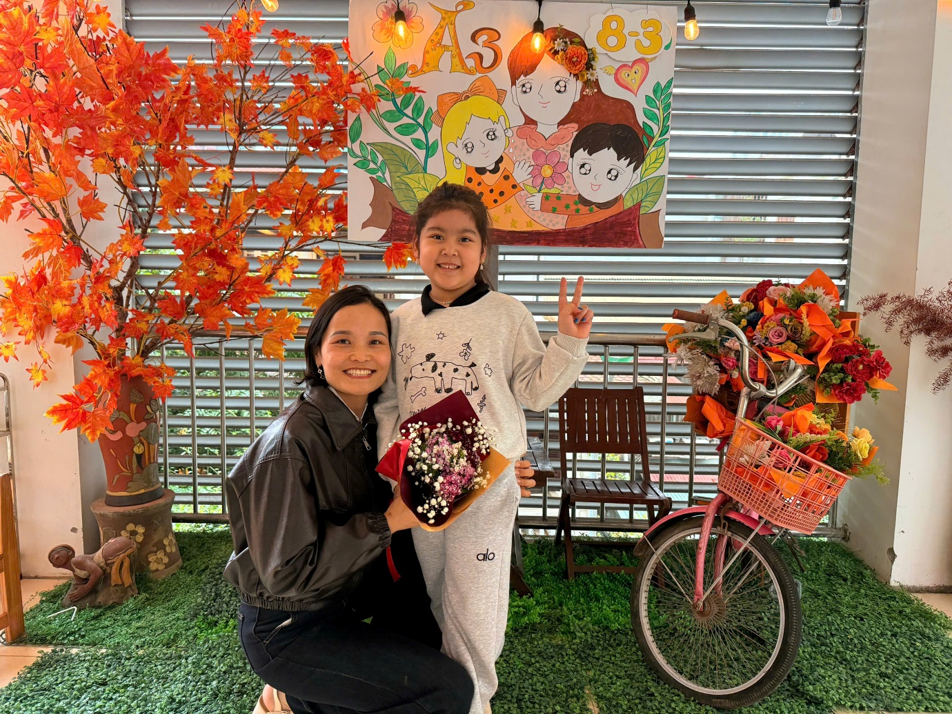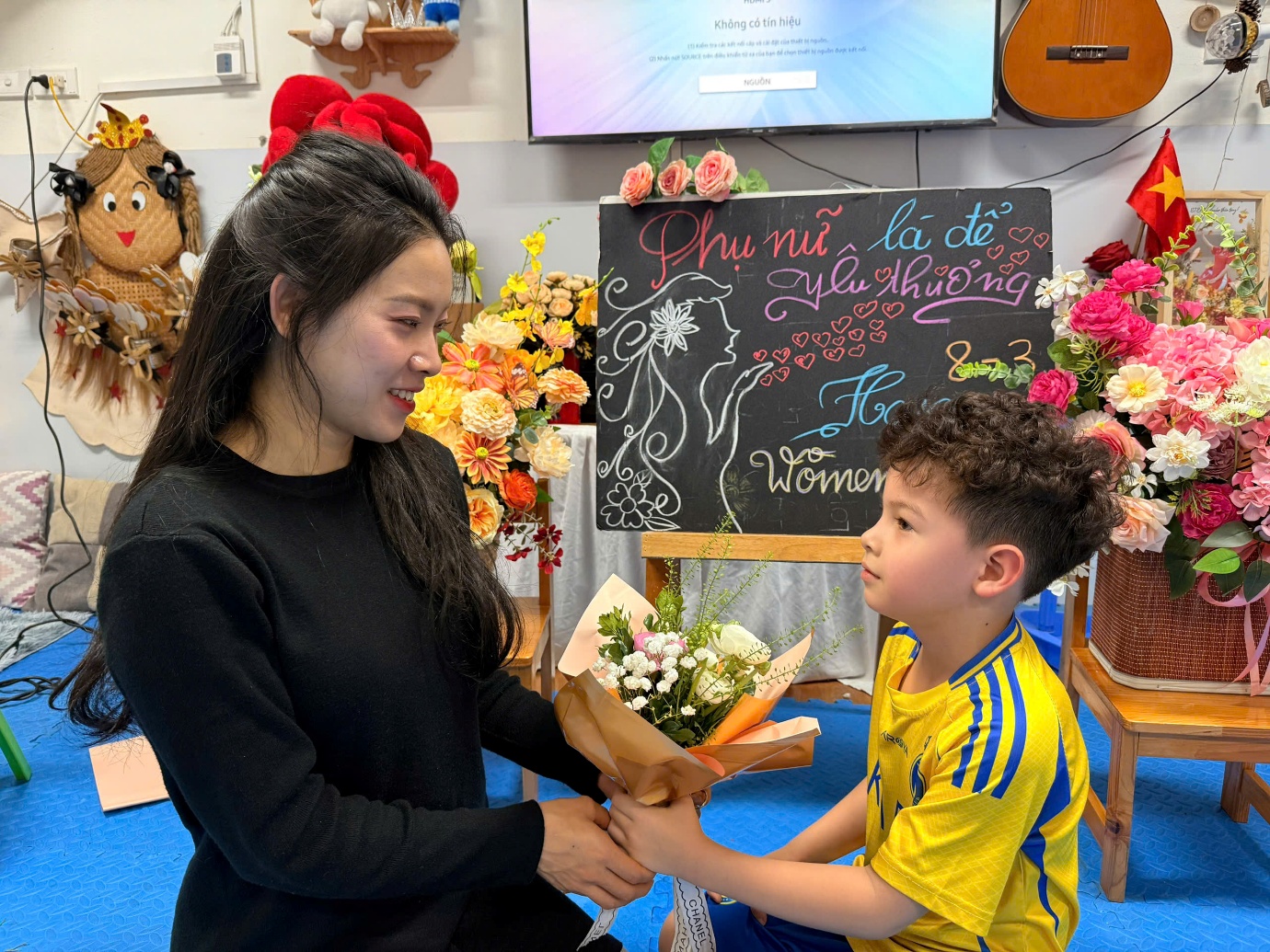 Sau khi hoàn thành những bó hoa tươi, các con đã trao tận tay món quà nhỏ của mình cho mẹ. Những cái ôm, nụ cười và ánh mắt hạnh phúc đã tạo nên những khoảnh khắc vô cùng ấm áp và ý nghĩa.Con gửi ngàn yêu thương vào những bó hoa tươi thắm nhé!