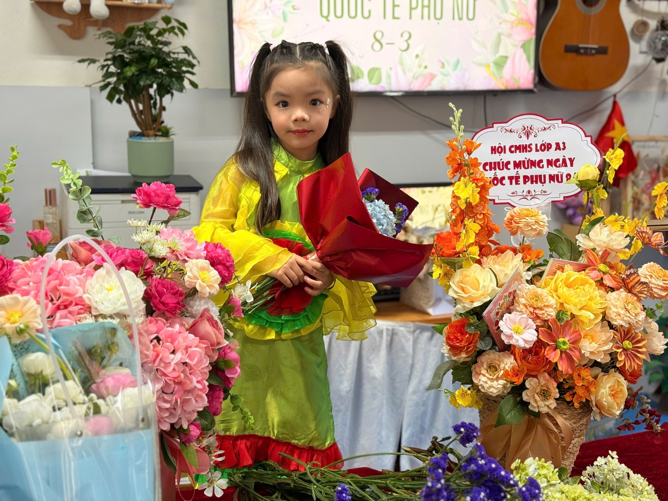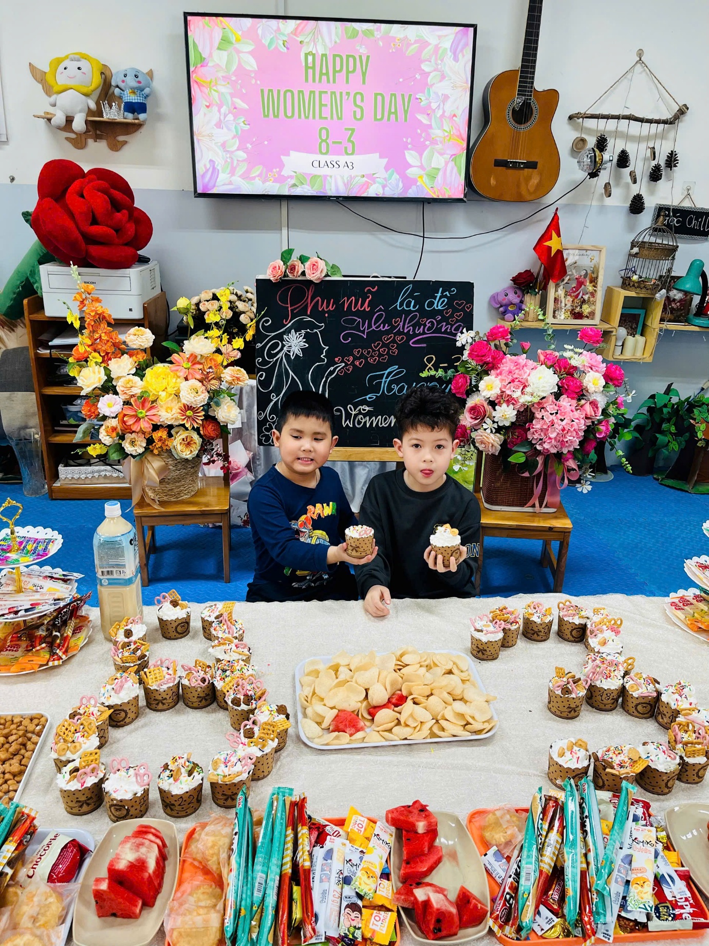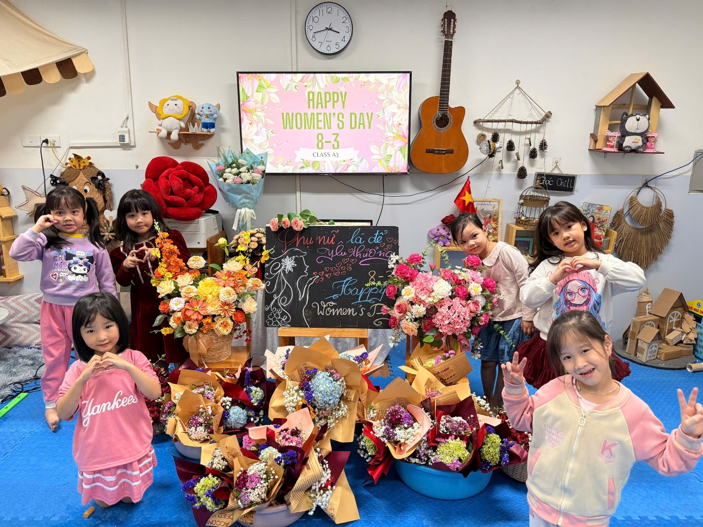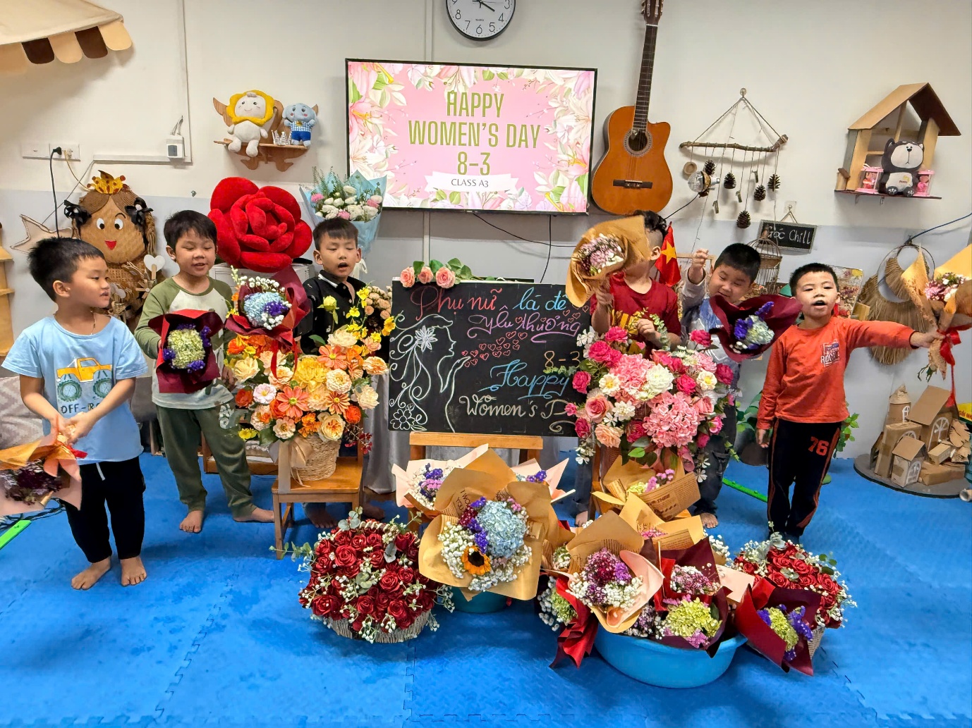 Sau khi hoàn thành những bó hoa tươi, các con đã trao tận tay món quà nhỏ của mình cho mẹ. Những cái ôm, nụ cười và ánh mắt hạnh phúc đã tạo nên những khoảnh khắc vô cùng ấm áp và ý nghĩa.Con gửi ngàn yêu thương vào những bó hoa tươi thắm nhé!