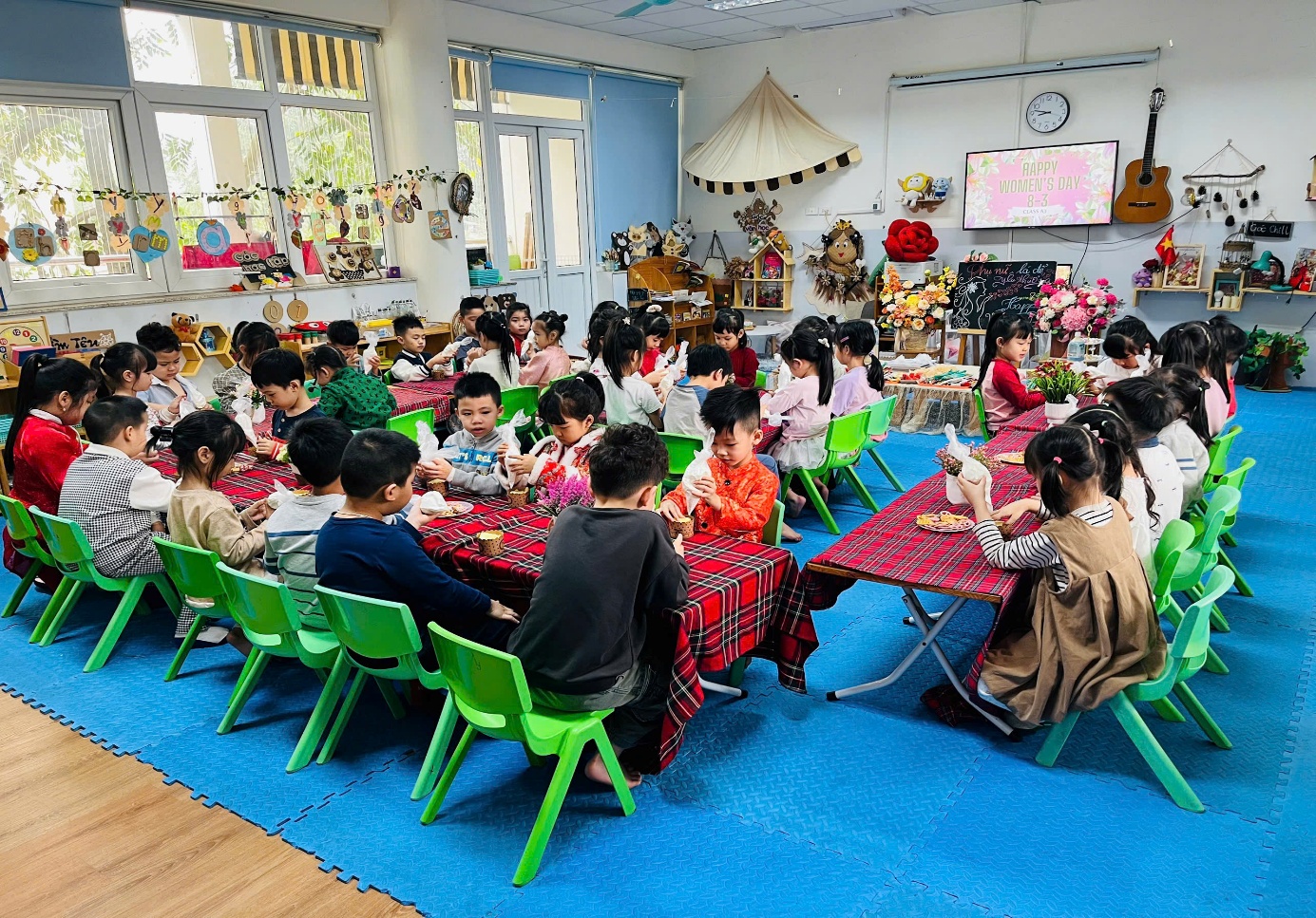 Hoạt động không chỉ giúp các con rèn luyện sự khéo léo của đôi bàn tay (vận động tinh) mà còn bồi đắp tình yêu lao động và giúp các bé hiểu hơn về giá trị của sự kiên nhẫn. Những nụ cười rạng rỡ khi cầm trên tay thành phẩm "độc bản" chính là món quà ý nghĩa nhất của buổi học hôm nay. Sau đó, các con đã dùng những chiếc bánh xếp chữ, cùng nhau liên hoan 8/3 thật vui đấy! Lại thêm một kỷ niệm khó quên của những năm tháng bên bạn bè, cô giáo dưới mái trường Mầm Non Số 6 thân yêu!!!