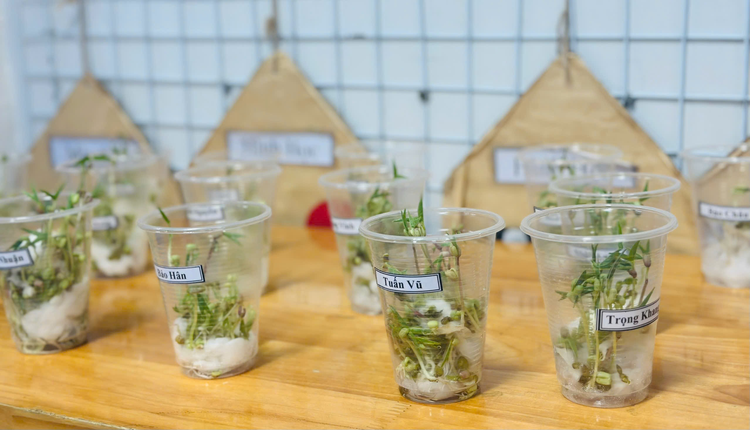Các cô hướng dẫn chúng tớ gieo những hạt mầm xanh.