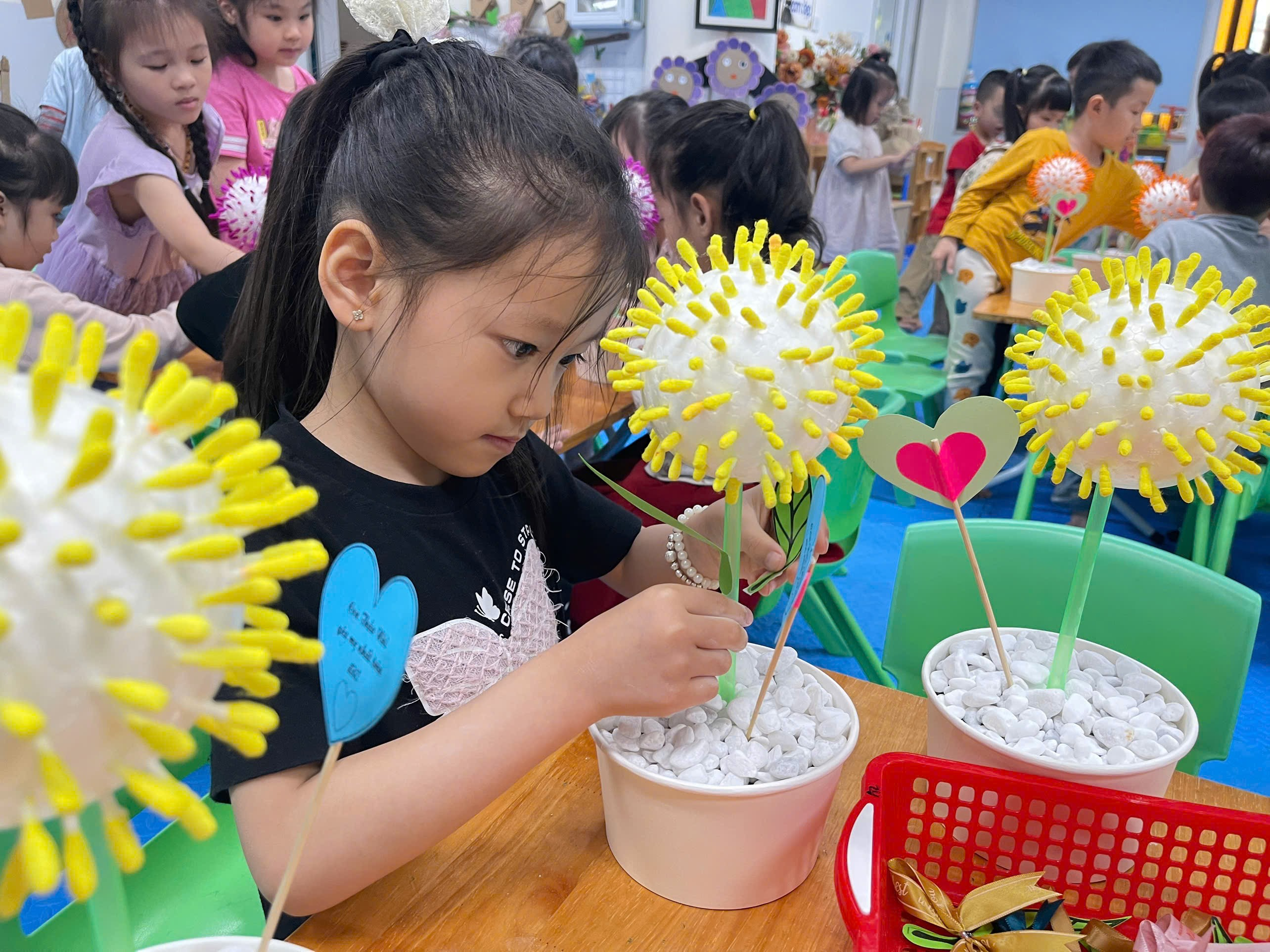 Qua dự án này, các con không chỉ rèn sự khéo léo, kiên nhẫn mà còn học cách gửi gắm yêu thương đến những người phụ nữ thân yêu nhất của mình.