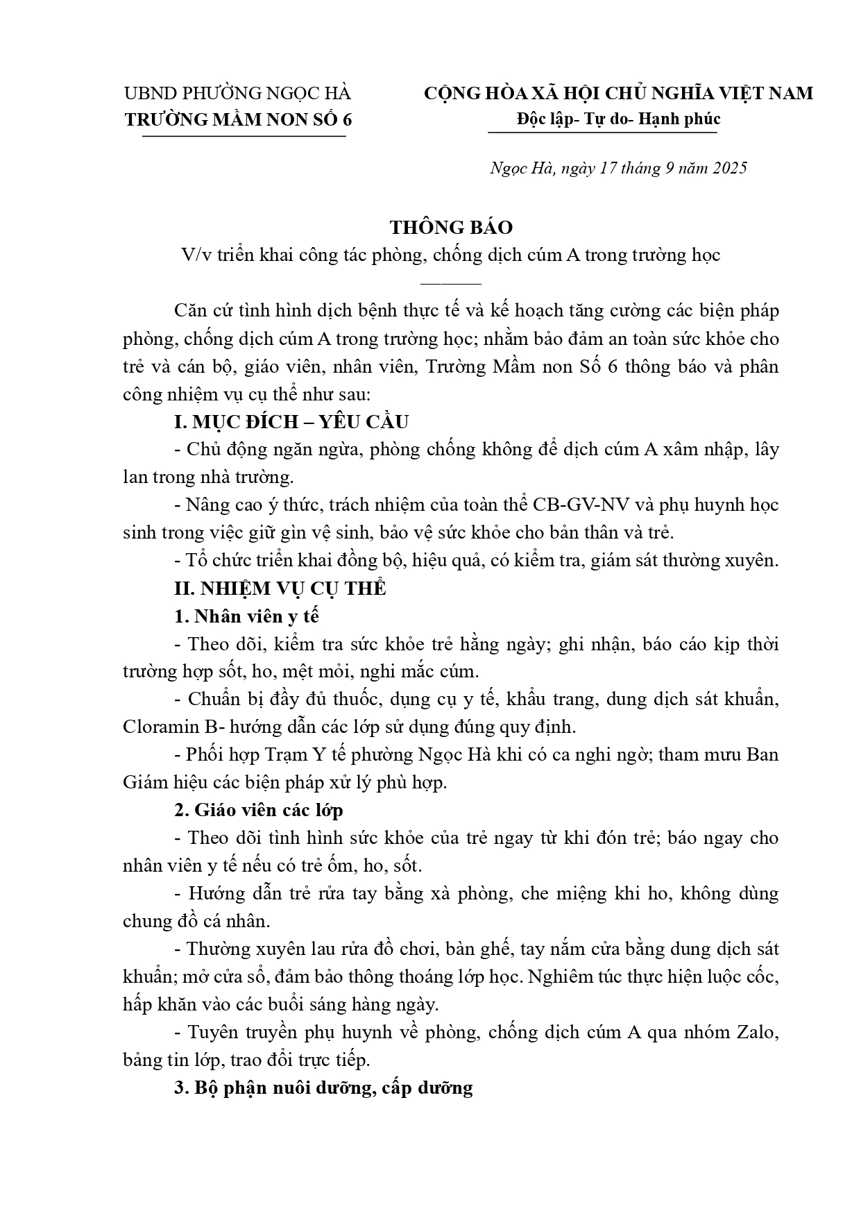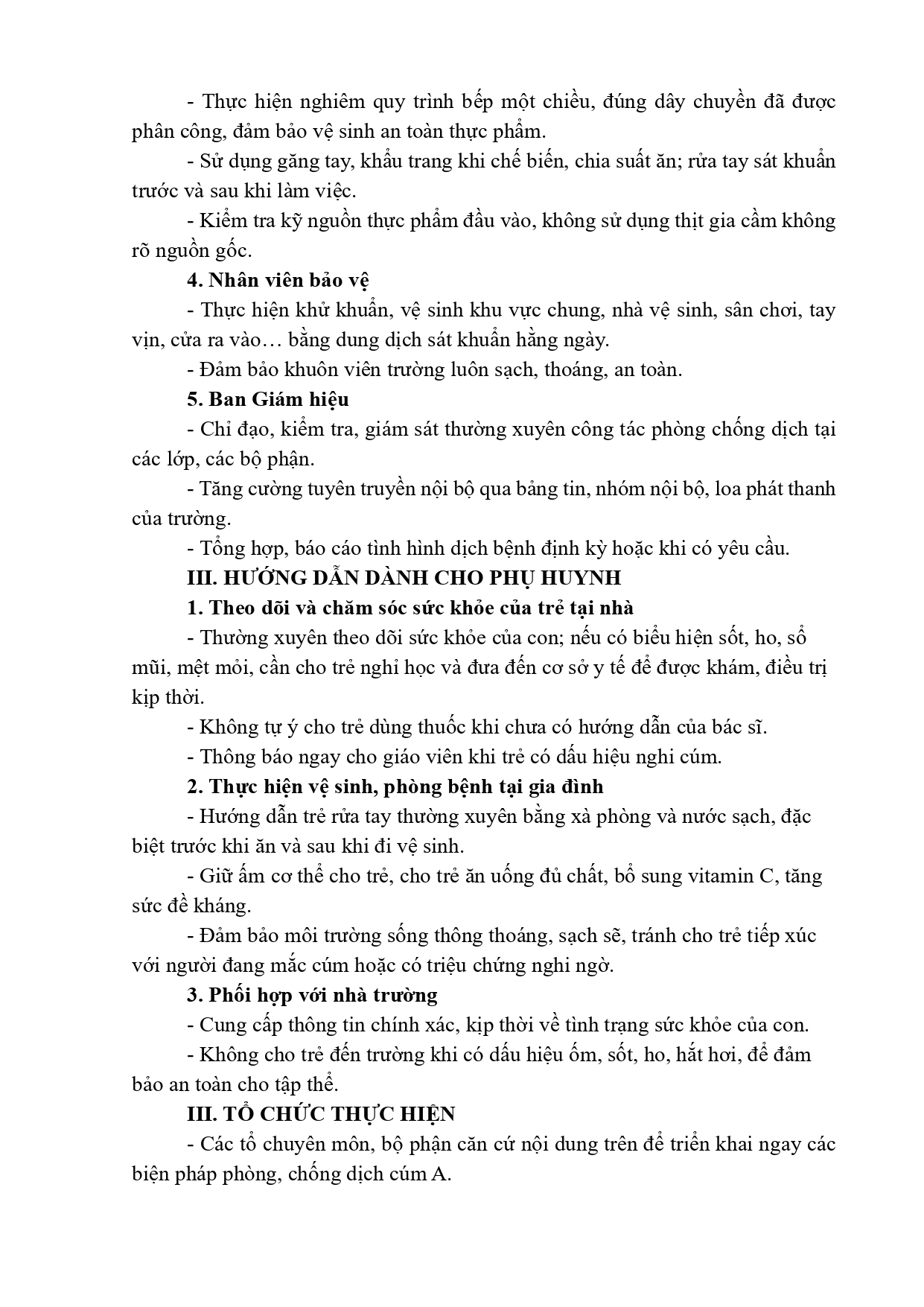 Thông báo về việc phòng, chống dịch cúm A trong trường học