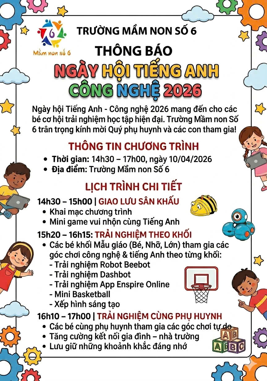 Trường Mầm non Số 6 thông báo Ngày hội Tiếng anh Công nghệ 2026
