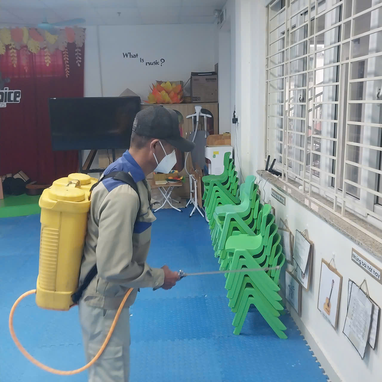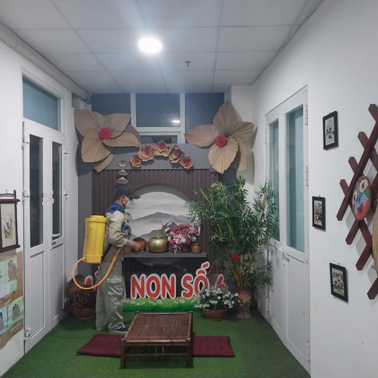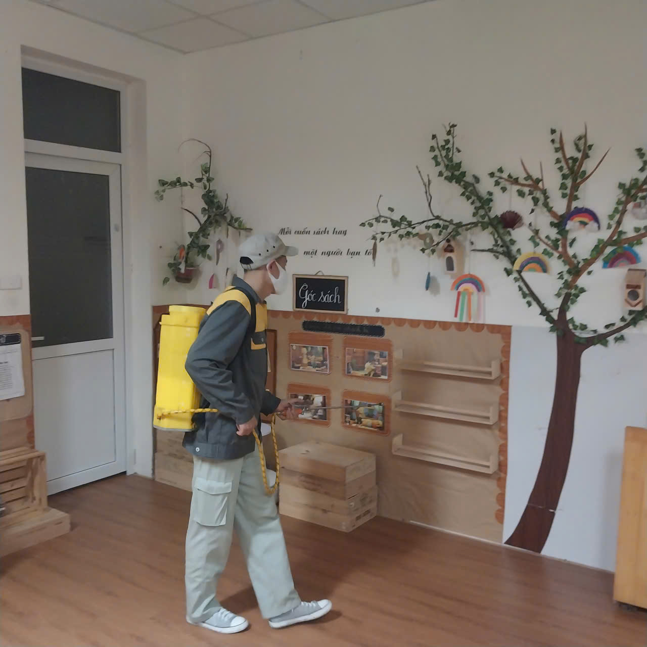 Sau khi hoàn thành phun thuốc, nhà trường tiếp tục chỉ đạo các lớp và bộ phận tiến hành vệ sinh lại môi trường, đảm bảo điều kiện an toàn tuyệt đối trước khi đón trẻ quay trở lại trường.