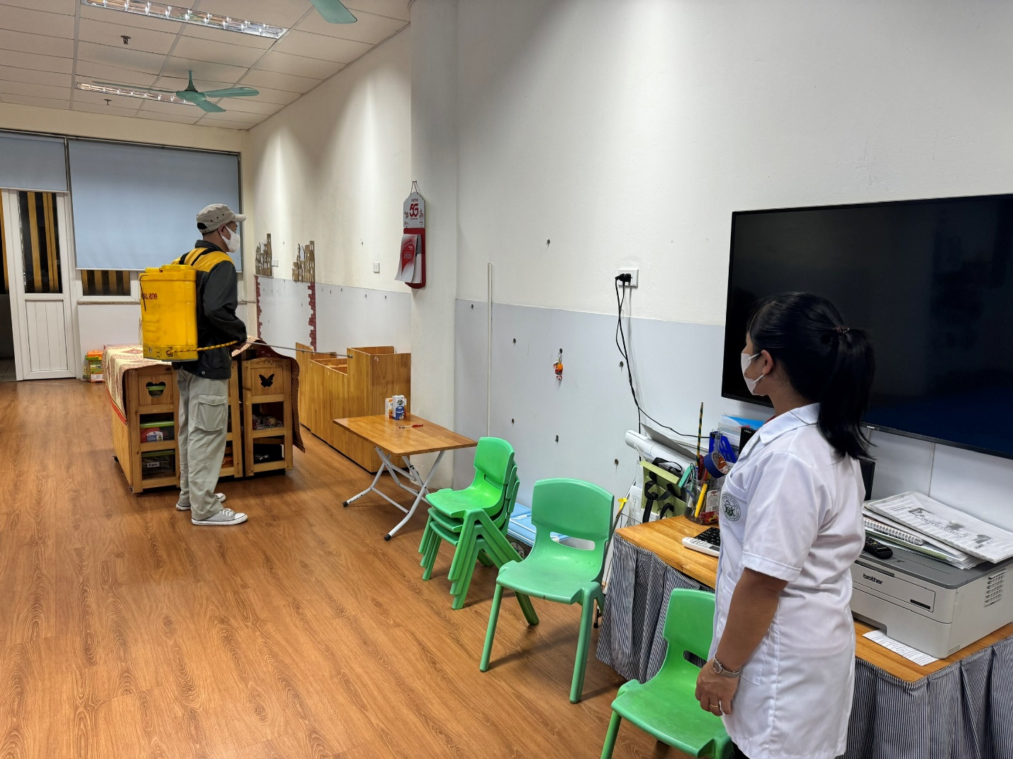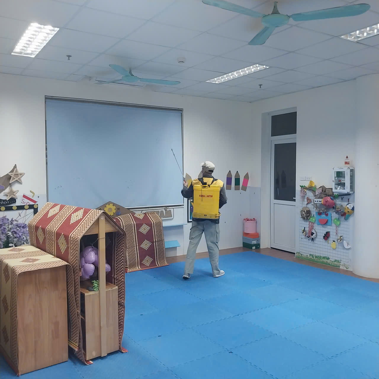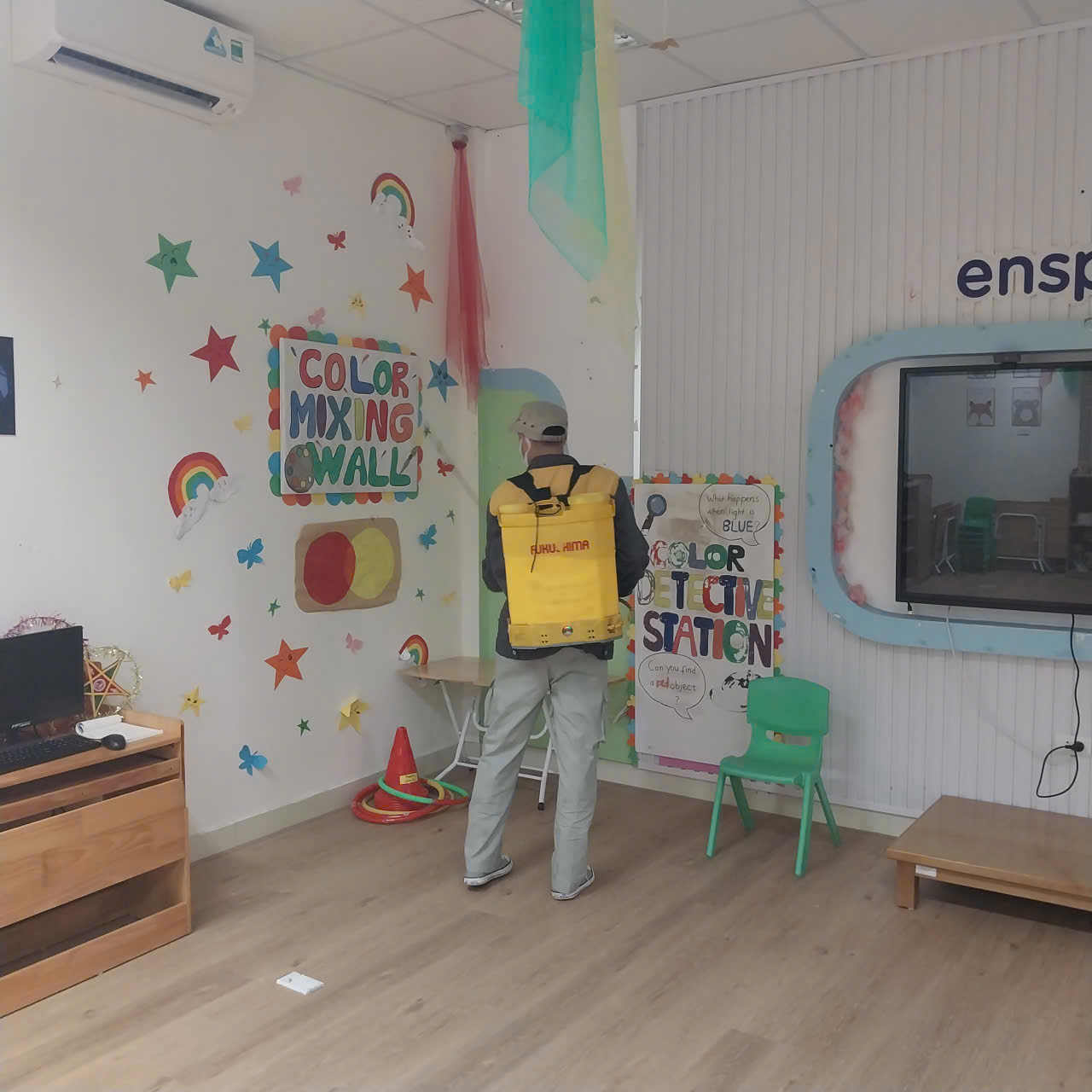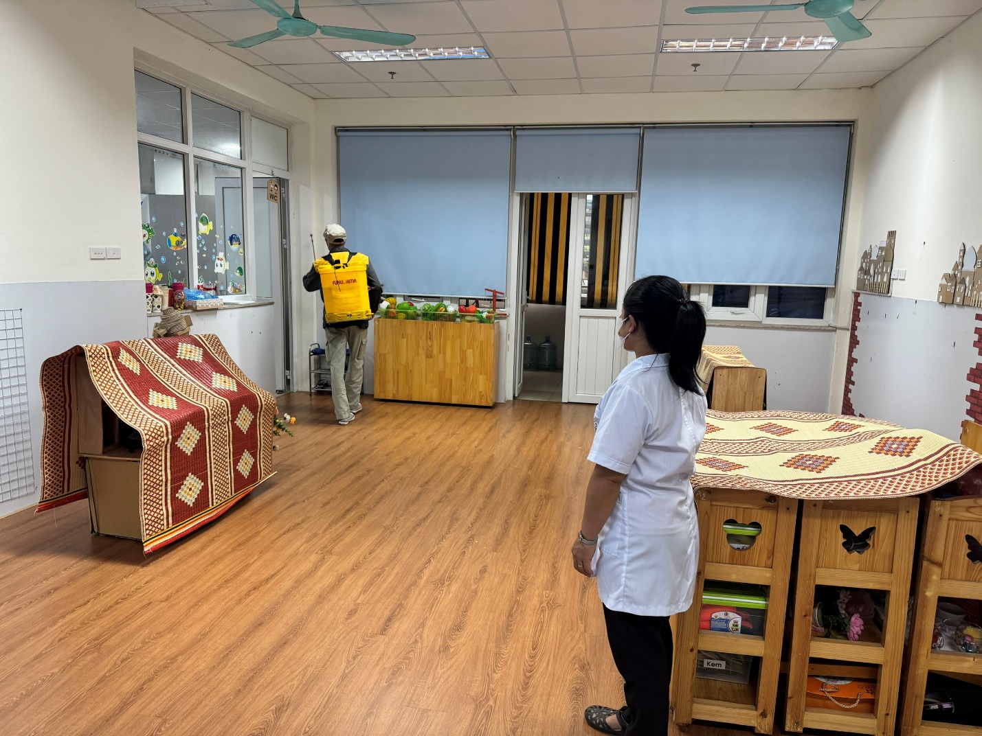 Sau khi hoàn thành phun thuốc, nhà trường tiếp tục chỉ đạo các lớp và bộ phận tiến hành vệ sinh lại môi trường, đảm bảo điều kiện an toàn tuyệt đối trước khi đón trẻ quay trở lại trường.