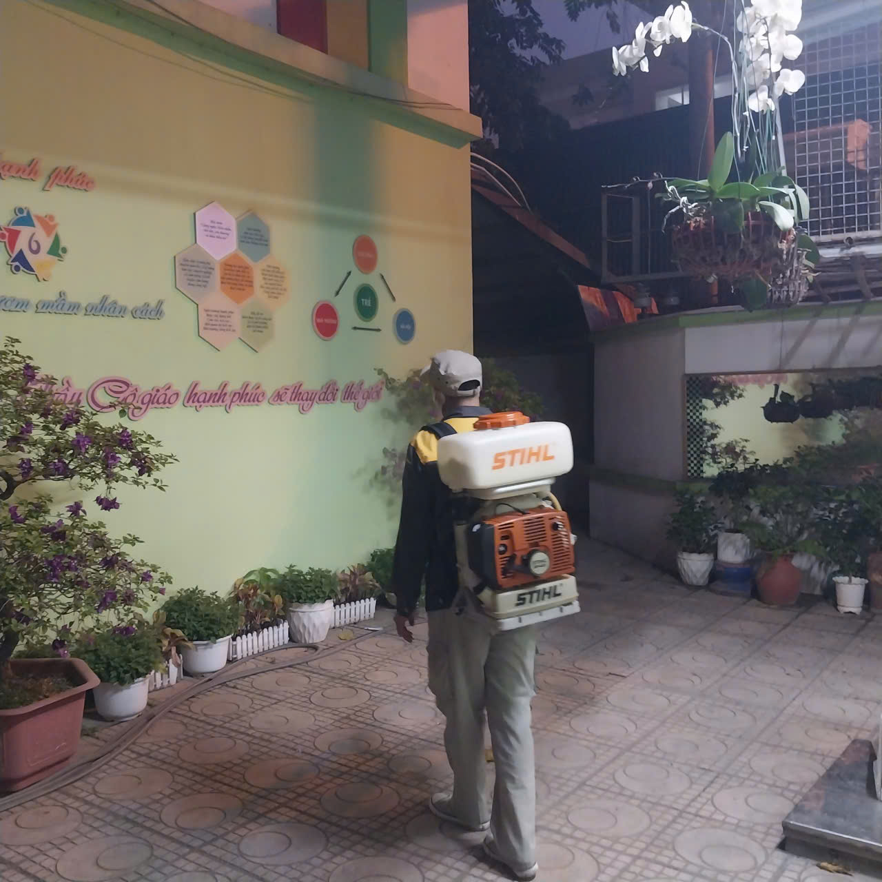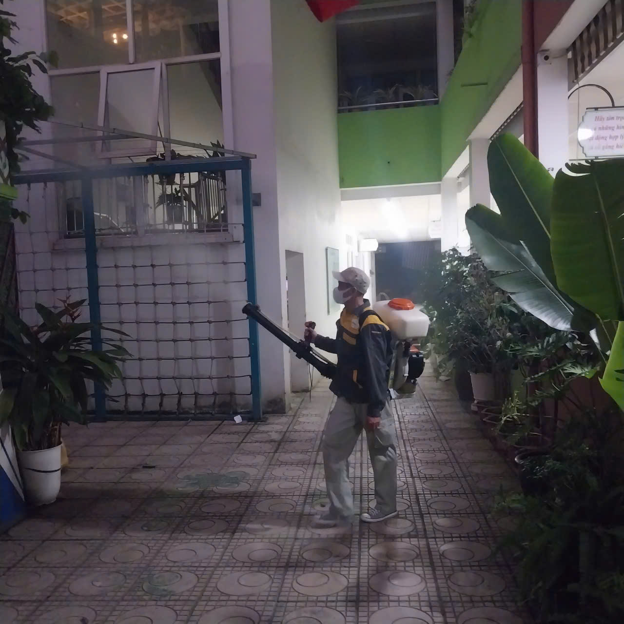 Quá trình phun thuốc được thực hiện đồng bộ, đúng kỹ thuật, đảm bảo an toàn và hiệu quả, góp phần tiêu diệt muỗi trưởng thành, hạn chế nguy cơ lây lan dịch bệnh trong nhà trường.