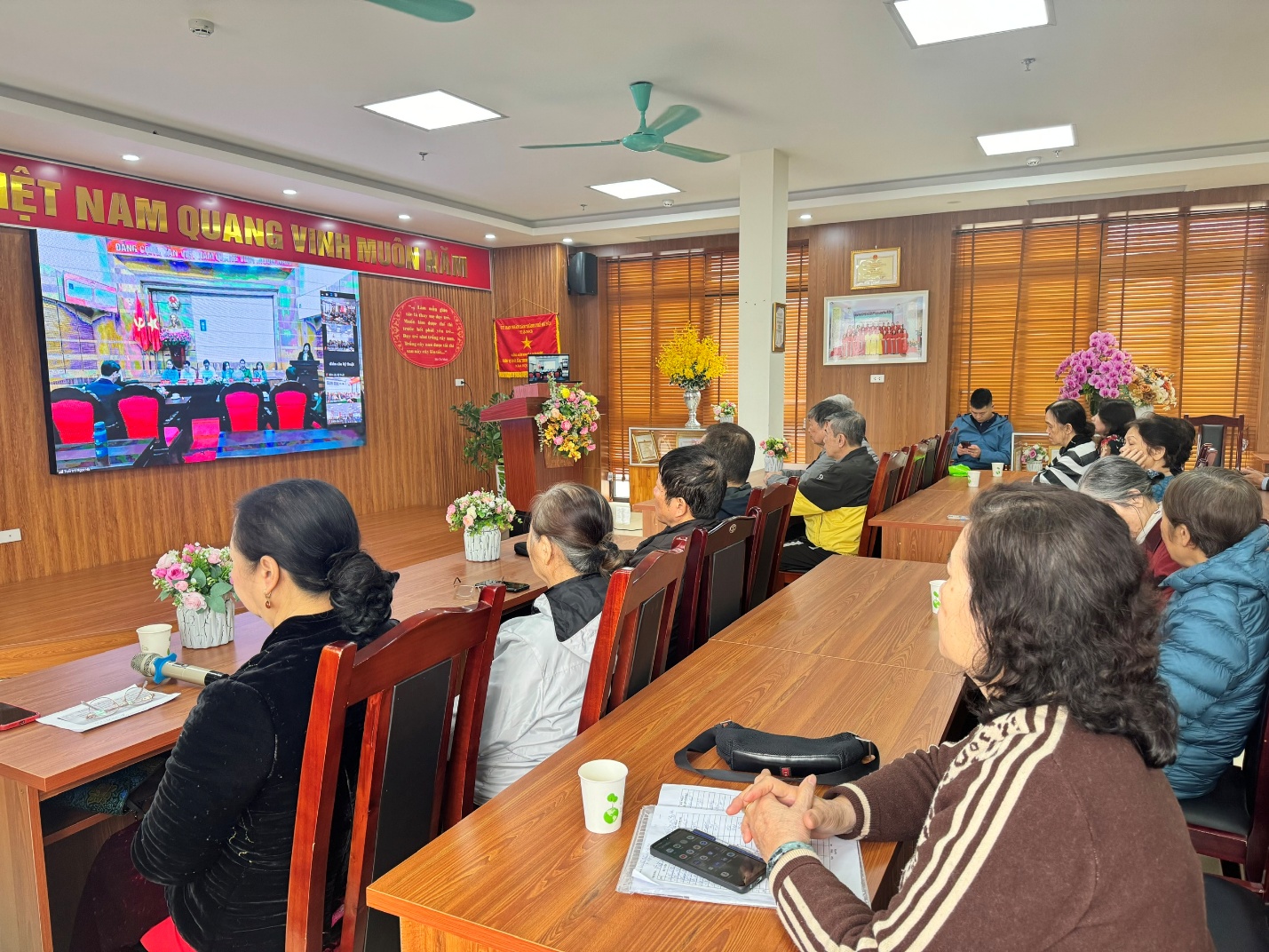 Với tinh thần trách nhiệm cao, Ban Giám hiệu cùng tập thể cán bộ, giáo viên, nhân viên nhà trường đã chủ động chuẩn bị đầy đủ các điều kiện cần thiết để hội nghị diễn ra thuận lợi. Phòng họp được bố trí trang trọng, hệ thống bàn ghế, màn hình LED, âm thanh, ánh sáng được kiểm tra kỹ lưỡng và sắp xếp khoa học nhằm đảm bảo phục vụ tốt nhất cho hội nghị.