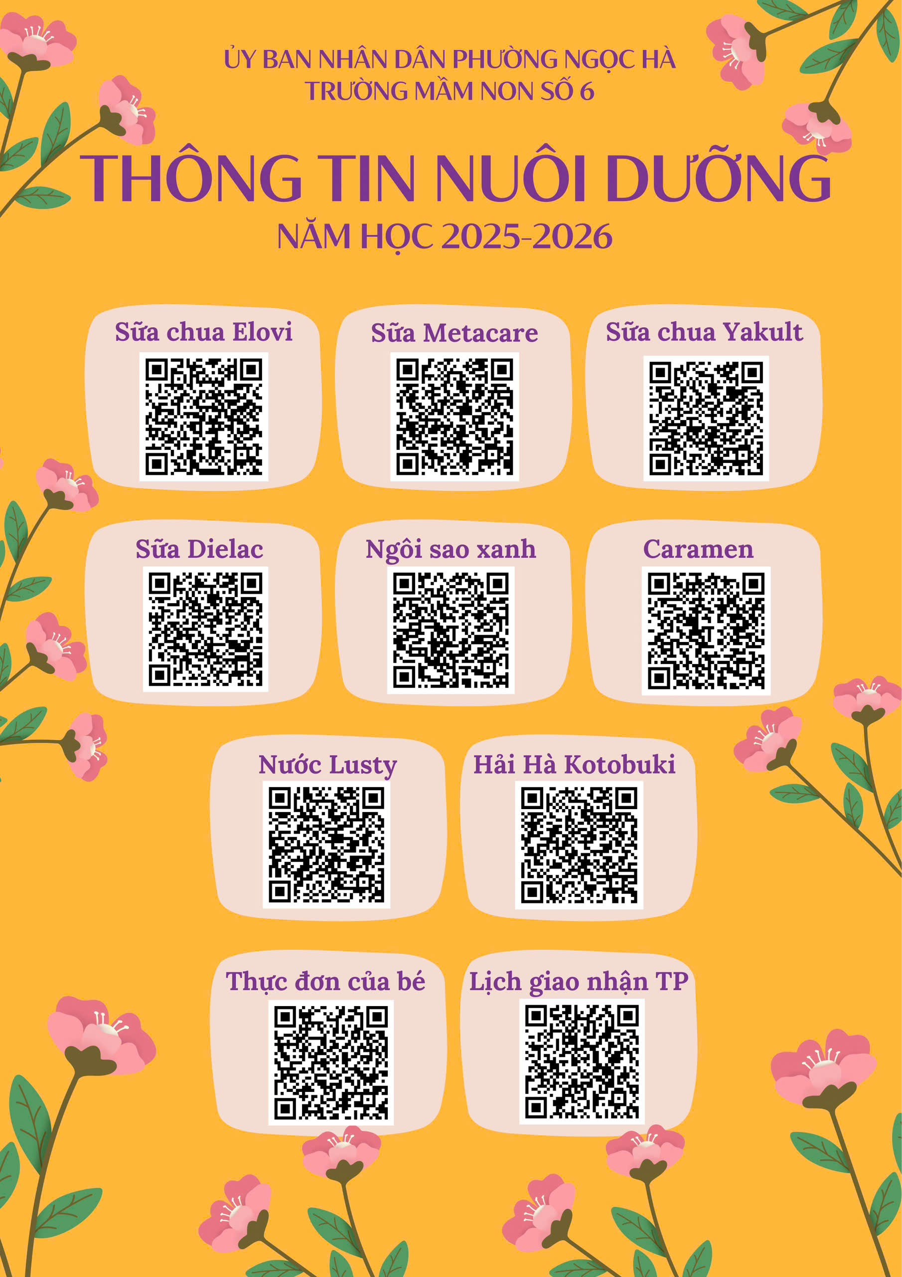 Ngay từ đầu năm học, nhà trường đã tạo các mã QR thông tin nuôi dưỡng và công khai dưới bảng tin nhà trường và trước cửa các lớp học để bất cứ lúc nào, phụ huynh cũng có thể kiểm tra các thông tin về các công ty cung cấp thực phẩm, bánh, sữa, nước uống… cho nhà trường.