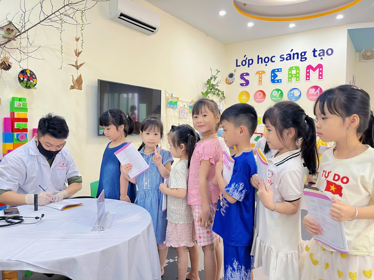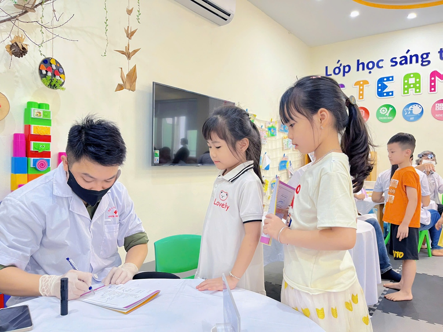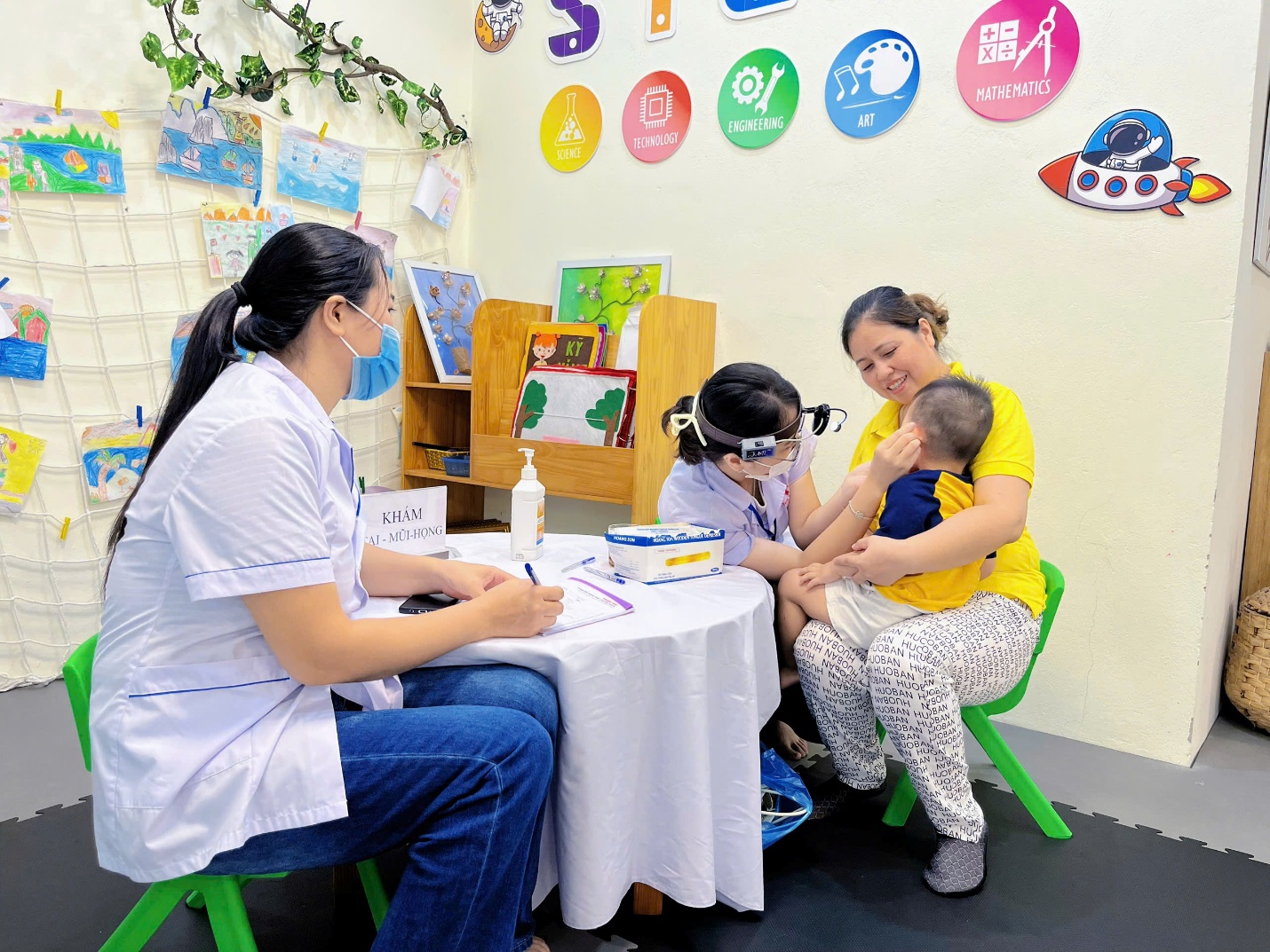 Sau đây là một số hình ảnh khám sức khỏe định kì cho trẻ tại trường: