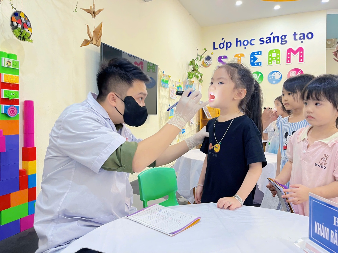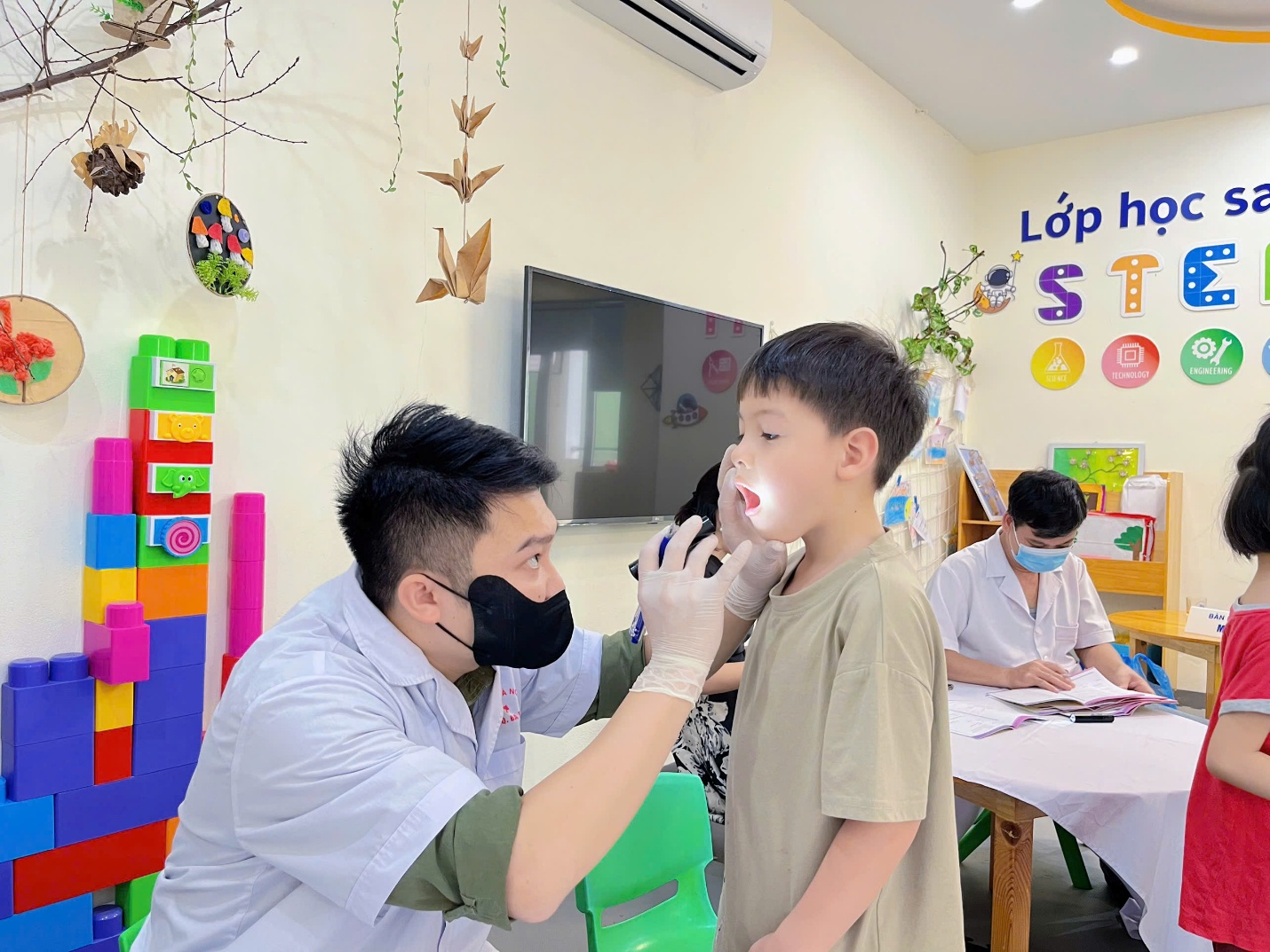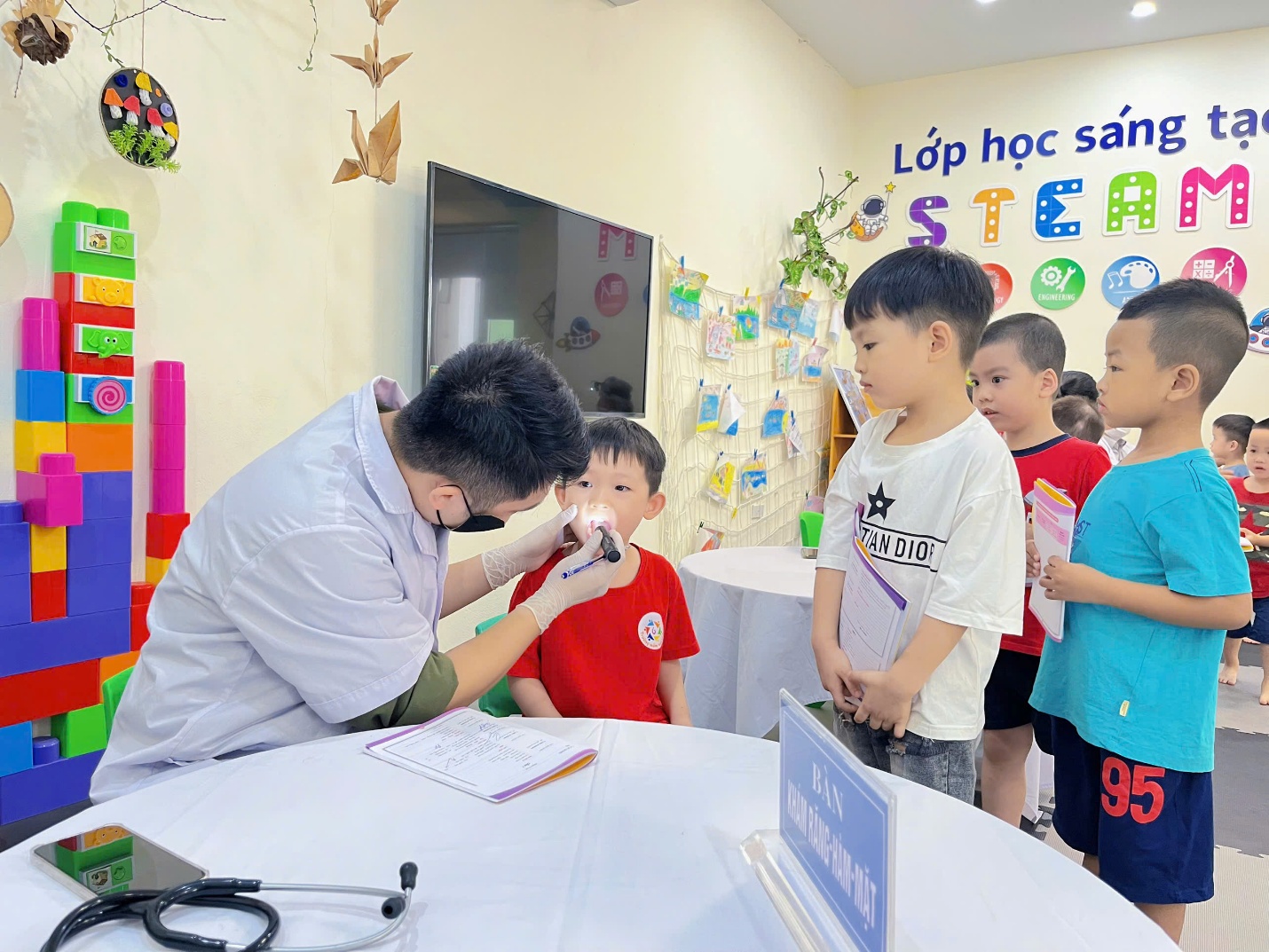 Sau đây là một số hình ảnh khám sức khỏe định kì cho trẻ tại trường: