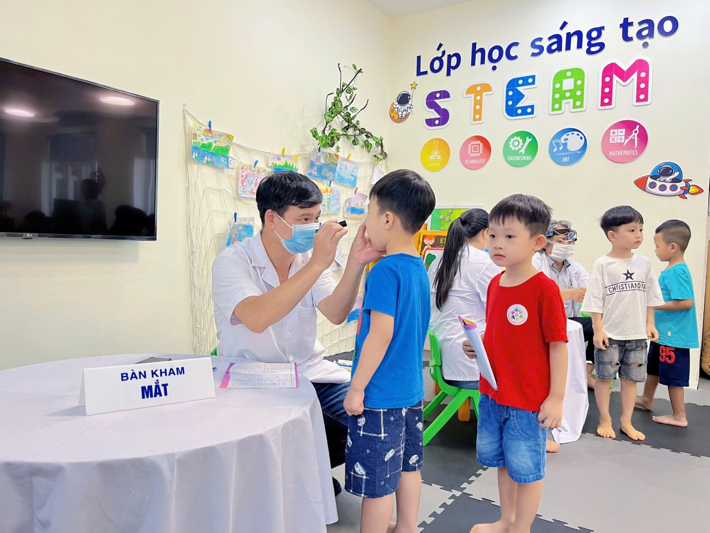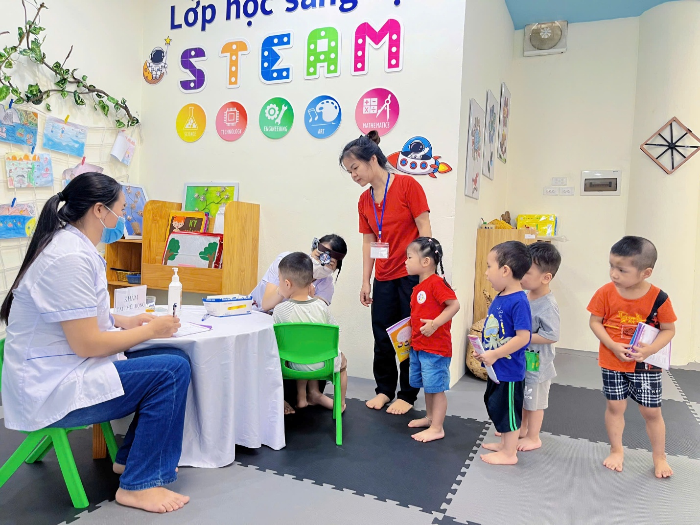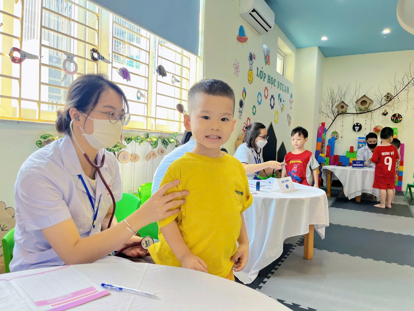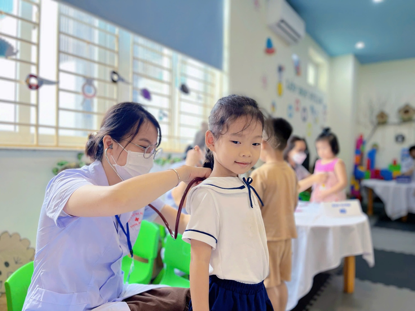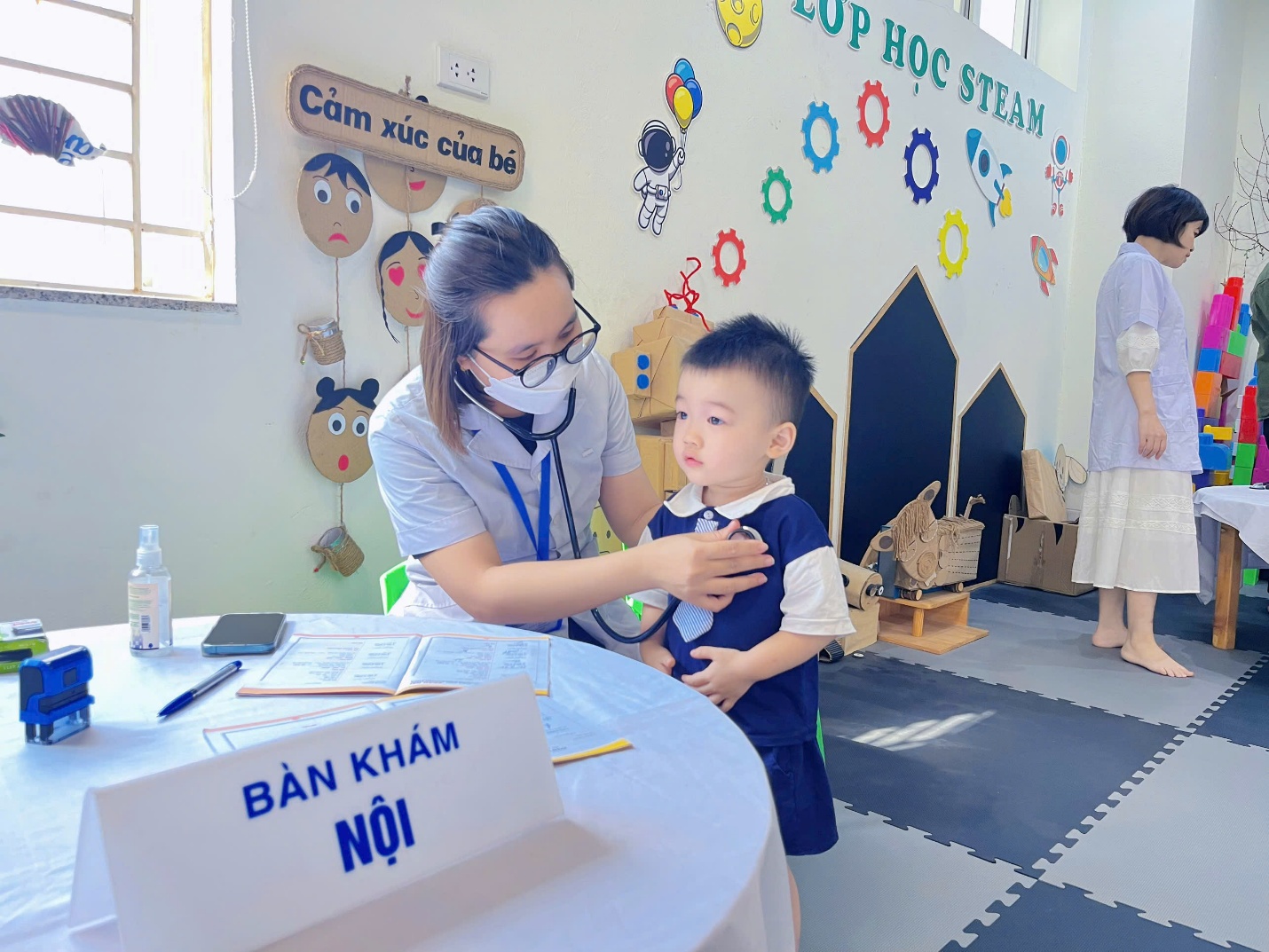 Việc tổ chức khám sức khoẻ định kỳ cho trẻ đã được thực hiện với các nội dung kiểm tra: cân nặng, chiều cao, khám mắt, tai mũi họng, kiểm tra tim phổi và một số bệnh liên quan đến đường hô hấp, da liễu...
