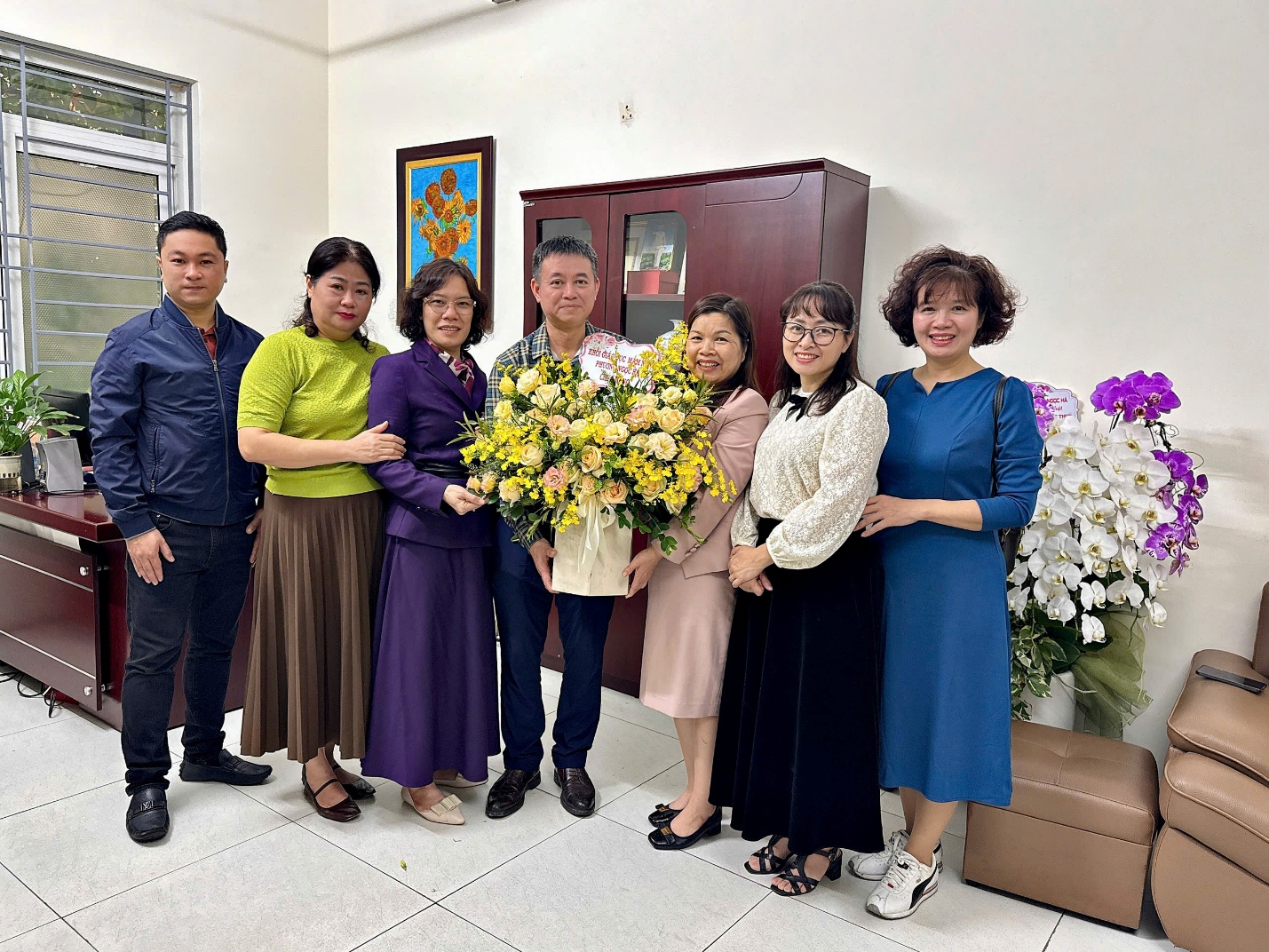 Tập thể CB-GV-NV tặng hoa chúc mừng đồng chí Lê Thị Thu Thanh- Nhân viên y tế nhà trường.