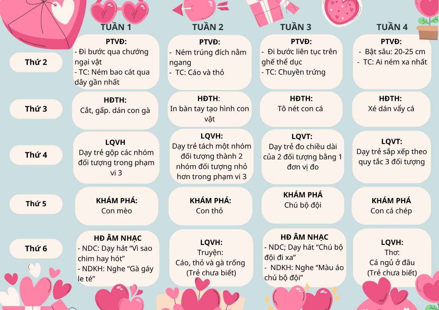 Phiên chế bài dạy tháng 12/2024 - Lớp MGN B3