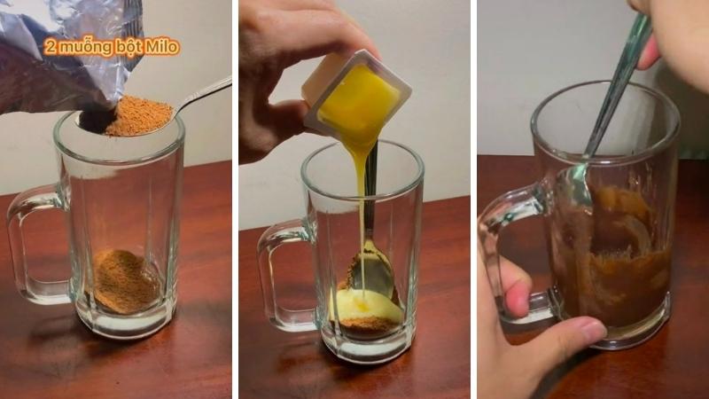 Đầu tiên cô giáo cho các bạn xem quy trình pha sữa MILO gồm có 3 bước: