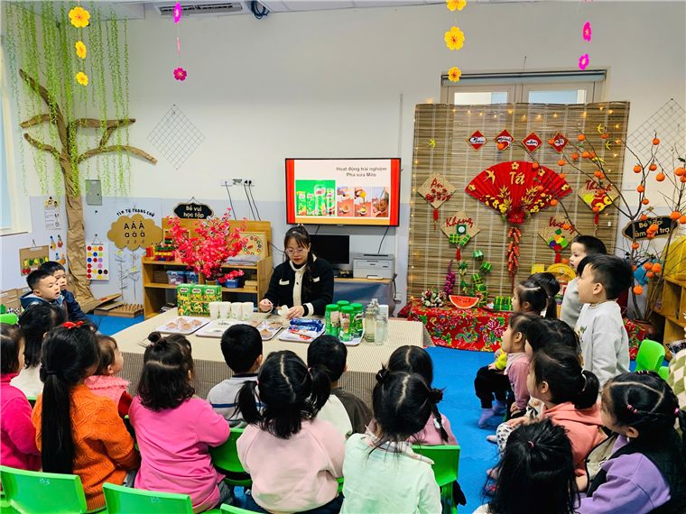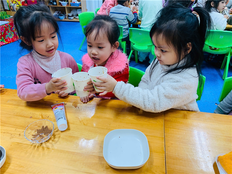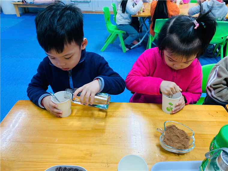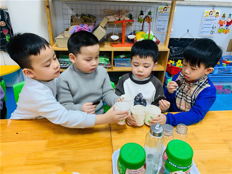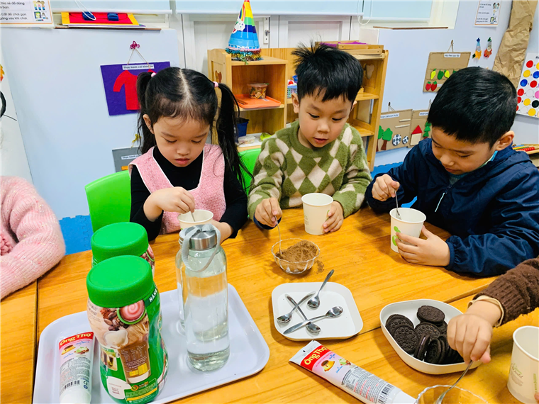 Tiếp đến cô giáo pha mẫu cho các bạn xem