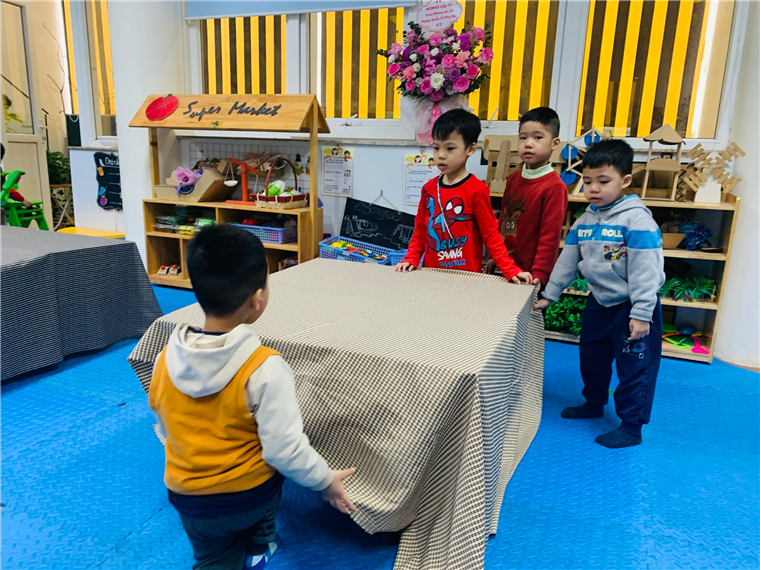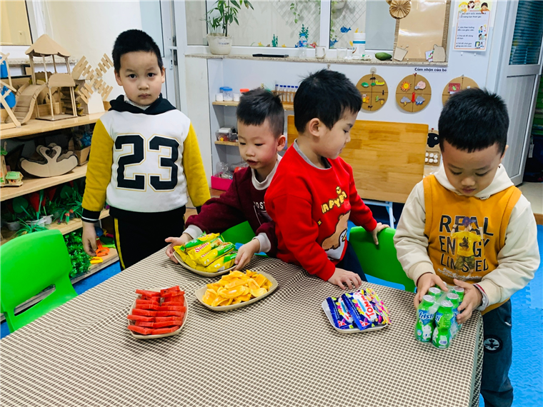 Kết thúc chuỗi hoạt động chào mừng ngày Quốc tế Phụ nữ các bạn nhỏ lớp MGN B3 đã cùng nhau liên hoan để mừng ngày 8/3. Trong buổi liên hoan, các bạn nam đã thể hiện sự ga lăng, quan tâm của mình đến các bạn nữ bằng những hành động vô cùng đáng yêu như: trải khăn để bàn, bê ghế vào bàn, giúp cô và các bạn nữ bày bàn tiệc liên hoan, tặng hoa cho các cô, tặng hoa cho các bạn nữ trong lớp.