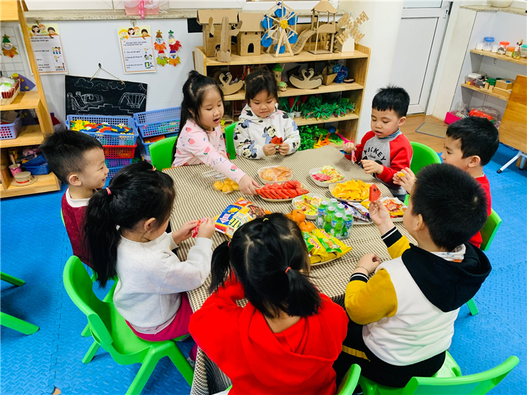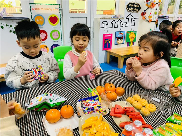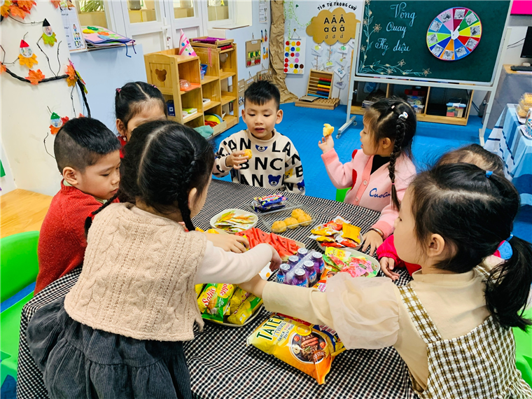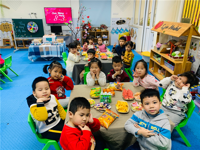 Các con cùng nhau liên hoan mừng ngày Quốc tế Phụ nữ