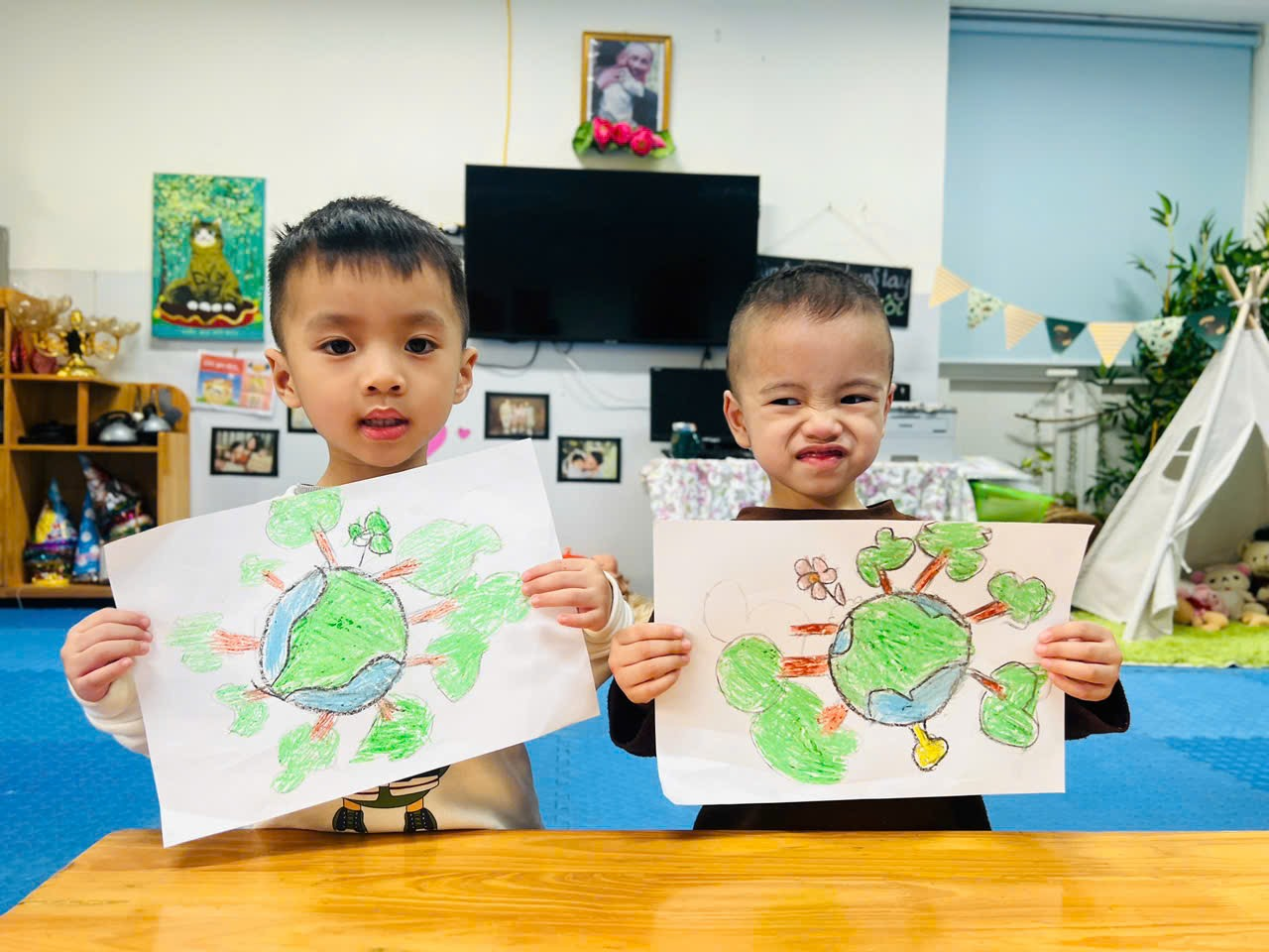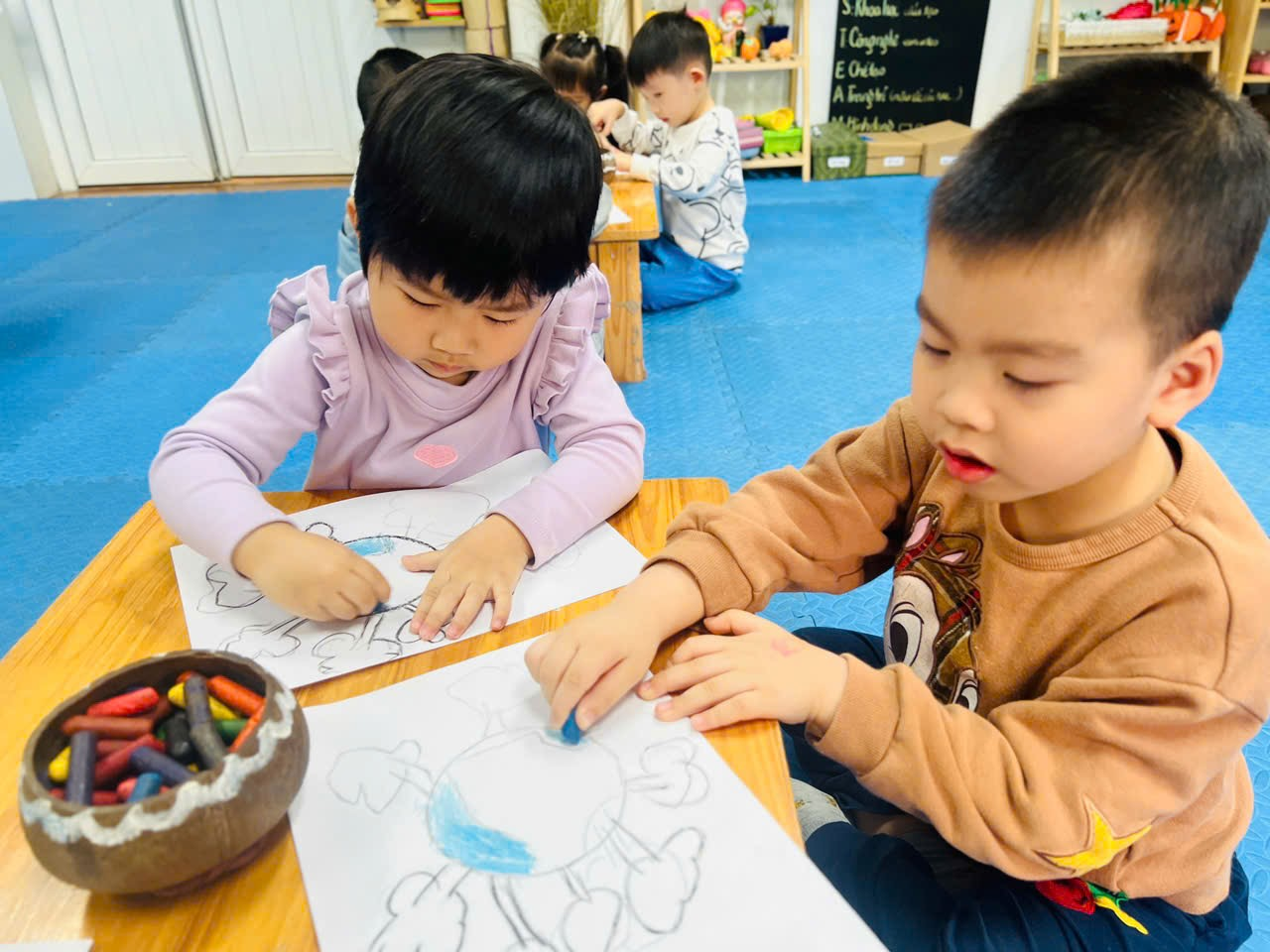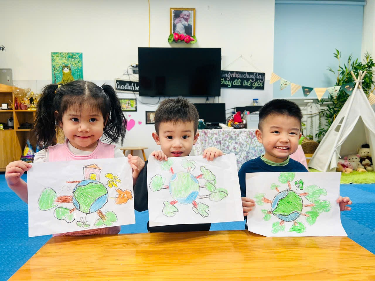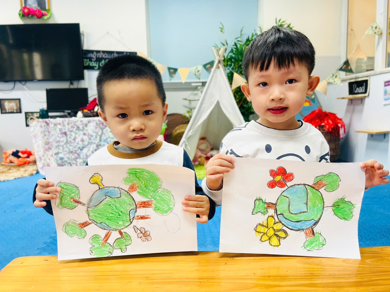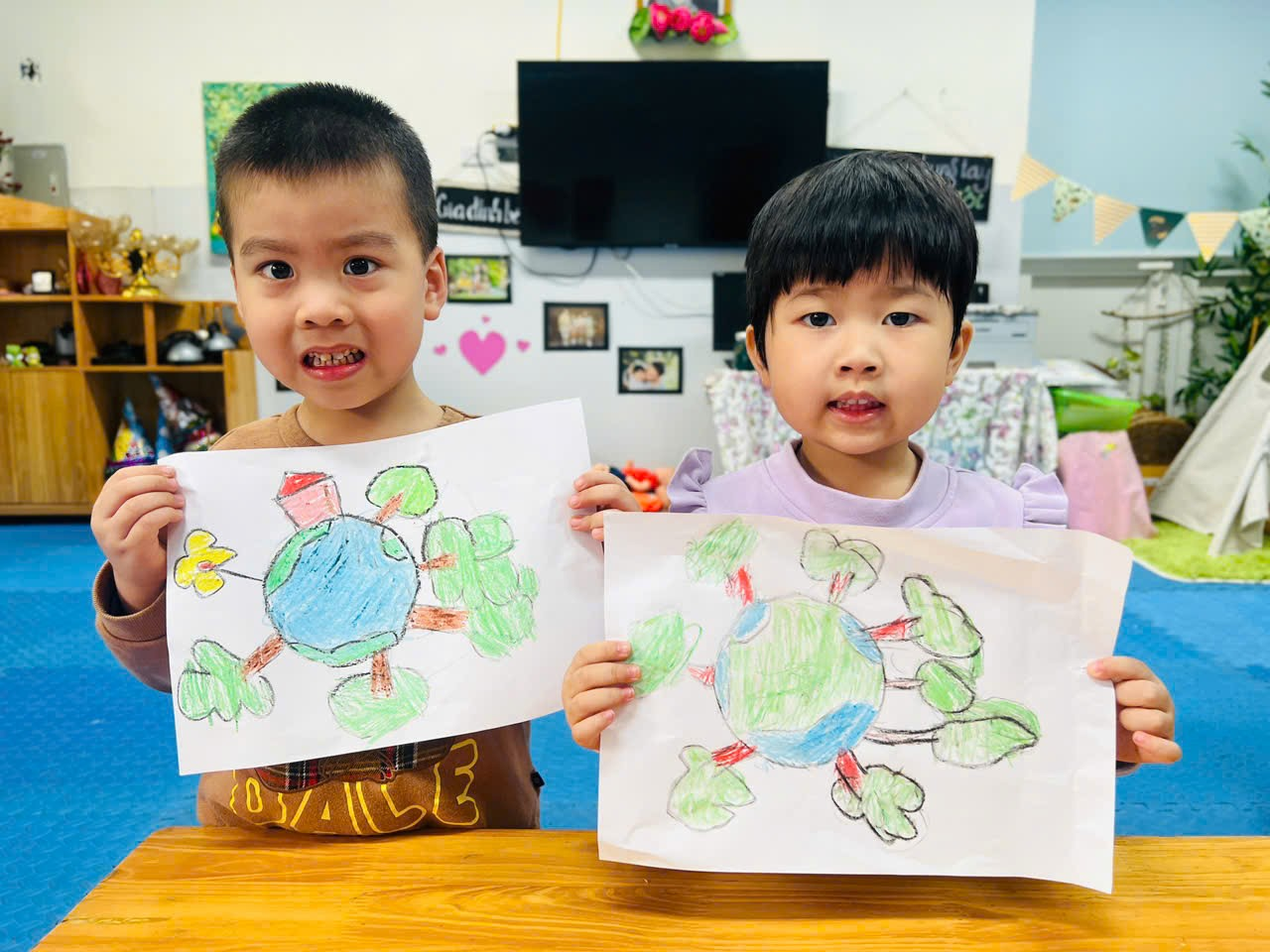 Các bạn nhỏ vẽ tranh hưởng ứng Giờ trái đất