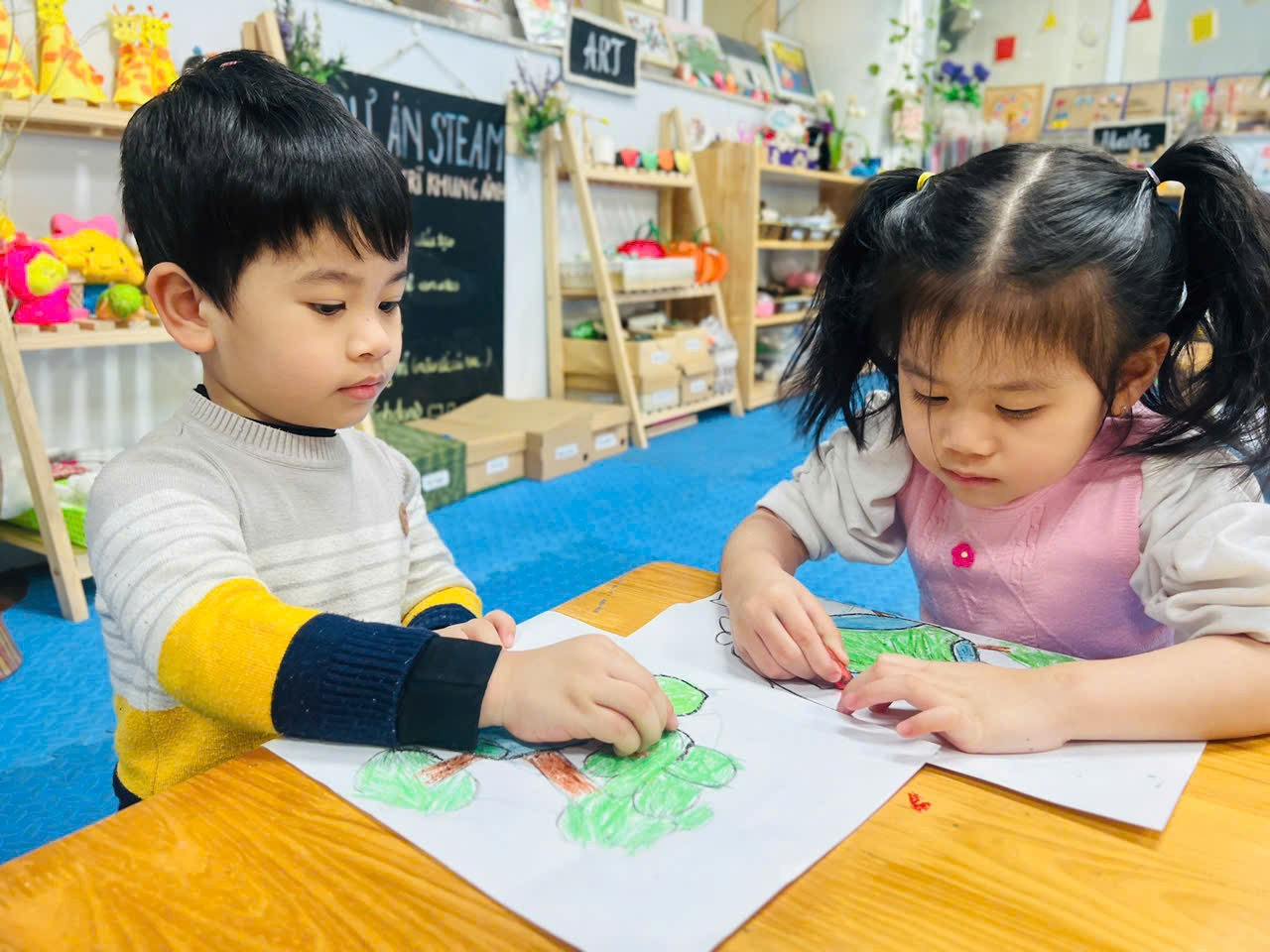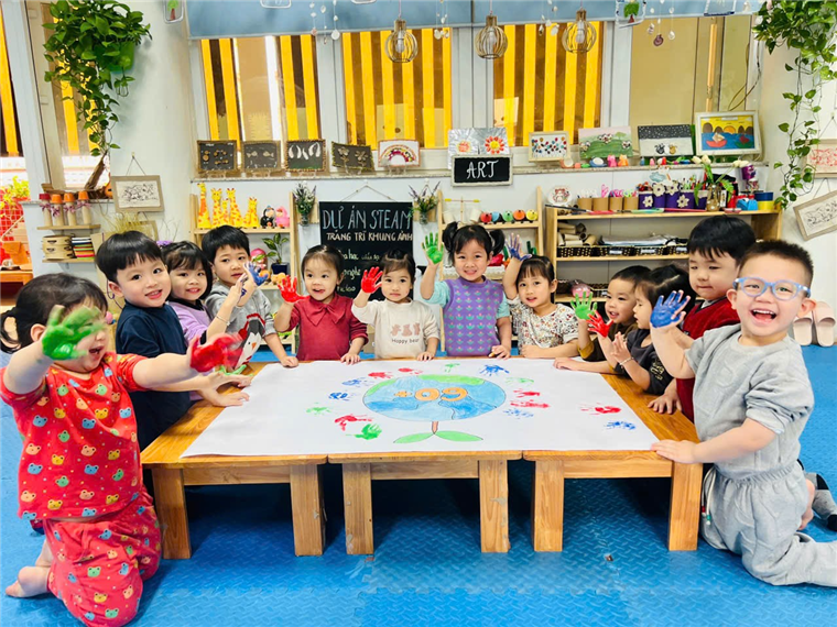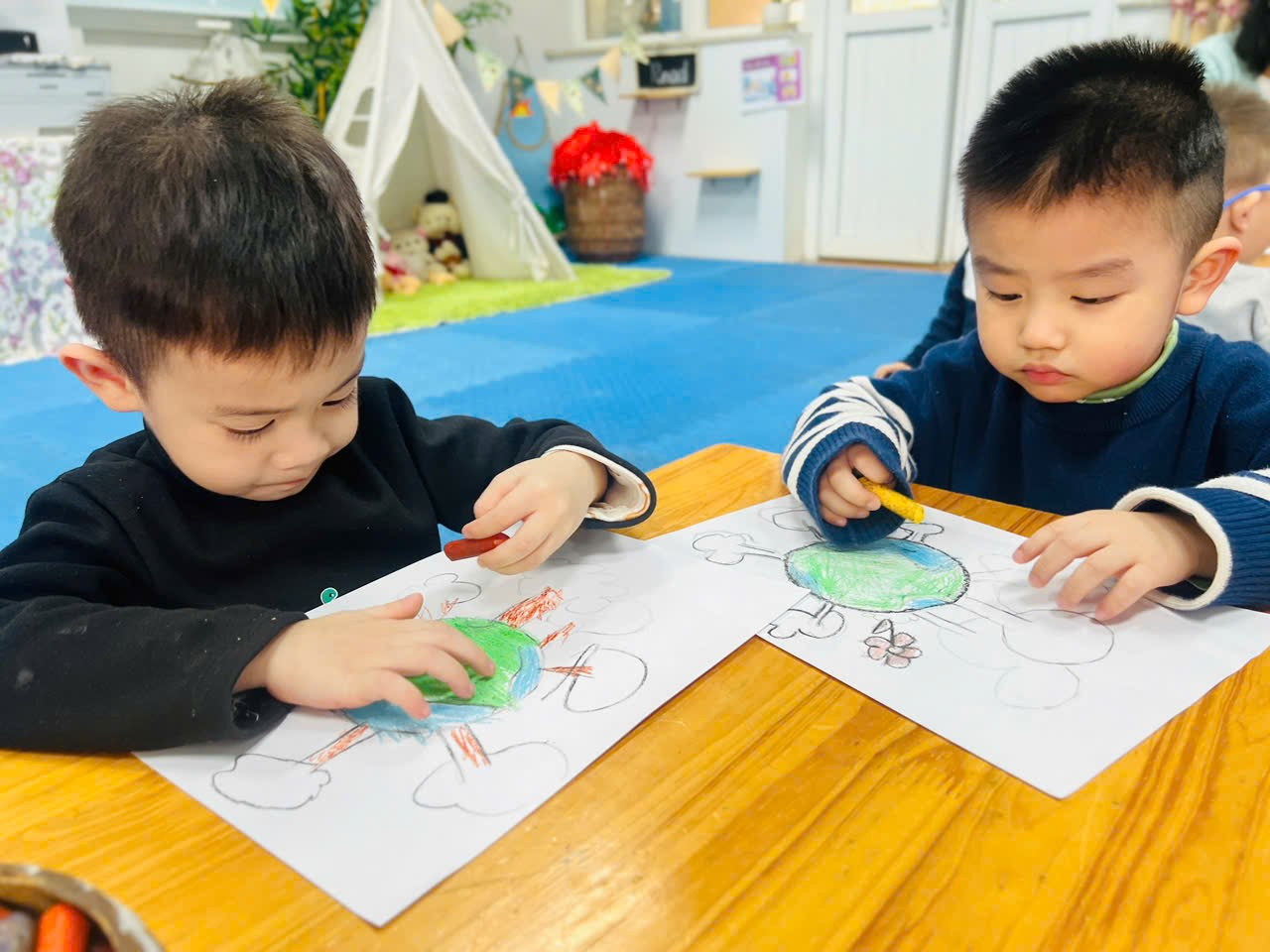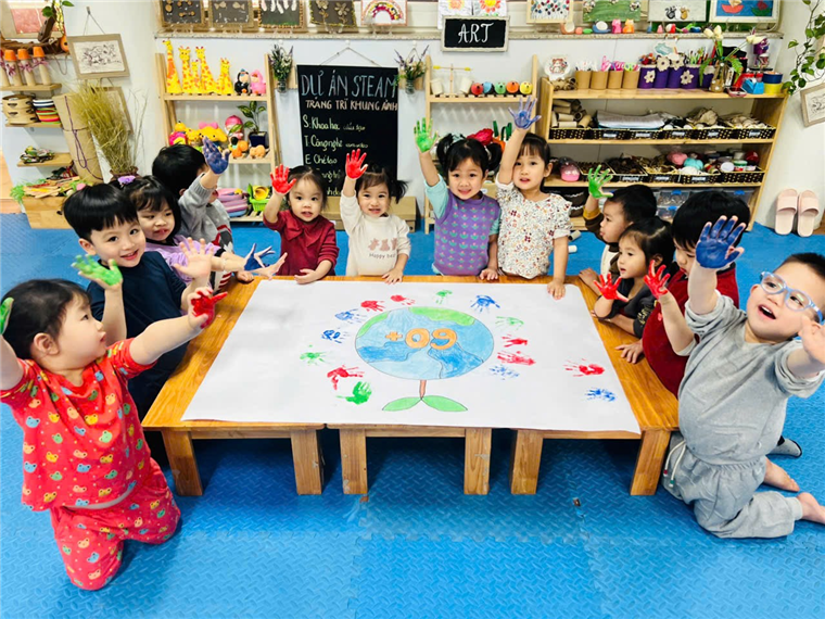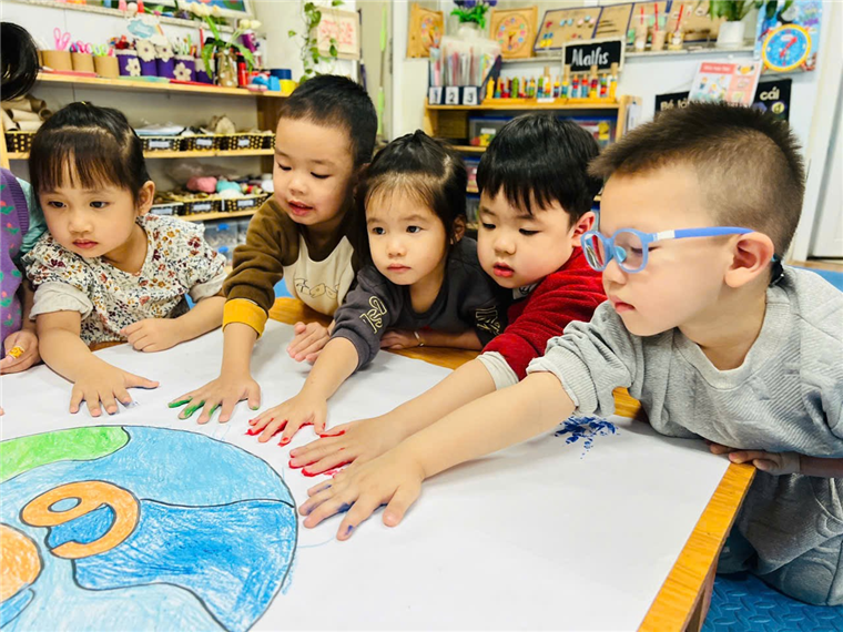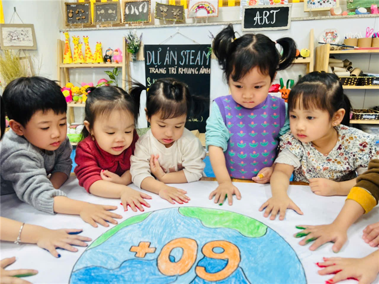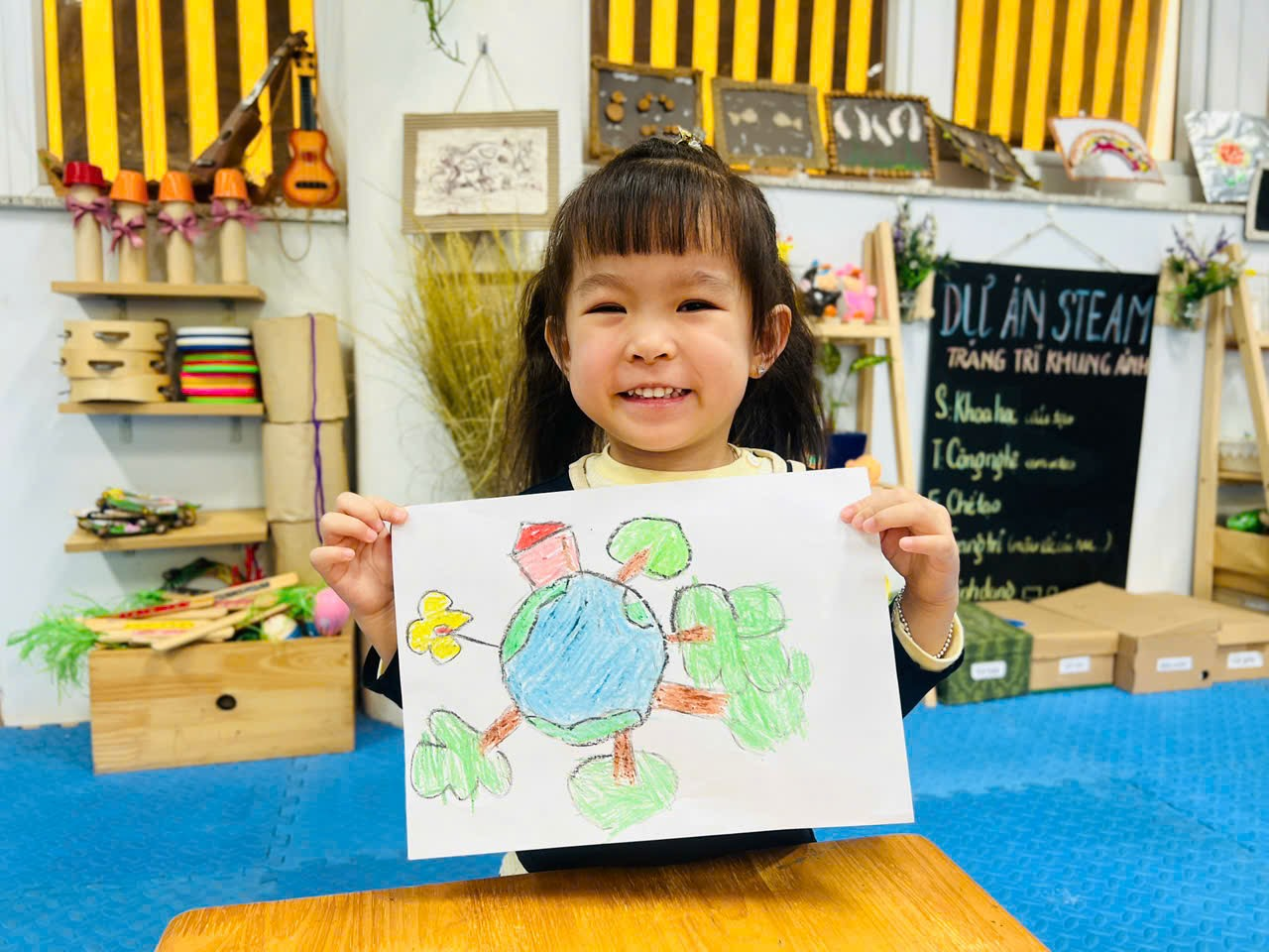 Các bạn nhỏ vẽ tranh hưởng ứng Giờ trái đất