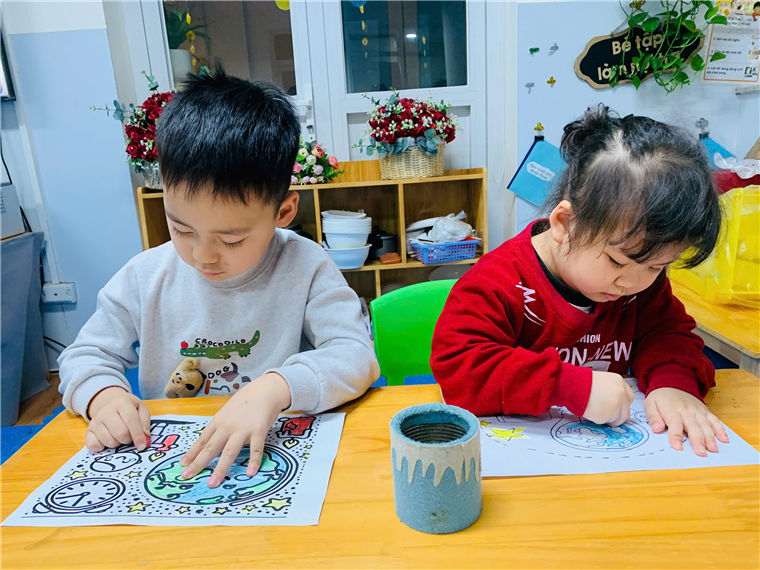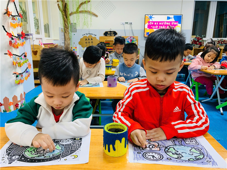 Các con đang tô tranh hưởng ứng “Giờ trái đất”