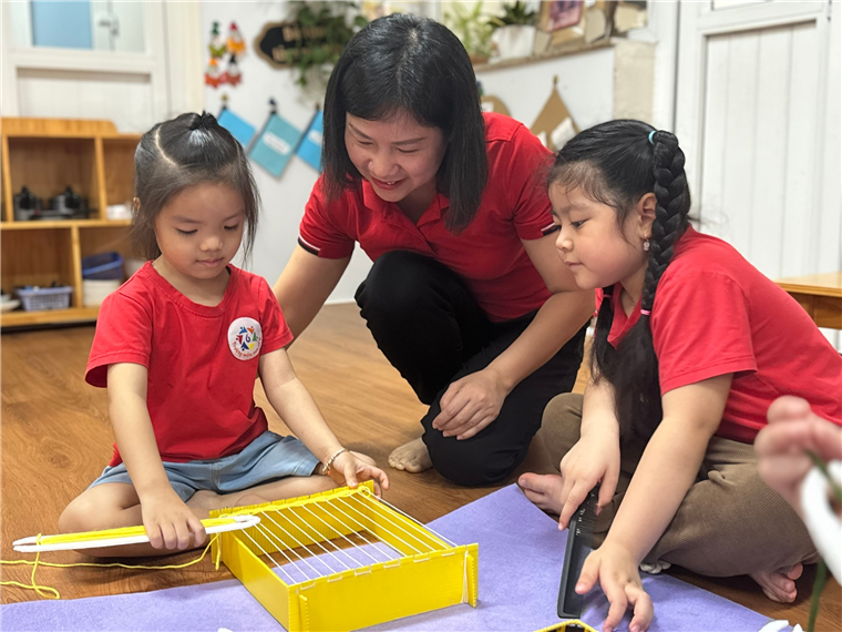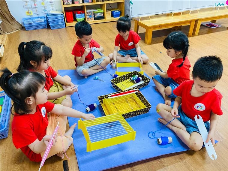 Dưới đây là một số hình ảnh của các bạn nhỏ lớp B3 với hoạt động Steam “Dệt vải”: