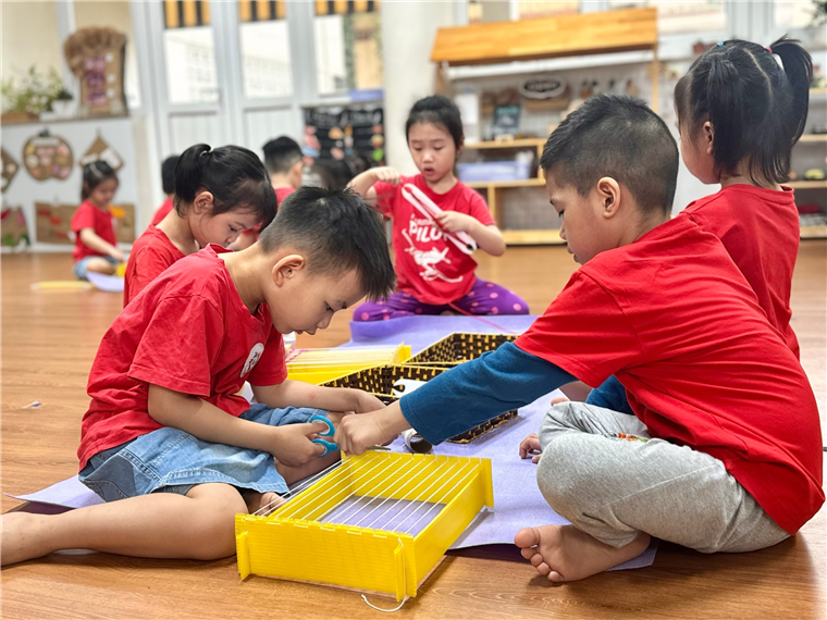 Các con đang tìm hiểu về các bước của quy trình dệt vải
