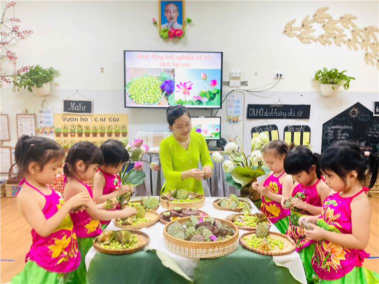 Không đơn thuần là một hoạt động học tập hay một trò chơi, hoạt động “Bé tách hạt sen từ đài sen” còn là một bài học thực tế, nhẹ nhàng mà bổ ích, giúp trẻ phát triển vận động tinh qua từng động tác tách vỏ tỉ mỉ, Tăng khả năng tập trung, rèn luyện sự chú ý trong từng chi tiết; trẻ học cách phối hợp tay – mắt, nâng cao sự khéo léo và làm quen với quy trình làm việc có trình tự: Từ quan sát – thực hành – thu kết quả. Bên cạnh đó, trẻ còn được rèn luyện tinh thần hợp tác, chia sẻ nguyên liệu và cùng nhau hoàn thành nhiệm vụ.