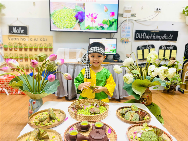 Không khí lớp học hôm nay rộn ràng tiếng cười, ánh mắt các con ánh lên sự tò mò và thích thú khi khám phá điều mới mẻ ẩn chứa trong từng hạt sen. Những bàn tay nhỏ bé nhưng đầy cố gắng đã hoàn thành công việc một cách chăm chú và tự tin. Bé tách hạt sen từ đài sen –Một trải nghiệm nhỏ nhưng chứa đựng ý nghĩa lớn, giúp trẻ trưởng thành qua từng thao tác, từng cảm xúc và từng khoảnh khắc được tự tay làm một việc thật “người lớn”.