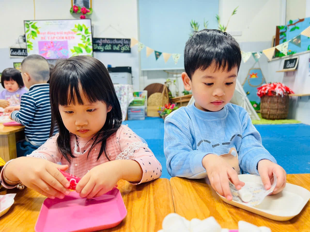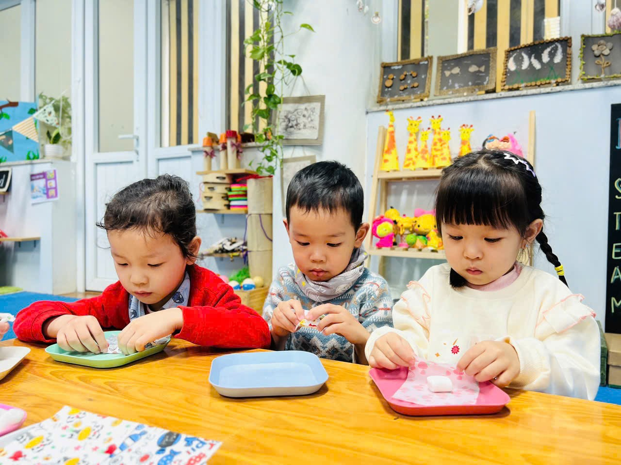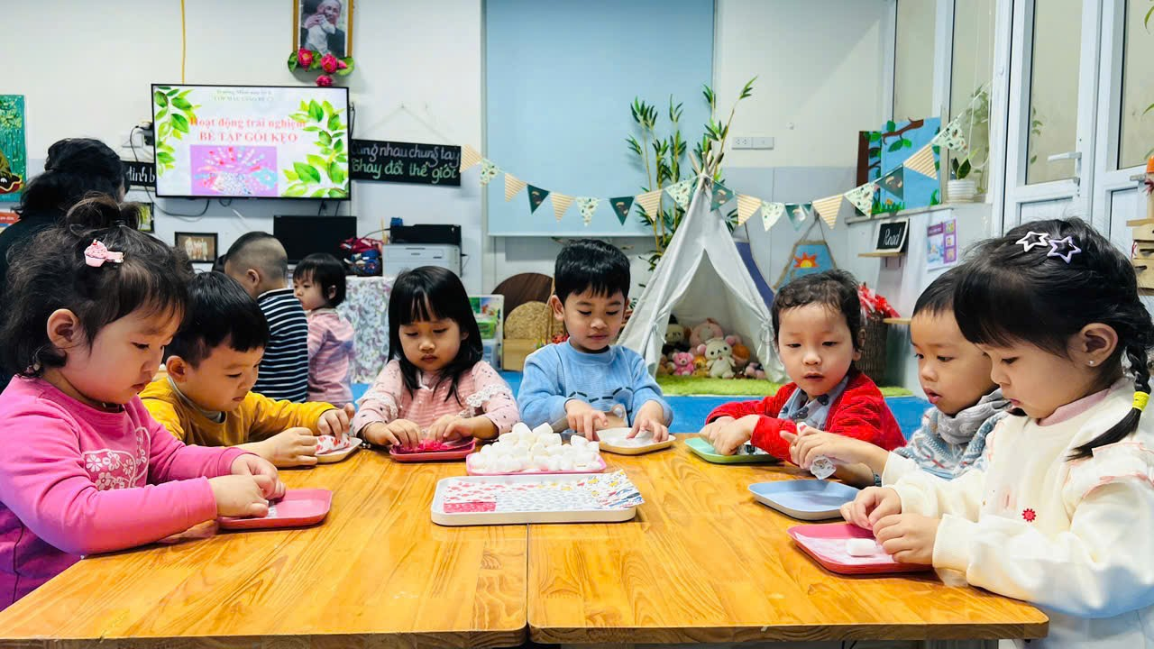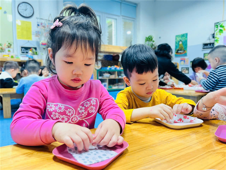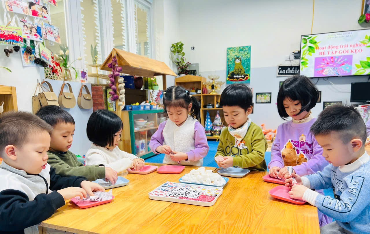 Mời bố mẹ hãy cùng ngắm nhìn lại những hình ảnh quá trình các bạn nhỏ lớp C2 tập gói kẹo ở trong trải nghiệm lần này nhé ạ!