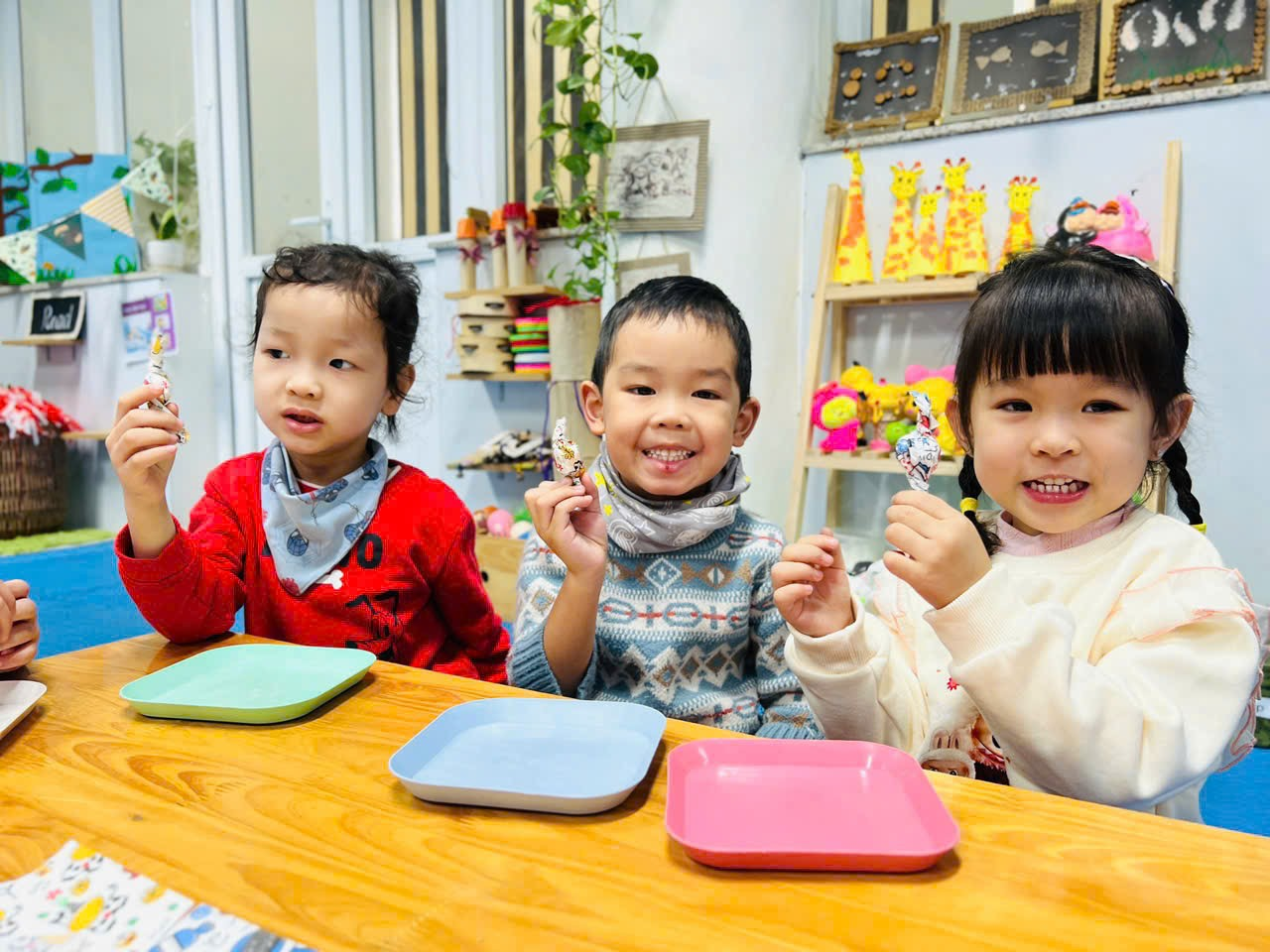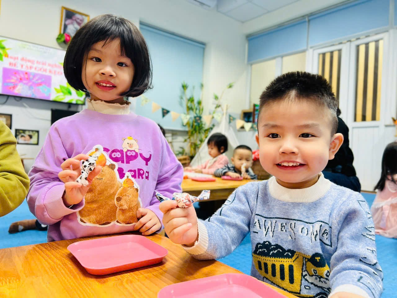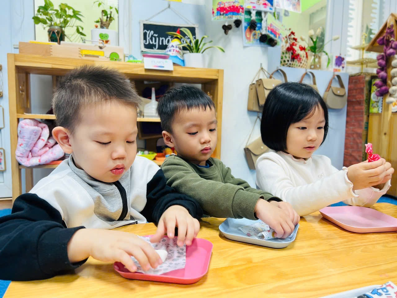 Mời bố mẹ hãy cùng ngắm nhìn lại những hình ảnh quá trình các bạn nhỏ lớp C2 tập gói kẹo ở trong trải nghiệm lần này nhé ạ!