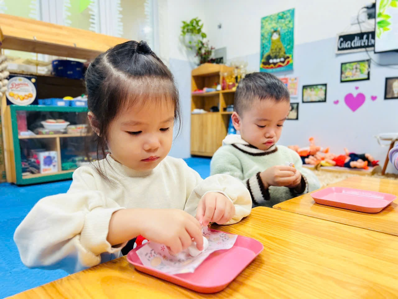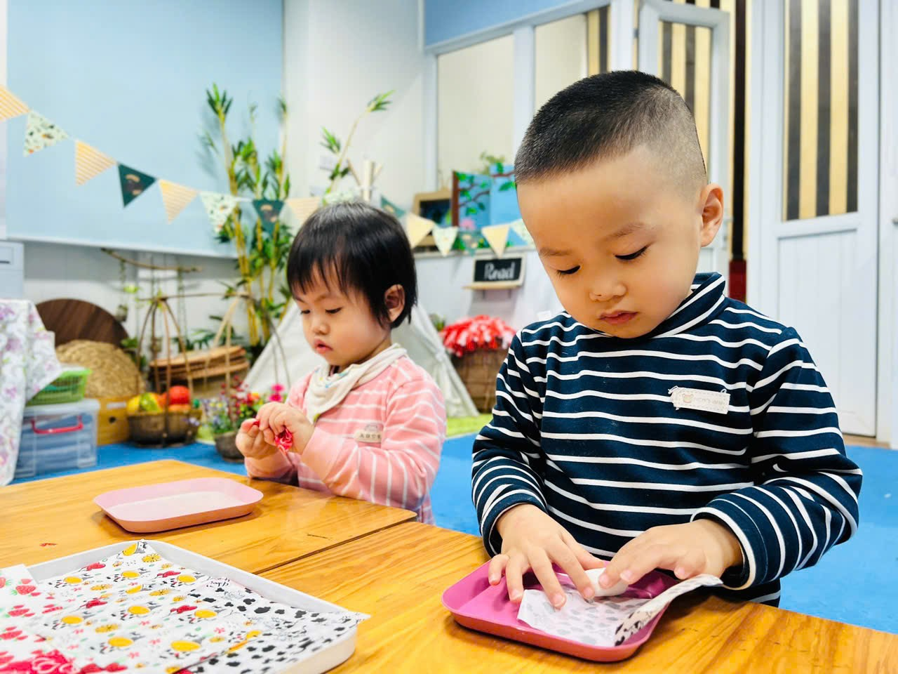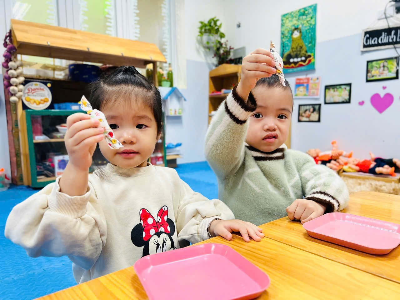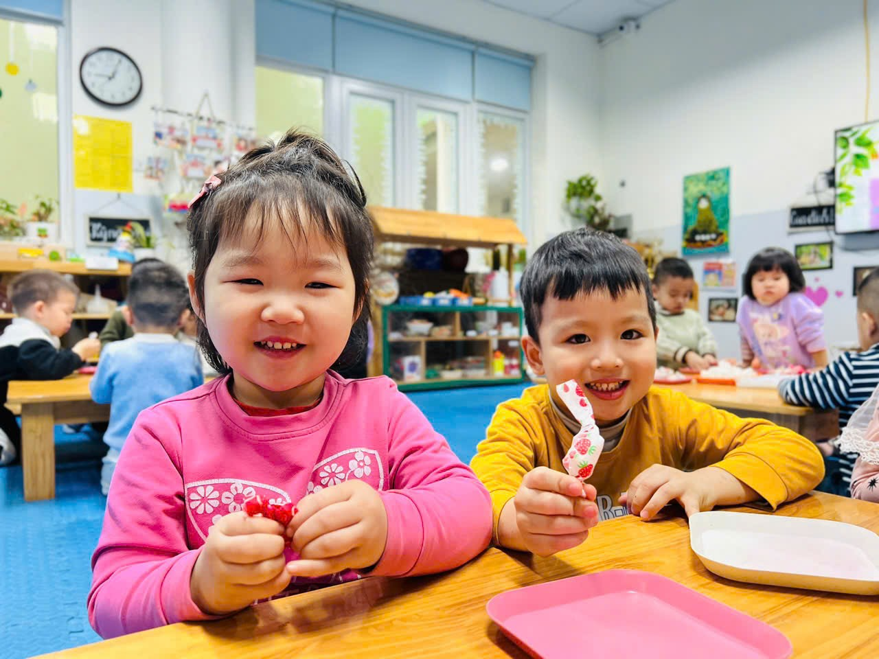Mời bố mẹ hãy cùng ngắm nhìn lại những hình ảnh quá trình các bạn nhỏ lớp C2 tập gói kẹo ở trong trải nghiệm lần này nhé ạ!