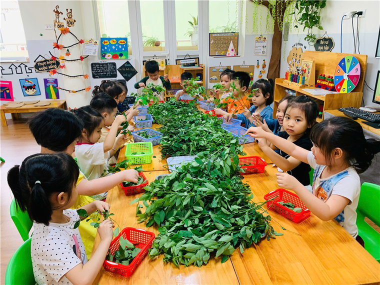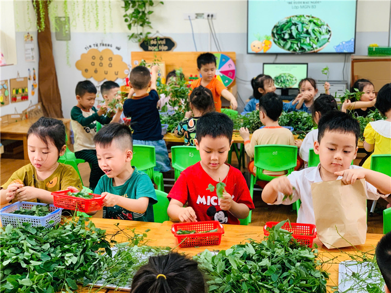 “Tuốt rau ngót” là một trải nghiệm mới mẻ và thú vị với các bé lớp Mẫu giáo nhỡ B3. Các con rất hào hứng và thích thú khi được tự trải nghiệm tuốt từng nhánh rau ngót. Qua đó, các con thêm hiểu hơn về đặc điểm cũng như lợi ích của rau ngót, đó là loại rau ăn lá chứa nhiều Vitamin và chất xơ tốt cho sức khỏe.