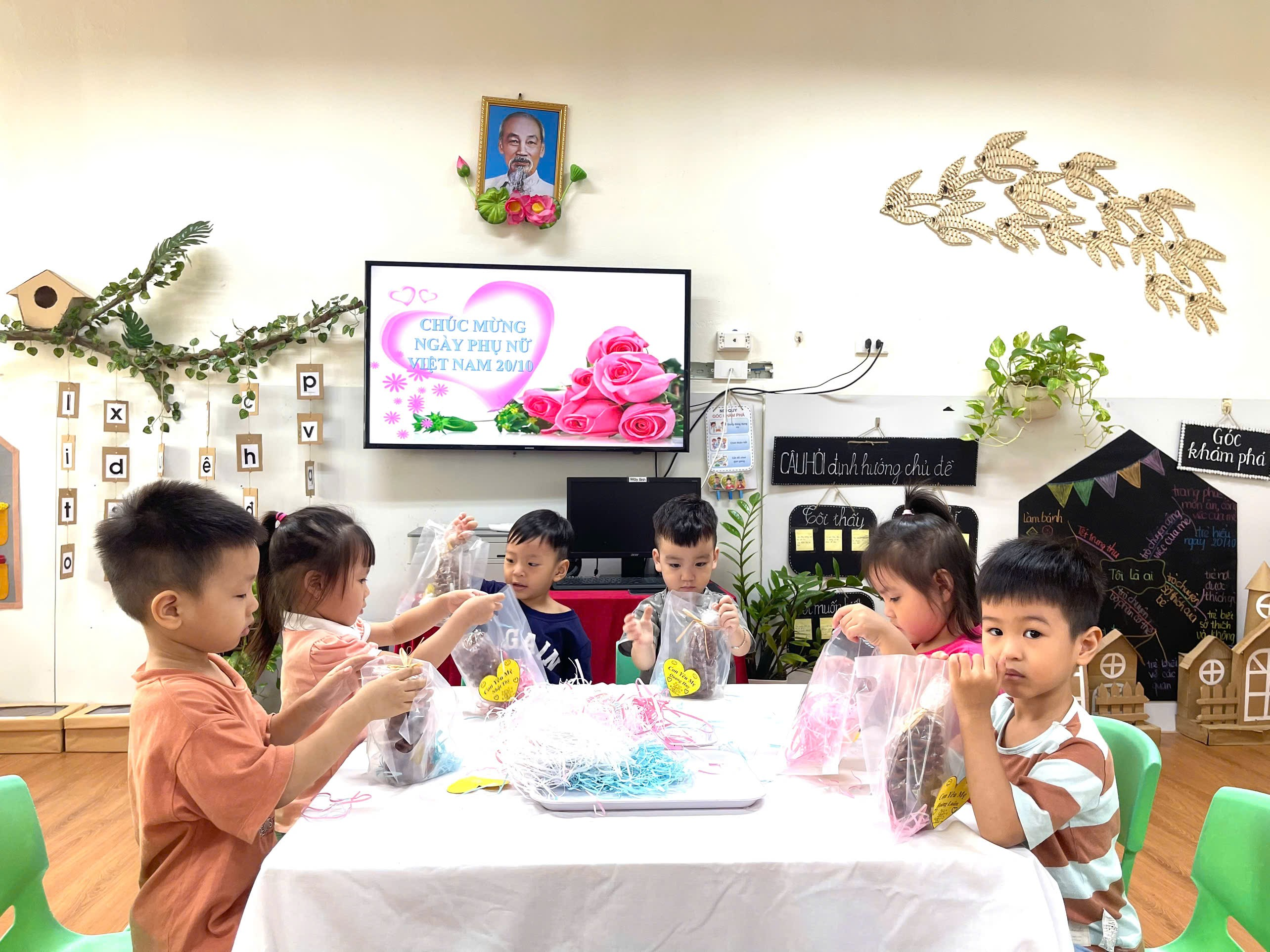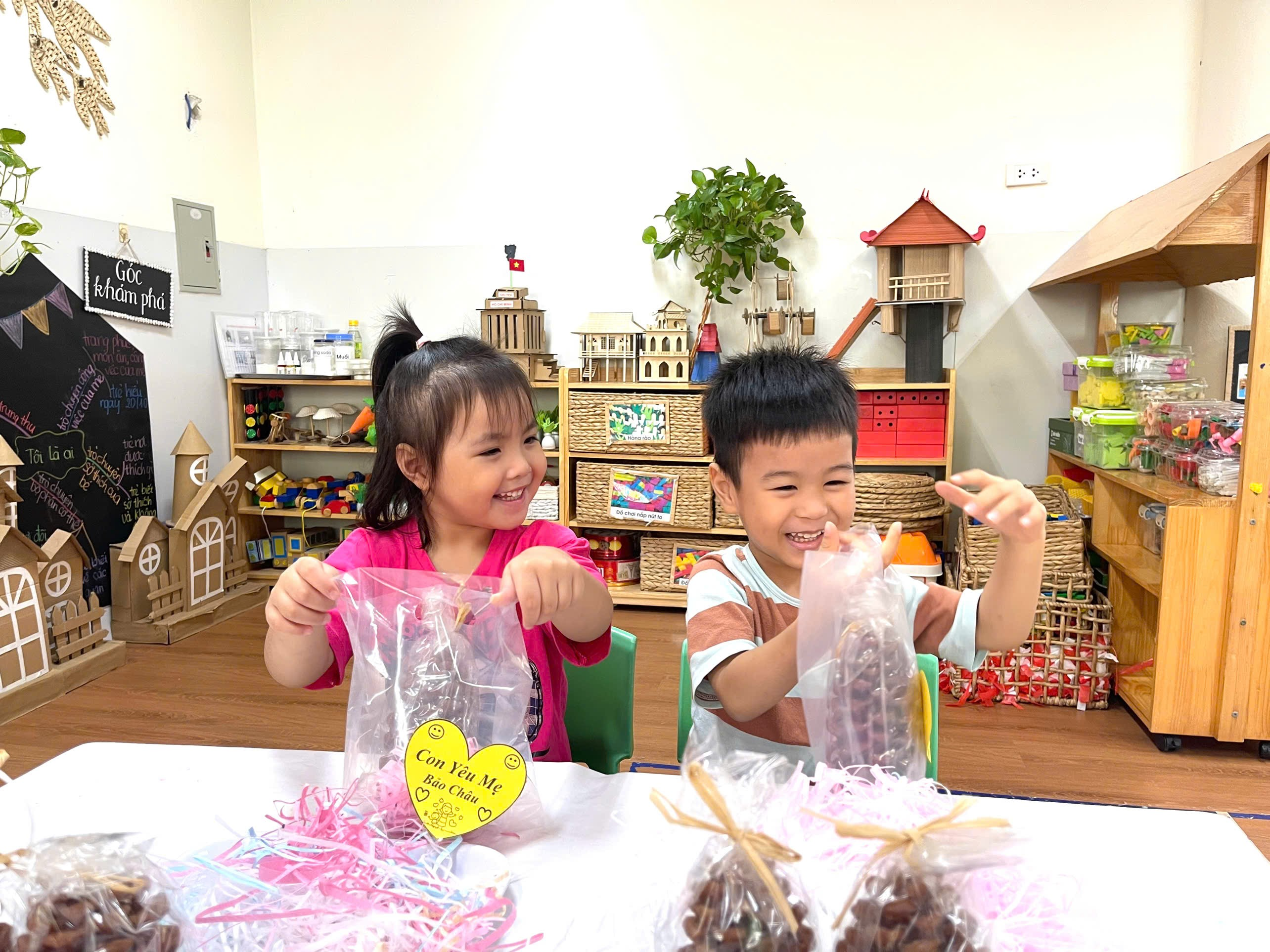 Nhìn những gương mặt rạng rỡ, đôi bàn tay nhỏ nhắn cẩn thận, nâng niu món quà quý giá là tấm lòng của con các con tự tay chuẩn bị.