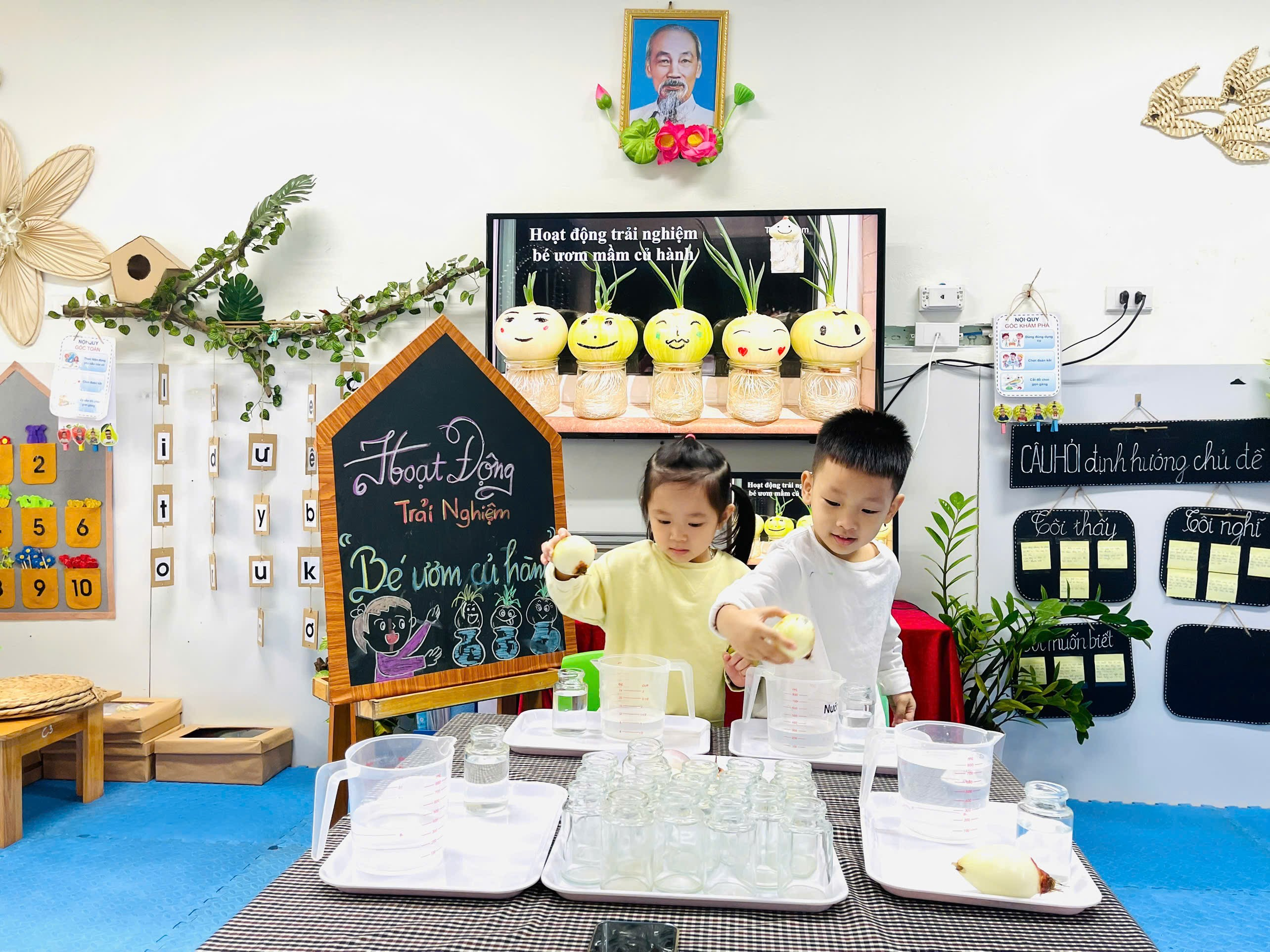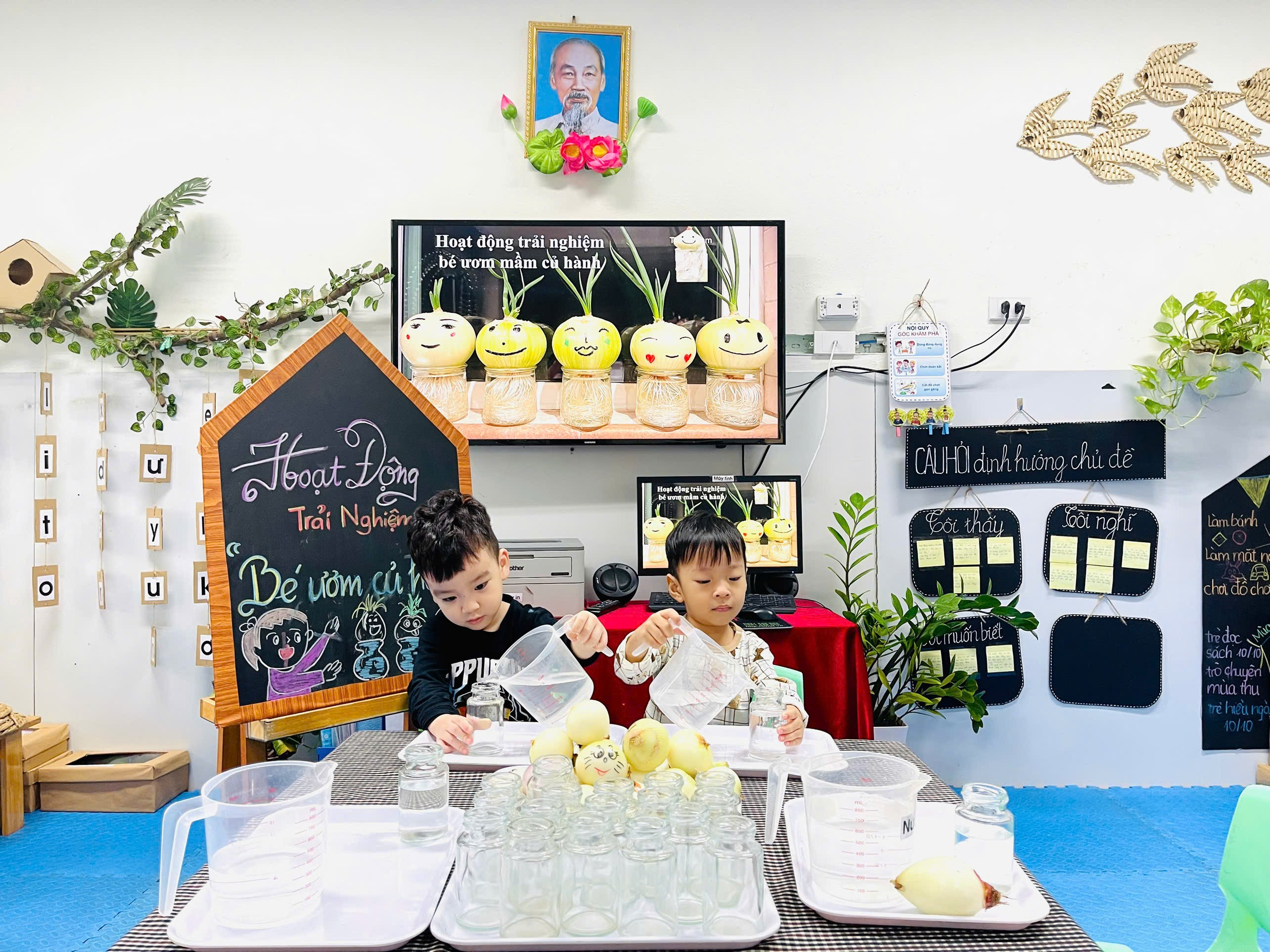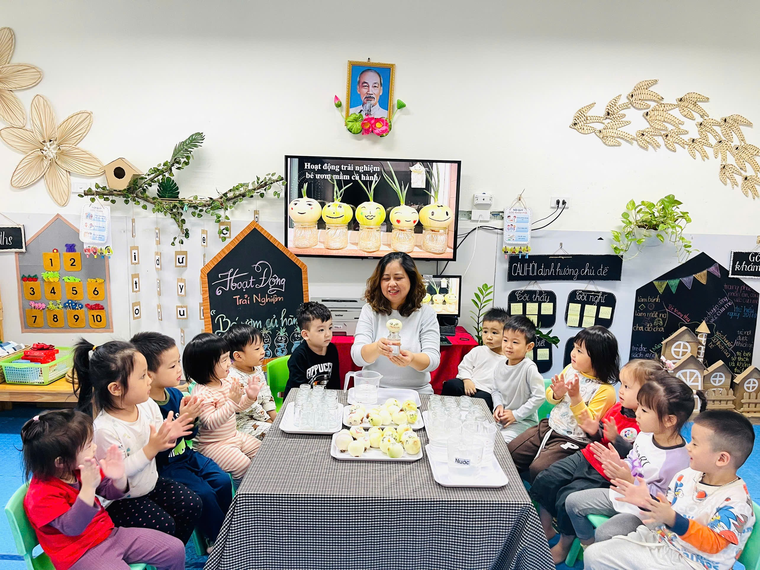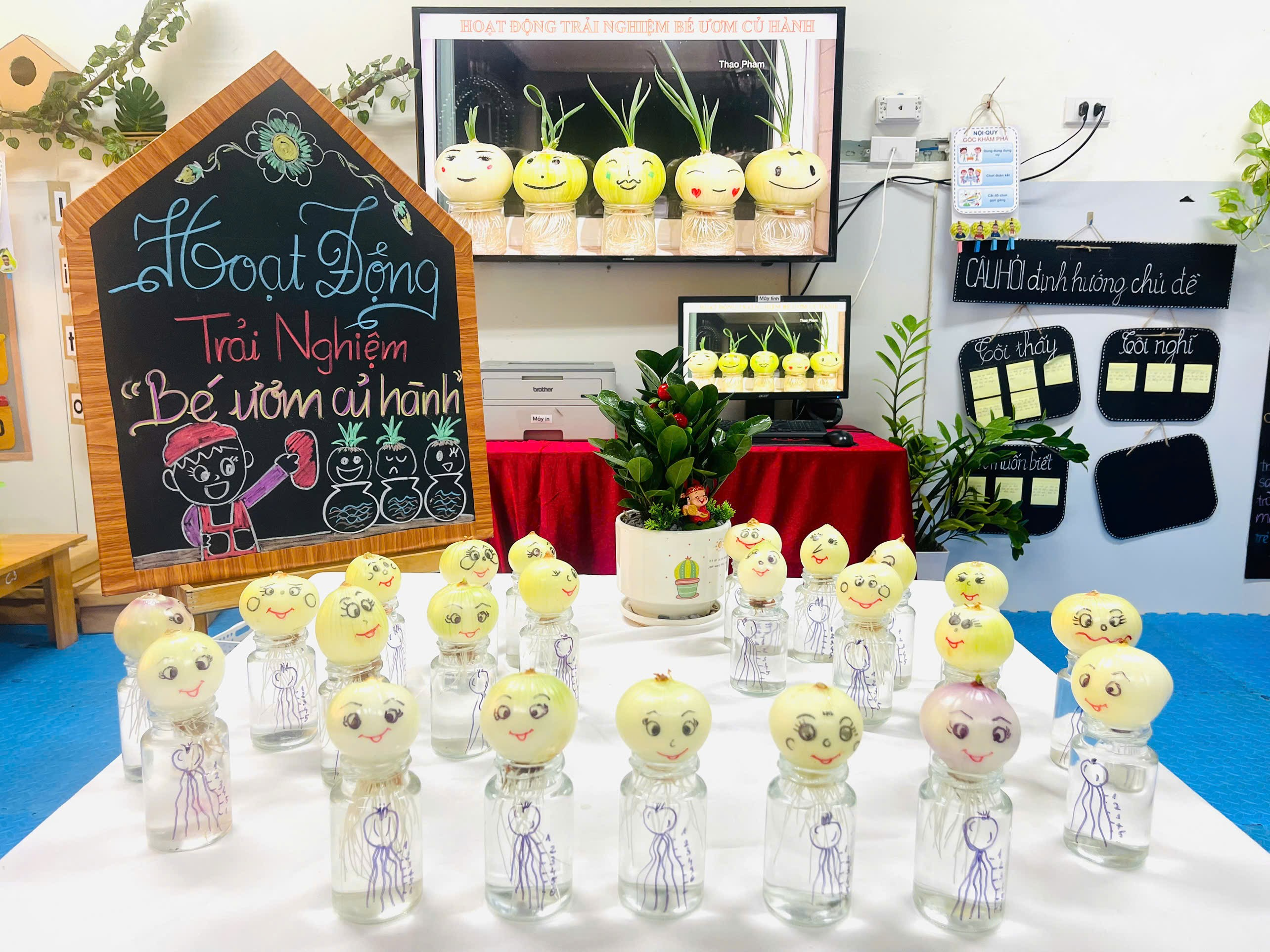 Hoạt động trải nghiệm: “Ươm mầm củ hành tây” không chỉ giúp không gian thêm sinh động, đẹp mắt mà các chất ô xy hóa từ hành tây sẽ lan tỏa những công dụng hiệu quả đến bất ngờ cụ thể như: