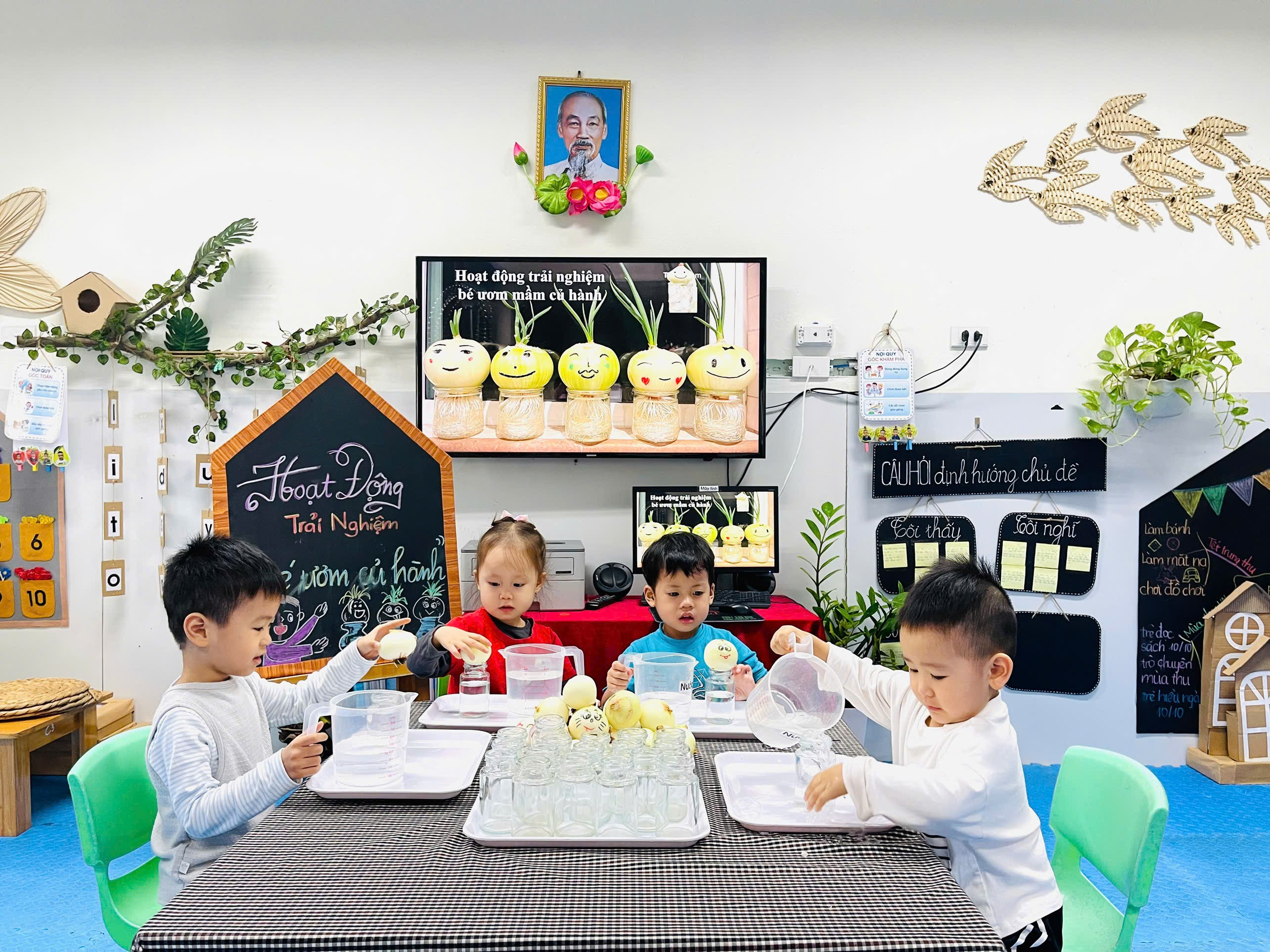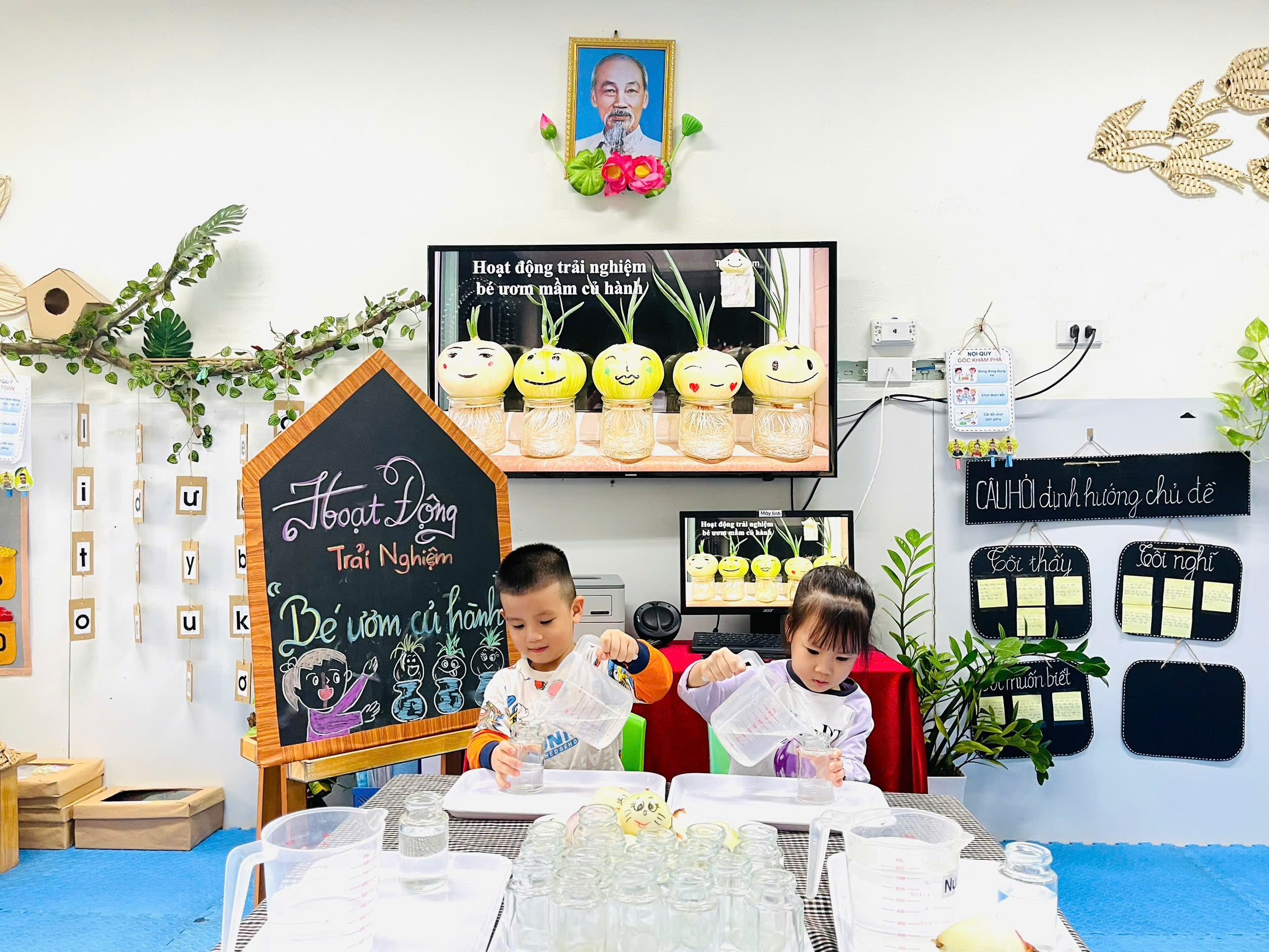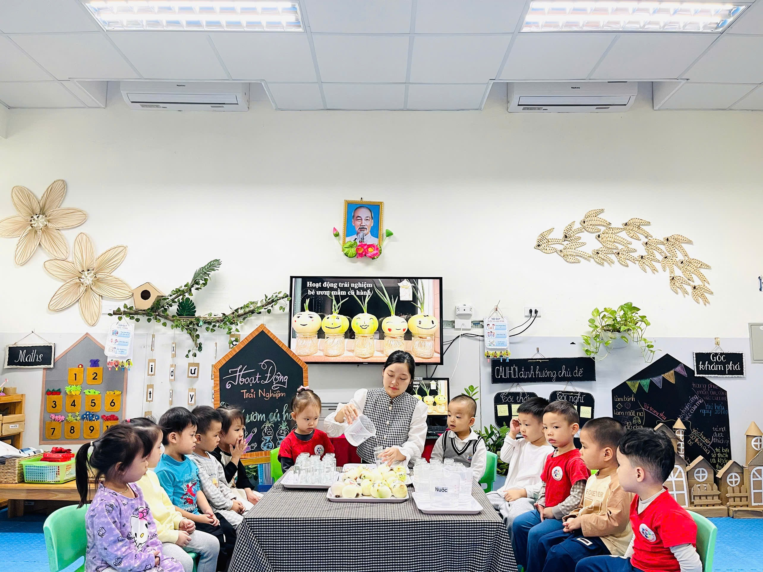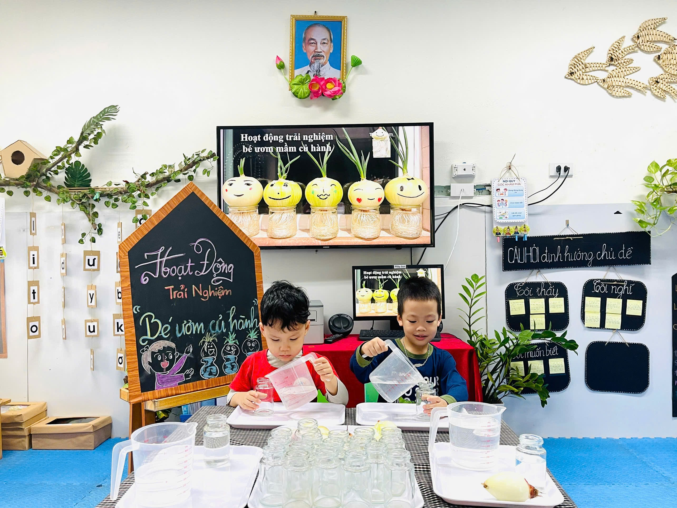 Hoạt động trải nghiệm: “Ươm mầm củ hành tây” không chỉ giúp không gian thêm sinh động, đẹp mắt mà các chất ô xy hóa từ hành tây sẽ lan tỏa những công dụng hiệu quả đến bất ngờ cụ thể như: