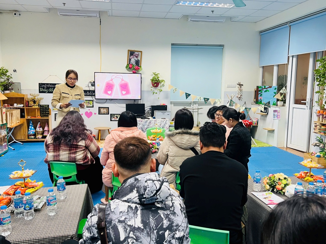 Trong buổi họp, giáo viên chủ nhiệm đã thông báo tới phụ huynh những kết quả nổi bật của trường, của từng trẻ trong học kỳ I năm học 2024-2025 và Kế hoạch trọng tâm của học kỳ II. Qua buổi họp, giáo viên đã gửi lời cảm ơn tới toàn thể phụ huynh đã luôn đồng hành giáo viên và các hoạt động của lớp trong suốt học kì I và mong muốn tiếp tục nhận được sự ủng hộ, đồng hành của các bậc phụ huynh trong học kỳ II.