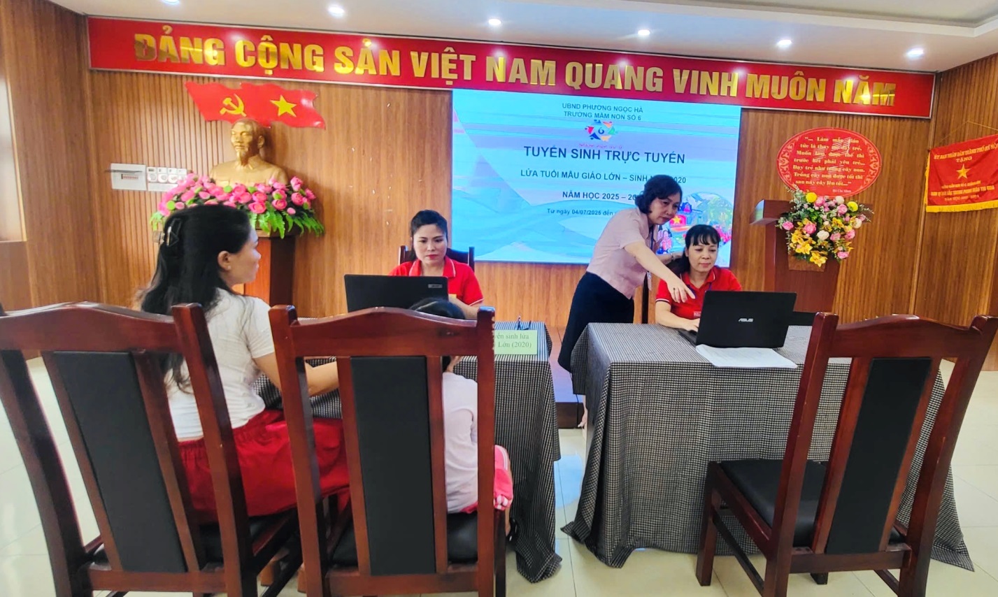 Trong ngày đầu tiên, nhiều phụ huynh đến tham gia tuyển sinh trực tuyến đã được các cô giáo trong Hội đồng tuyển sinh của nhà trường hướng dẫn chi tiết, nhanh chóng, thuận lợi. Sau buổi sáng ngày 04/7/2025, CMHS đã thực hiện đăng ký tuyển sinh trực tuyến vào trường thành công, đạt tỷ lệ 80% chỉ tiêu tuyển sinh.