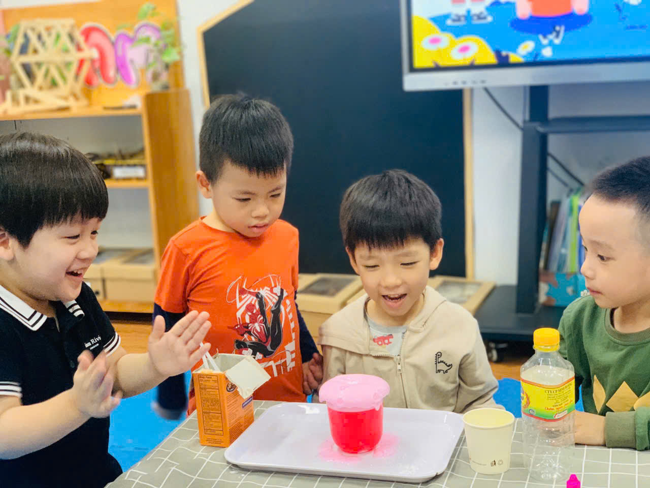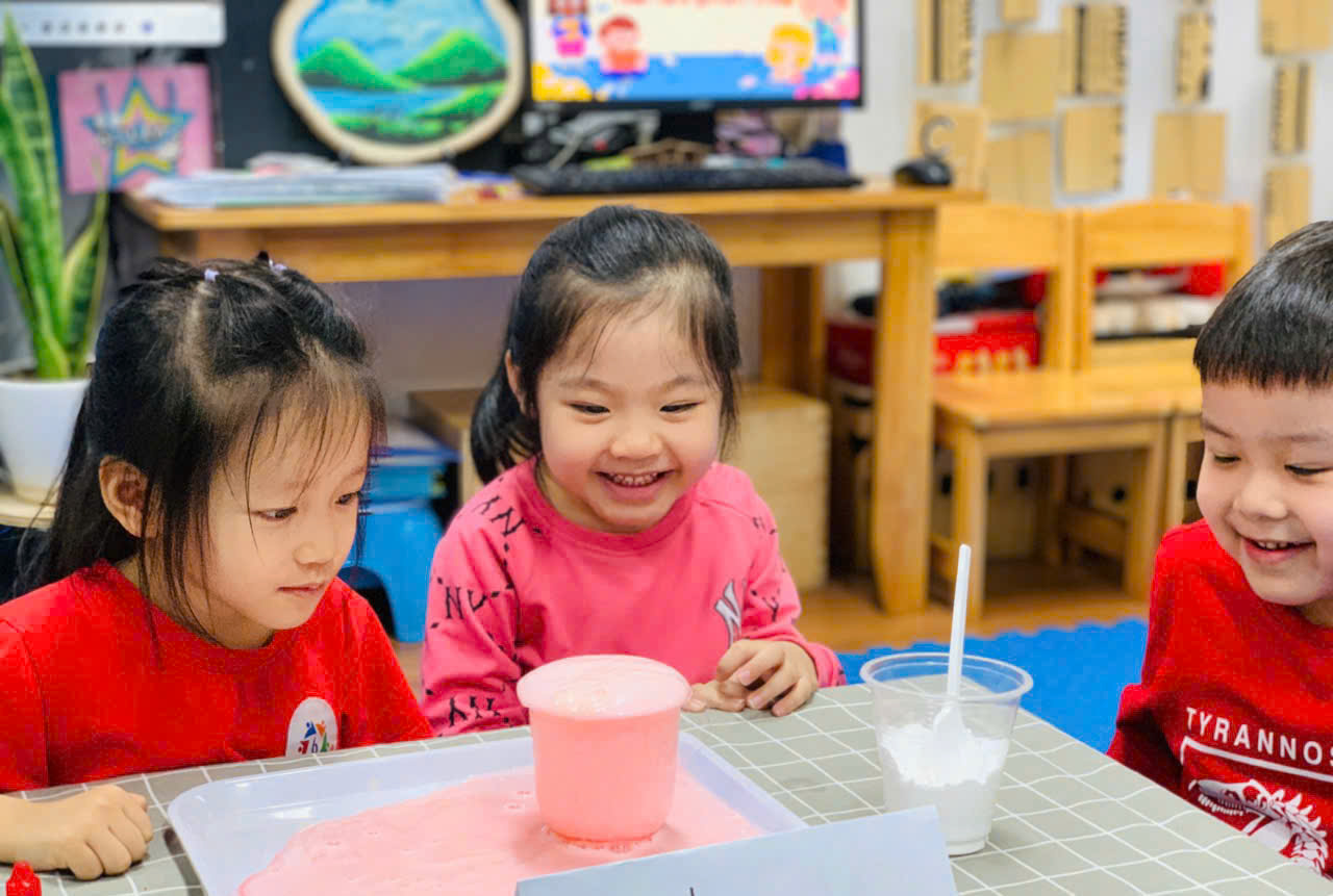 Vẻ mặt đầy hào hứng, ngạc nhiên của các bé khi thí nghiệm được hoàn thành.