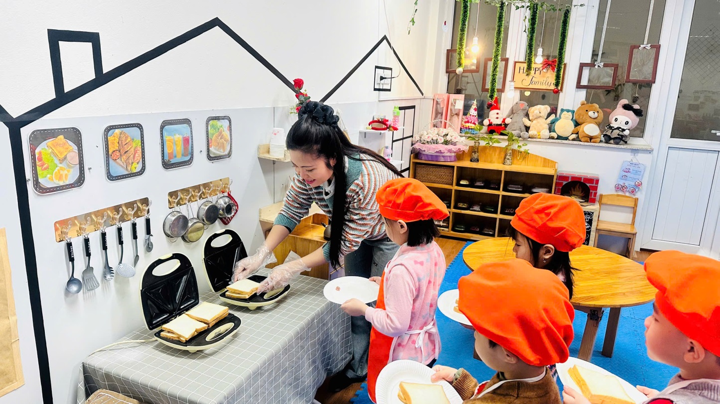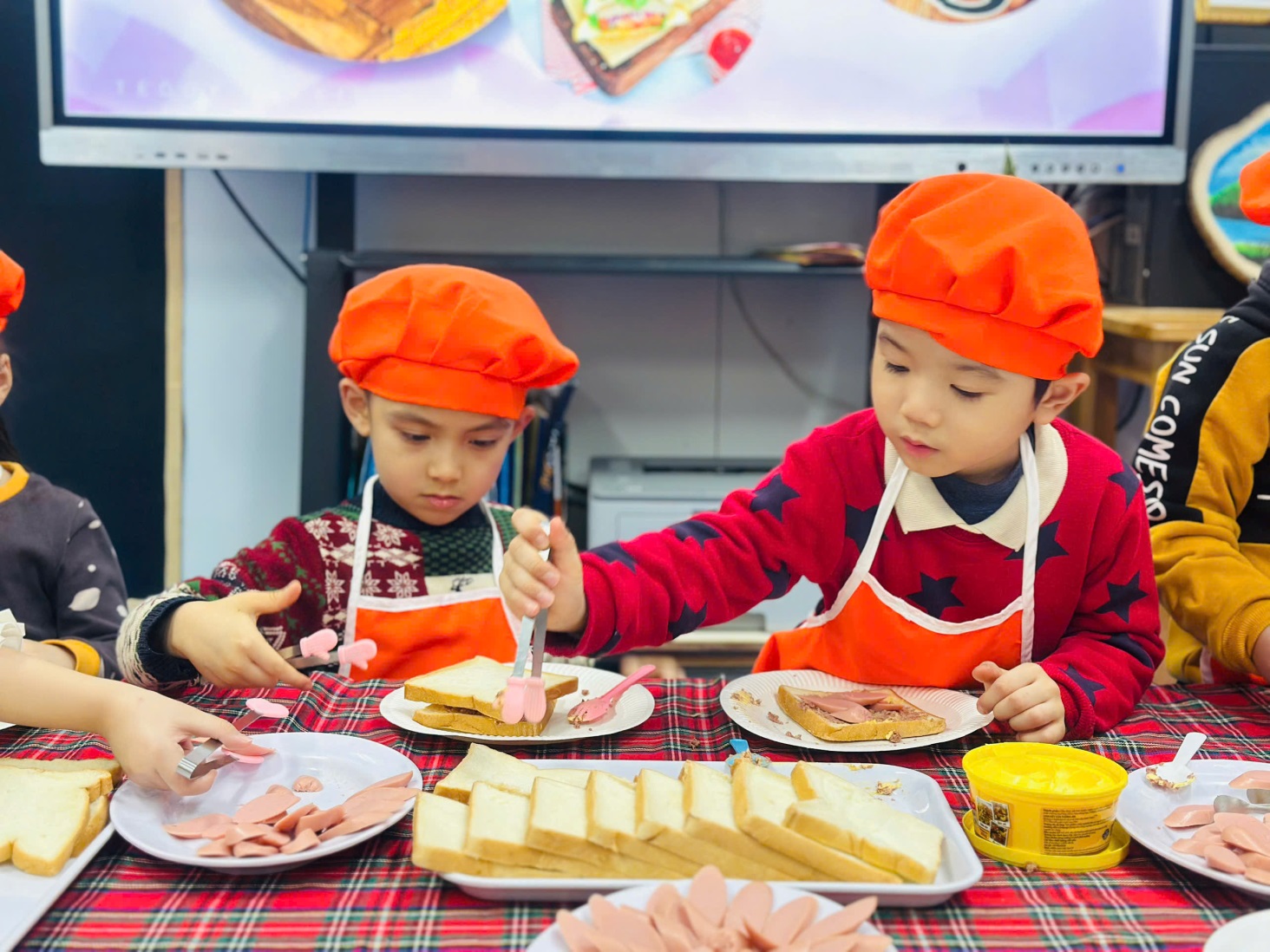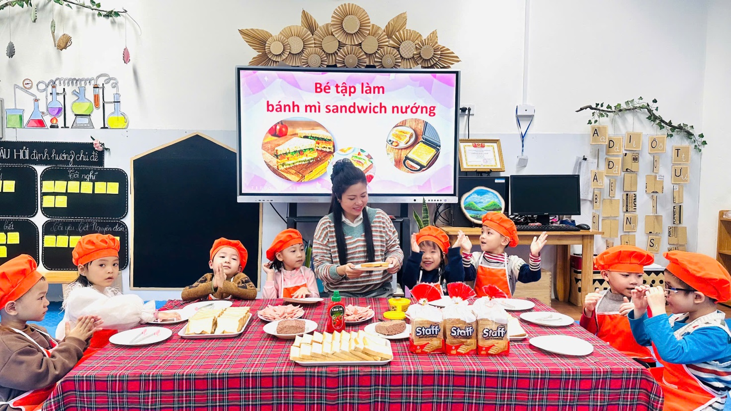 Theo đánh giá của các nhà dinh dưỡng học, bữa sáng là bữa ăn quan trọng nhất trong ngày. Nó sẽ giúp chúng ta bù đắp lại phần năng lượng đã tiêu hao sau một đêm cũng như nạp thêm đủ năng lượng để bắt đầu những hoạt động trong ngày mới. Chính vì vậy, việc chế biến bữa ăn sáng đầy đủ dinh dưỡng và năng lượng cần thiết là điều mà chúng ta phải thật sự lưu tâm. Hôm nay, các bé lớp mẫu giáo nhỡ B2 được các cô giáo hướng dẫn cách làm bánh mì sandwich nướng- một món ăn sáng ngon, đầy đủ dinh dưỡng cho bé và bố mẹ cùng thưởng thức.