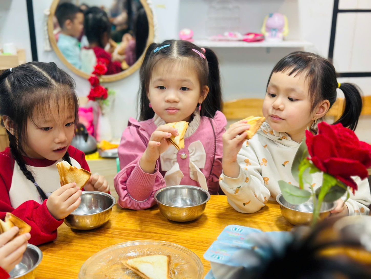 Bạn nào cũng thích thú và ăn hết những chiếc bánh mì sandwich do chính tay mình làm một cách ngon lành. Mong rằng sau buổi tập làm nội trợ ngày hôm nay, các bé sẽ có thêm kiến thức và kỹ năng giúp bố mẹ chuẩn bị bữa ăn sáng cho gia đình mình.
