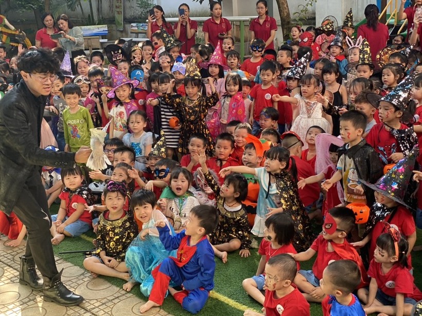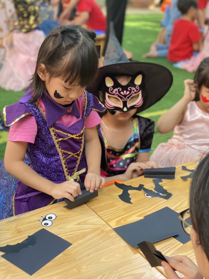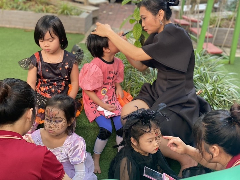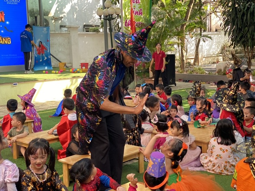 Các bé đã đắm mình trong không gian mang đậm phong cách lễ hội hóa trang vui tươi, khác lạ pha chút đáng sợ với phong cách trang trí ma quái. Các bé được vẽ mặt hóa trang mang phong cách Halloween, được giao lưu với giáo viên của Trung tâm Apollo, thưởng thức màn ảo thuật và các hoạt động vui chơi, làm mặt nạ, ghép tranh...