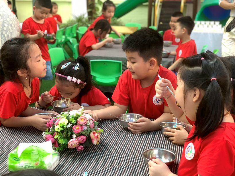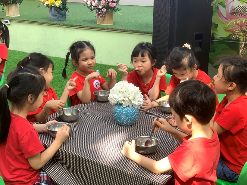 Các bé vừa ăn vừa tâm sự rất cởi mở với nhau.