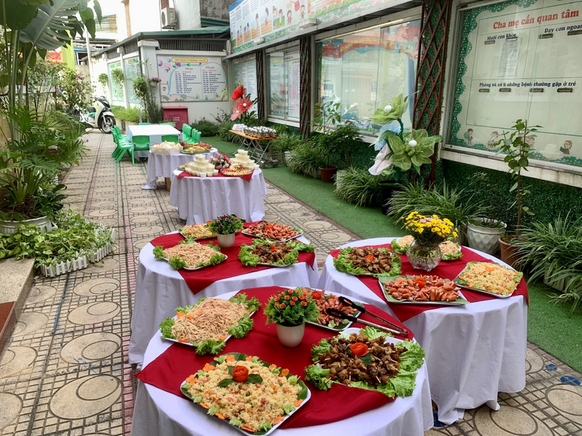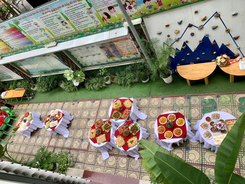 Các món ăn được các cô và các mẹ bày biện rất đẹp mắt.