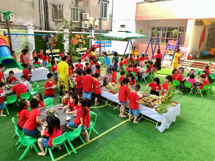 Tiệc buffet cho các bé tại trường mầm non là một trong những hoạt động đầy ý nghĩa và giá trị, được phụ huynh cũng như các bé nhiệt tình ủng hộ. Tham gia vào bữa tiệc buffet, trẻ được tự phục vụ các bữa ăn của mình và tùy thích lựa chọn món ăn, khiến bữa ăn hấp dẫn hơn.